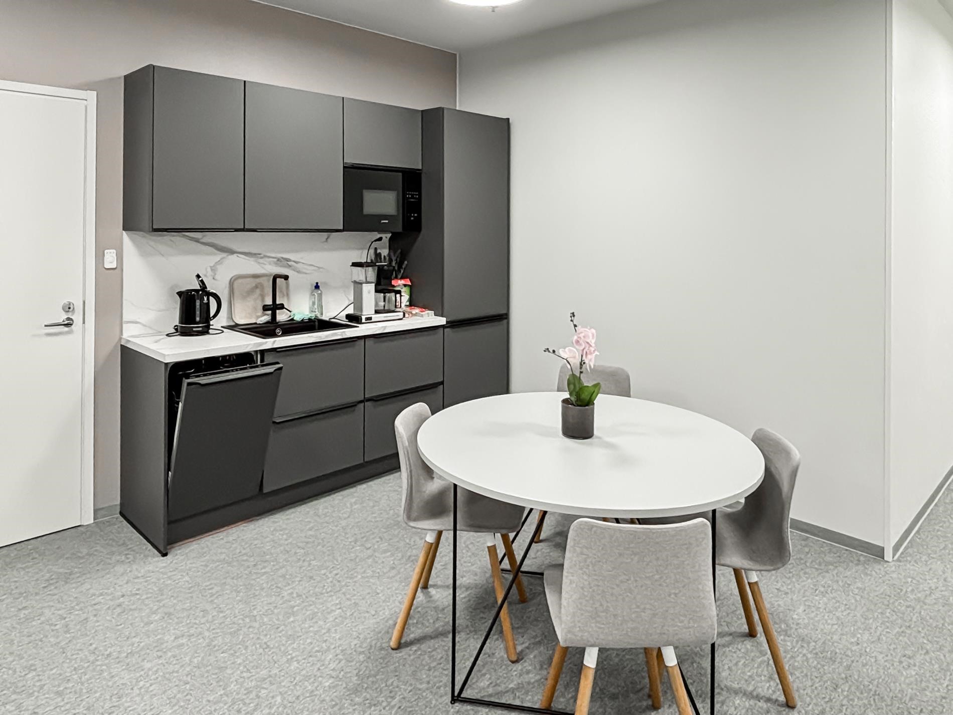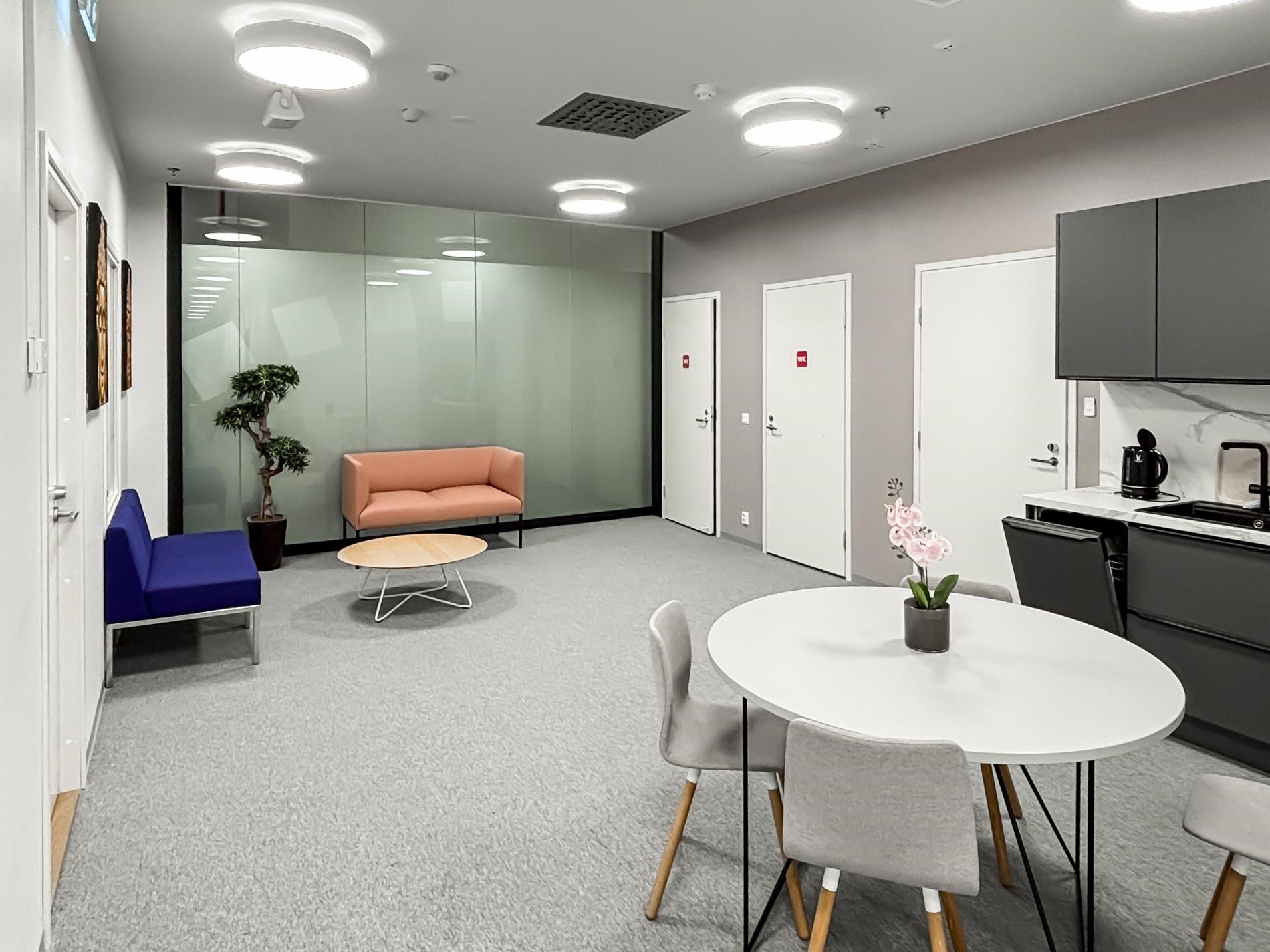 Tämä tila sijaitsee toukokuussa valmistuneesta toimistohotellista, mistä voi varata toimistohuoneen omaan käyttöön. Käynti tilaan on koodilukolla, ja tilat on äänieristetty ja laadukkaasti varusteltu. Yhteinen keittiö mahdollistaa lounastamisen työskentelyn yhteydessä, ja tilasta löytyy kaikki tarpeellinen! Yhteiskäyttötilojen siivous sisältyy vuokraan.