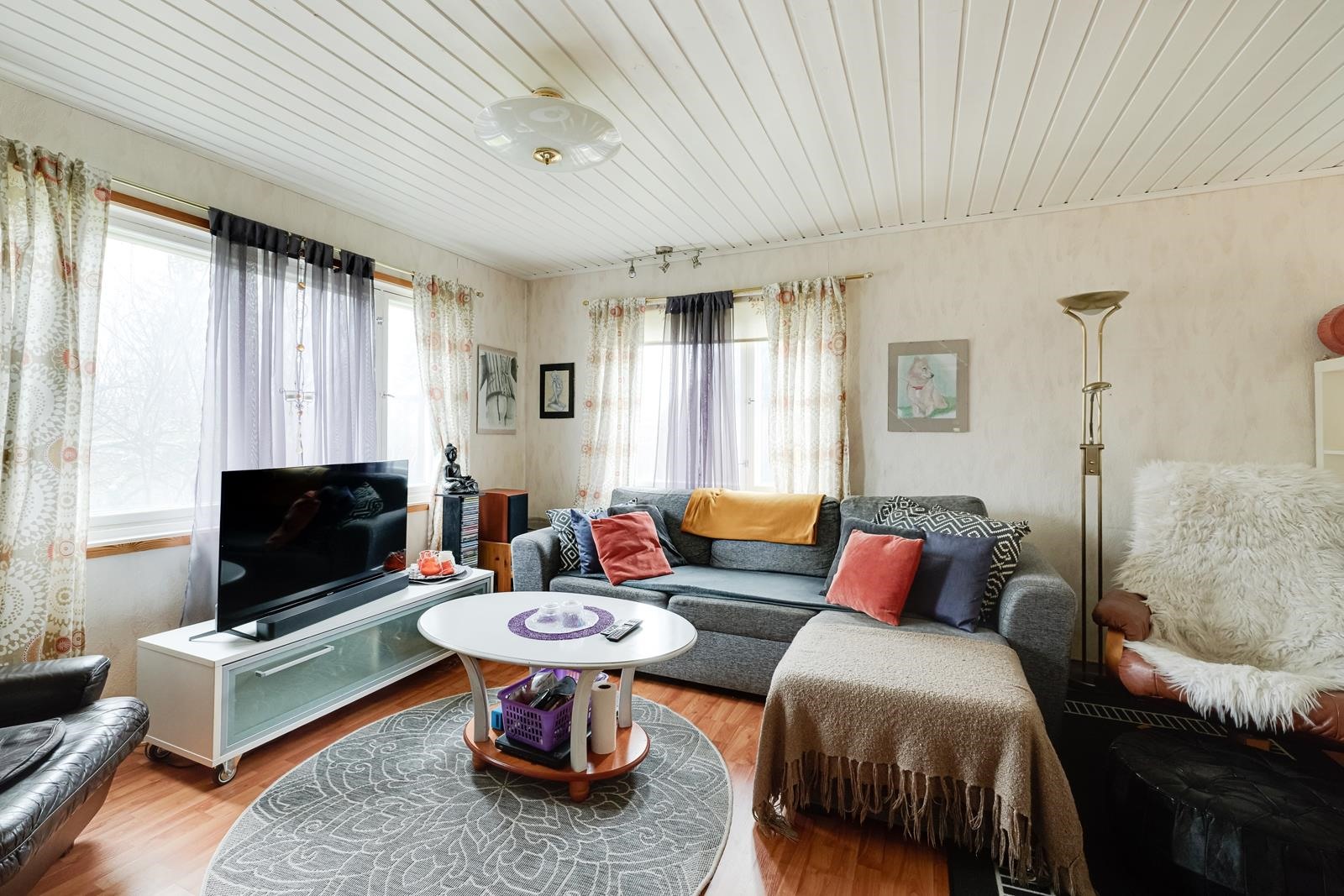 - Keittiö: maalia, laminaattia. Olohuone: tapettia/maalia, laminaattia. Makuuhuone 1: tapettia/maalia, muovimatot. Makuuhuone 2: tapettia/maalia, muovimatot. Sauna: paneelia, laattaa. Kylpyhuone: kaakelia, laattaa. Eteinen: maalia, laminaattia. Wc: kaakelia, laattaa.