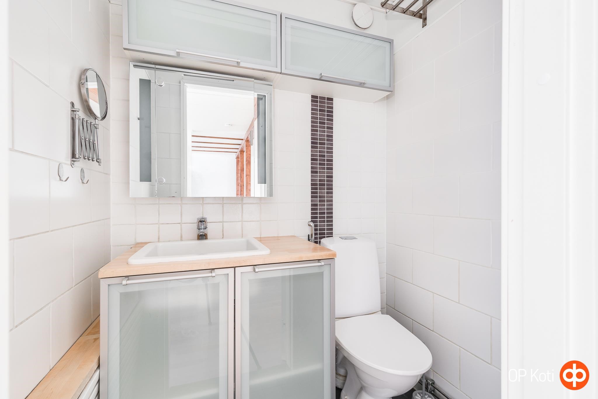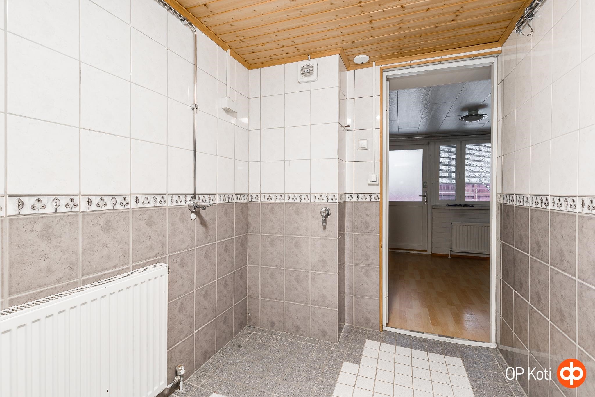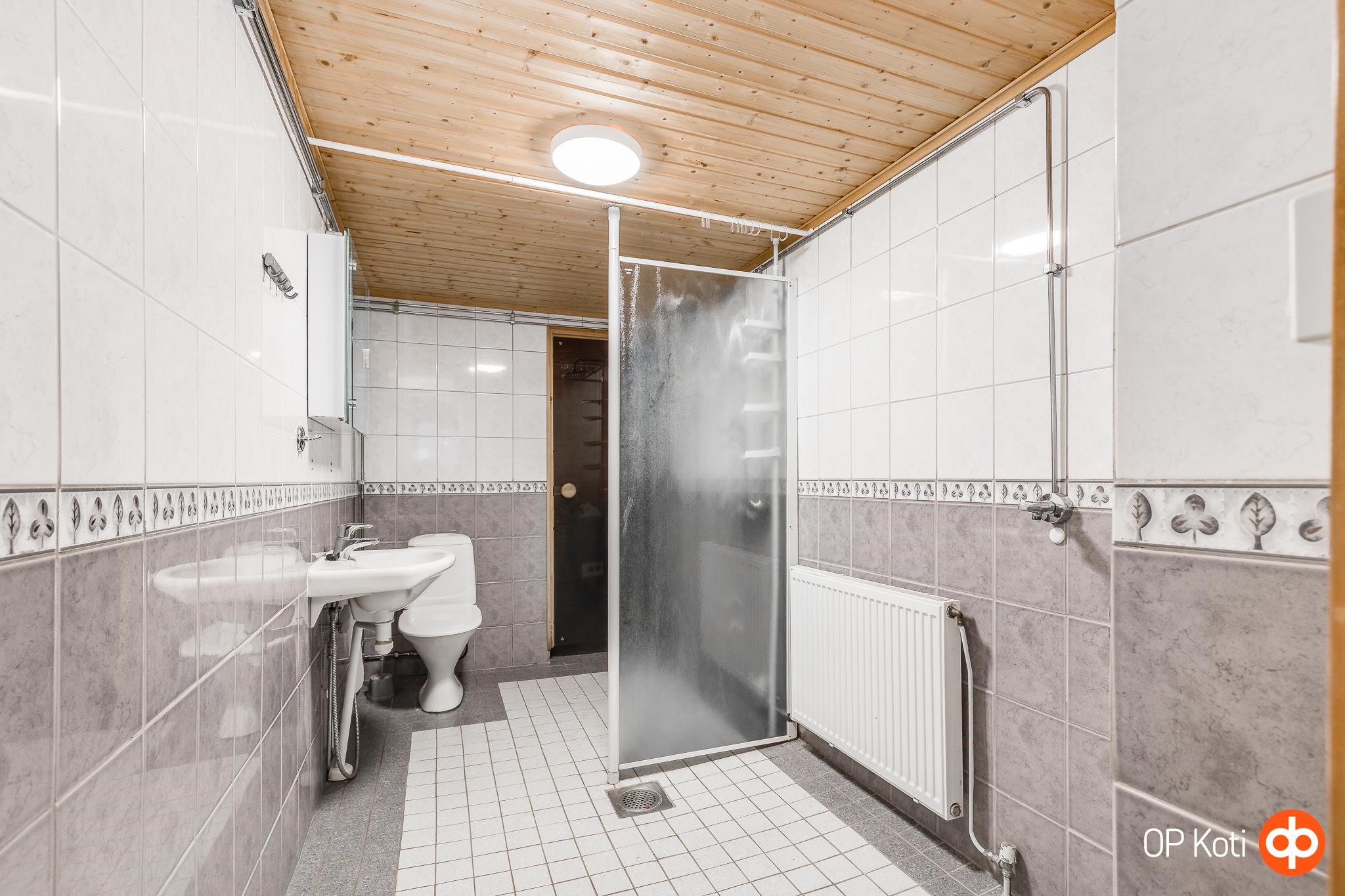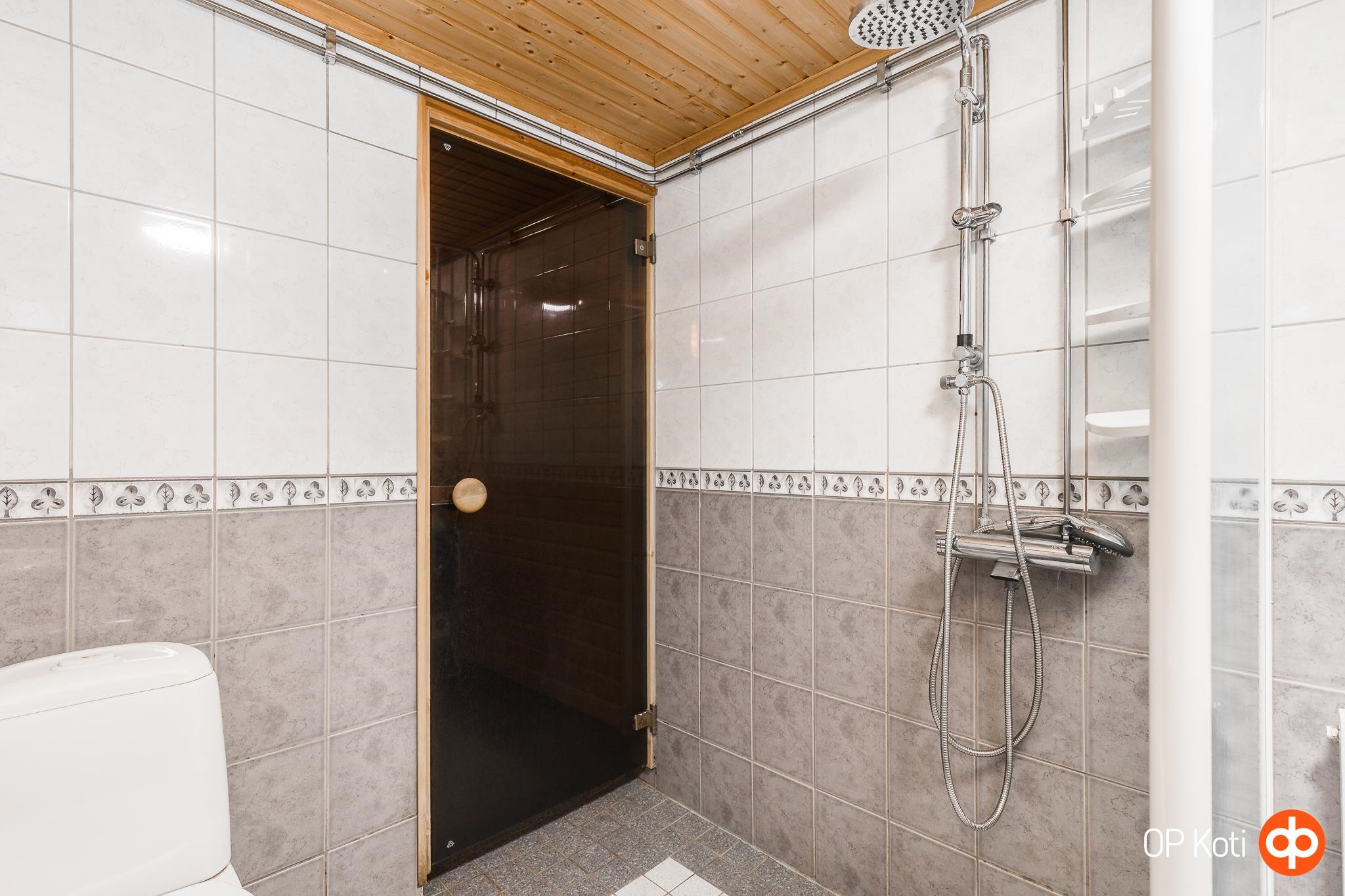 - Sauna, sähkökiuas, kylpyhuone, erillinen wc, suihku, suihkuseinä, peilit, peilikaappi, kaapit, allaskaappi, pesukoneliitäntä, lattialämmitys kylpyhuoneessa, kiinteät valaisimet.
