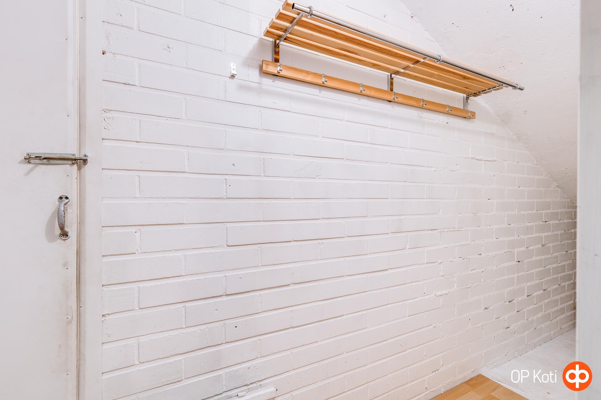 Asunnon tilat jakautuvat neljään huoneeseen, keittiöön, parvekkeeseen ja terassiin. Alakerrassa on pesuhuone, sauna ja takkahuone. Yläkerrasta löytyvät keittiö, olohuone ja kaksi makuuhuonetta. Säilytystilaa löytyy runsaasti, ja lämmin ulkovarasto tarjoaa lisätilaa esim. kausitavaroille Asunnon yhteydessä on myös autotalli, johon käynti on myös asunnon sisältä.