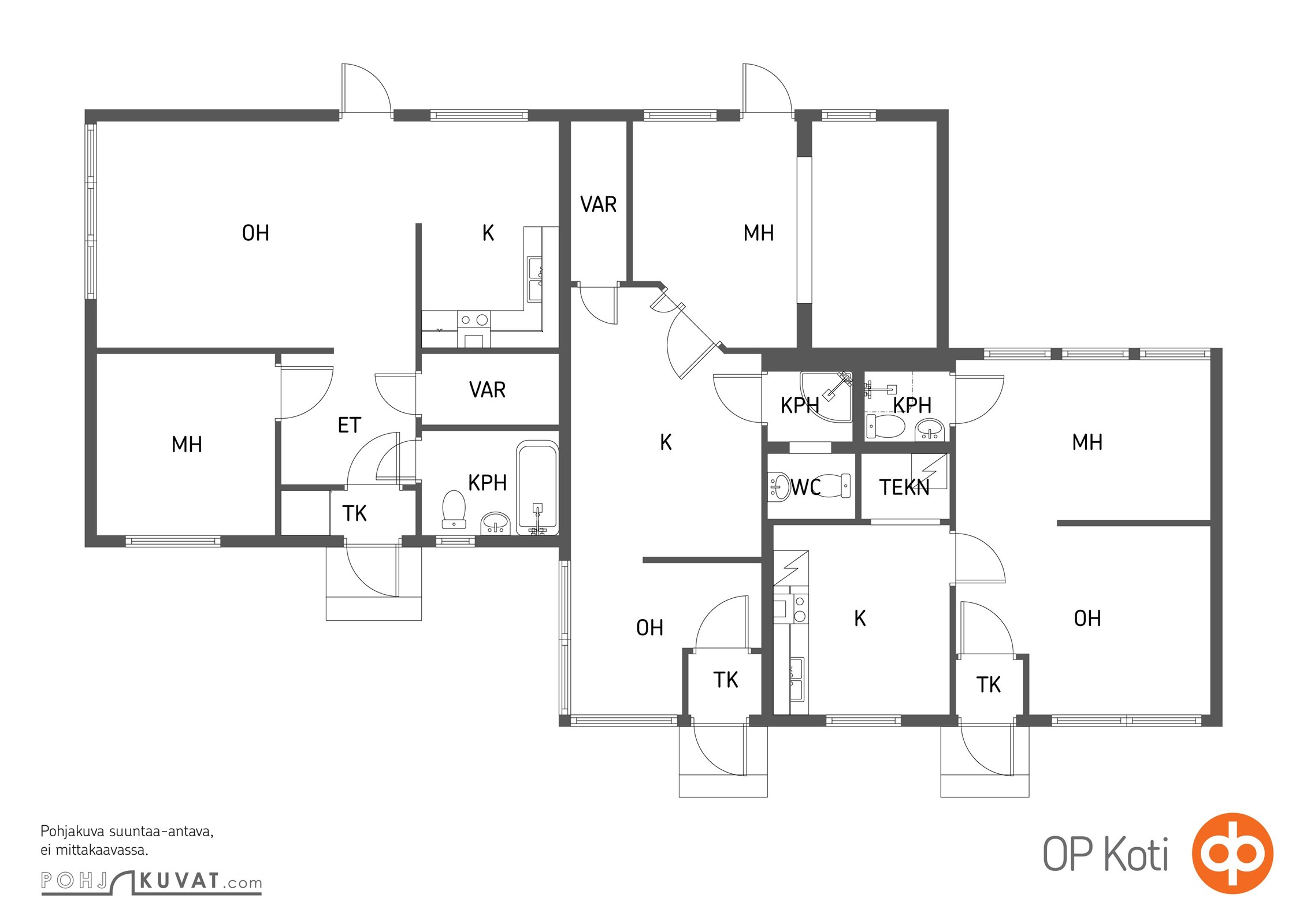 - 9h, 3*k, 3*kph, tekninen tila, 3*eteisiä