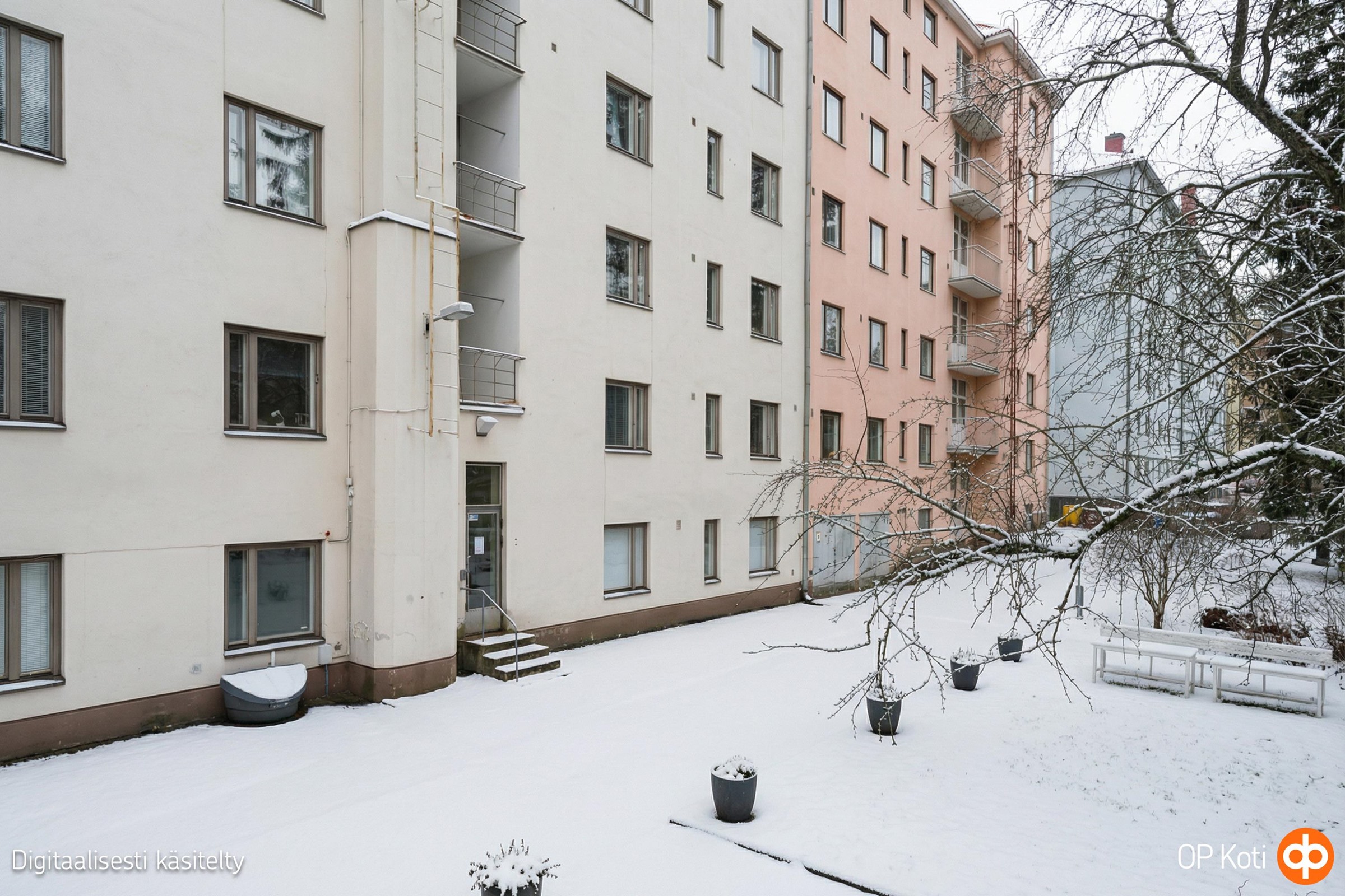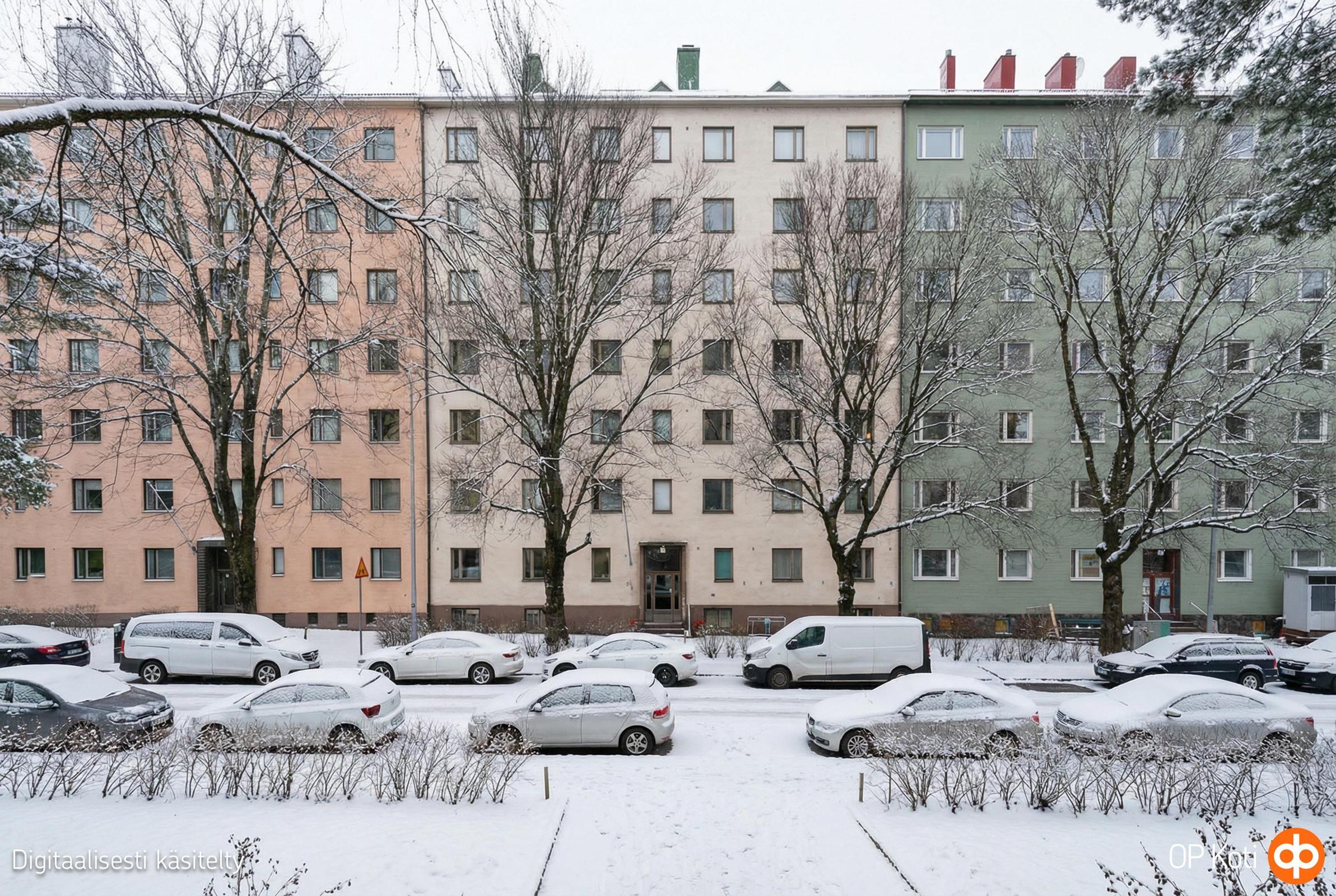 Kuusitie - klassista 1940-luvun arkkitehtuuria Meilahden arvostetulla alueella. Tämä läpitalon, reilun kokoinen kaksio, 62 m², huokuu valmistusvuotensa 1942 klassista charmia ja modernia tyylikkyyttä. Tilava eteinen toivottaa sinut lämpimästi tervetulleeksi. Avara olohuone ja sen jatkeena oleva keittiö muodostavat kodin sydämen, jossa on mukava viettää aikaa. Kylpyhuone on remontoitu vuonna 2021, ja huoneiston pohjaratkaisu on käytännöllinen. Makuuhuoneesta löytyy väliseinällä erotettu alkovi parisängylle, mikä tekee tilasta monikäyttöisen - se toimii erinomaisesti myös työhuoneena tai toisena makuuhuoneena. Huoneiston näkymät ovat olohuoneesta metsäiset ja makuuhuoneen puolelta avarat, rauhalliselle Kuusitielle. 2/8 krs. Hissi.