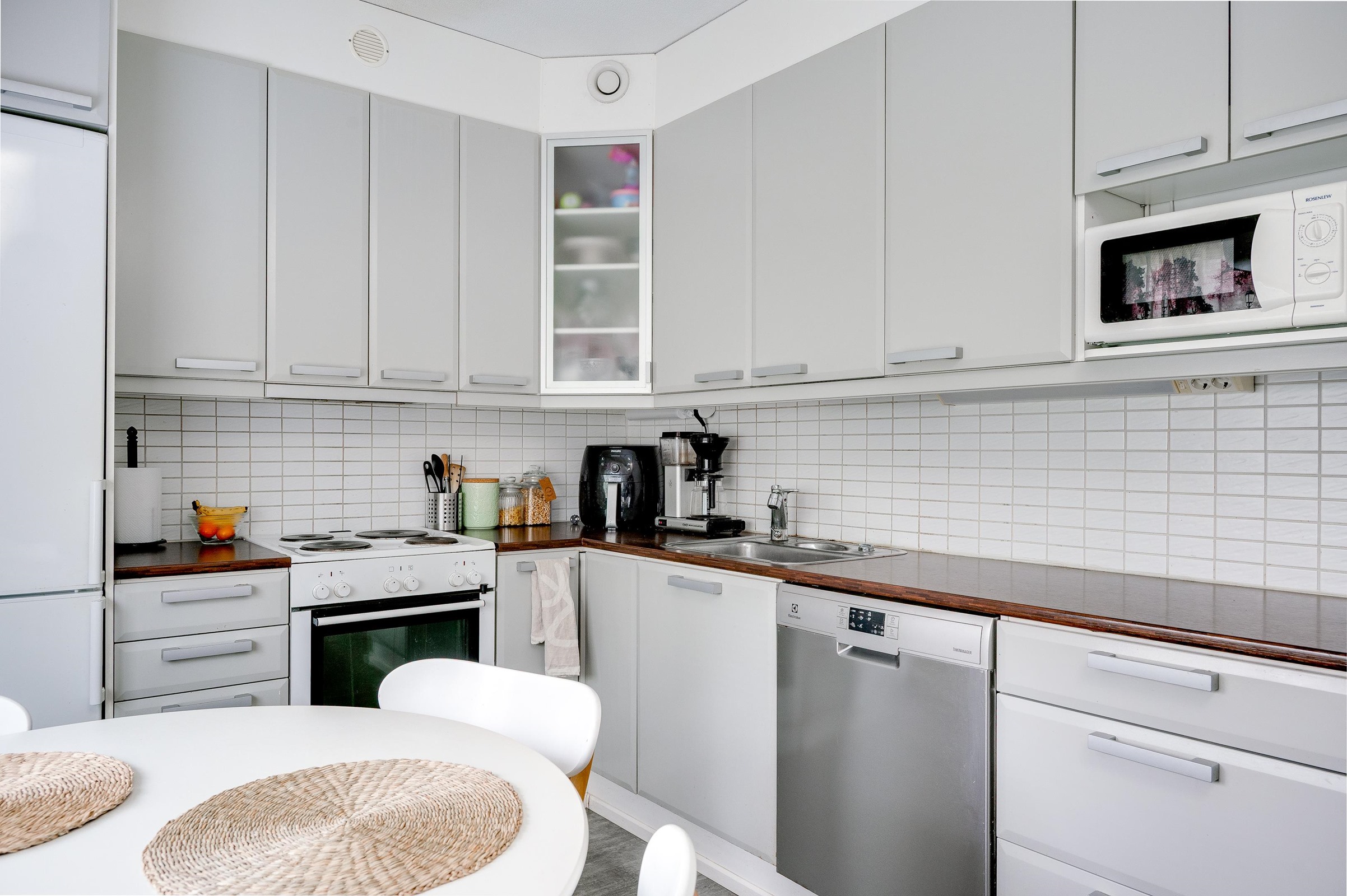 - Jääkaappipakastin, lattialiesi, liesituuletin aktiivihiilisuodatin, mikroaaltouuni, astianpesukone, kaapistot, kiinteät valaisimet. Remontoitu kokonaisuudessaan 2008 Astianpesukone uusittu 2020