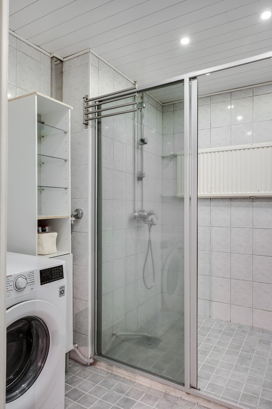 - Kylpyhuone, erillinen wc, suihku, suihkuseinä, kaapit, allaskaappi, pesukoneliitäntä, kiinteät valaisimet. Kylpyhuone remontoitu 2008 jolloin myös wc- kaakeloitu.
