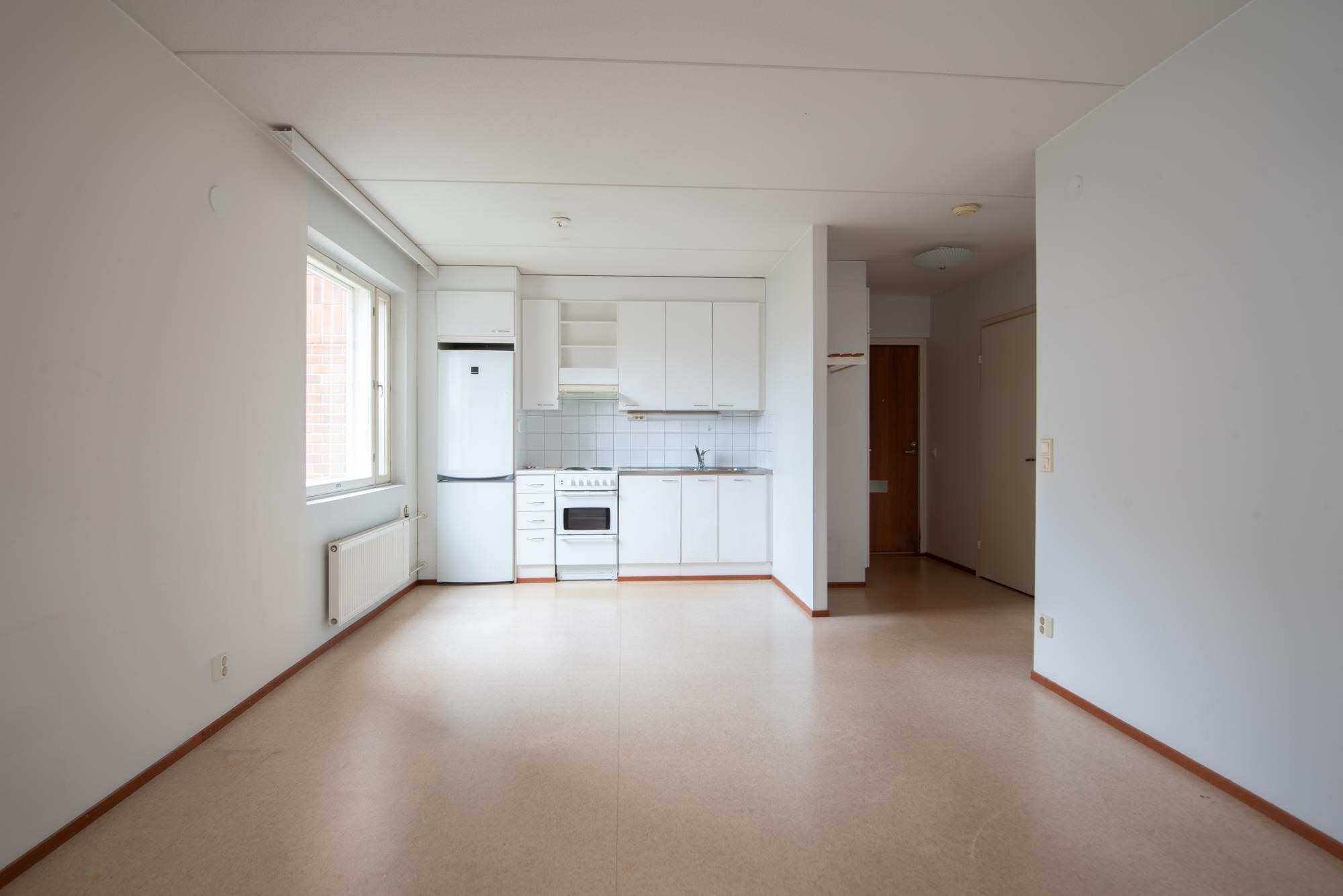 Asunnossa erinomainen pohjaratkaisu, olohuone ja keittiö yhteistä avointa tilaa. Keittiössä reilusti kaappitilaa ja asukkaan on mahdollista hankkia asuntoon oma astianpesukone. Makuuhuoneeseen mahtuu iso parisänky ja kaappitilaa on koko seinän mitalta. Kylpyhuoneesta löytyy tilaa ja liitäntä pyykinpesukoneelle.