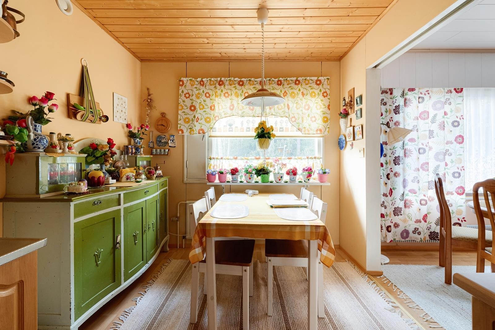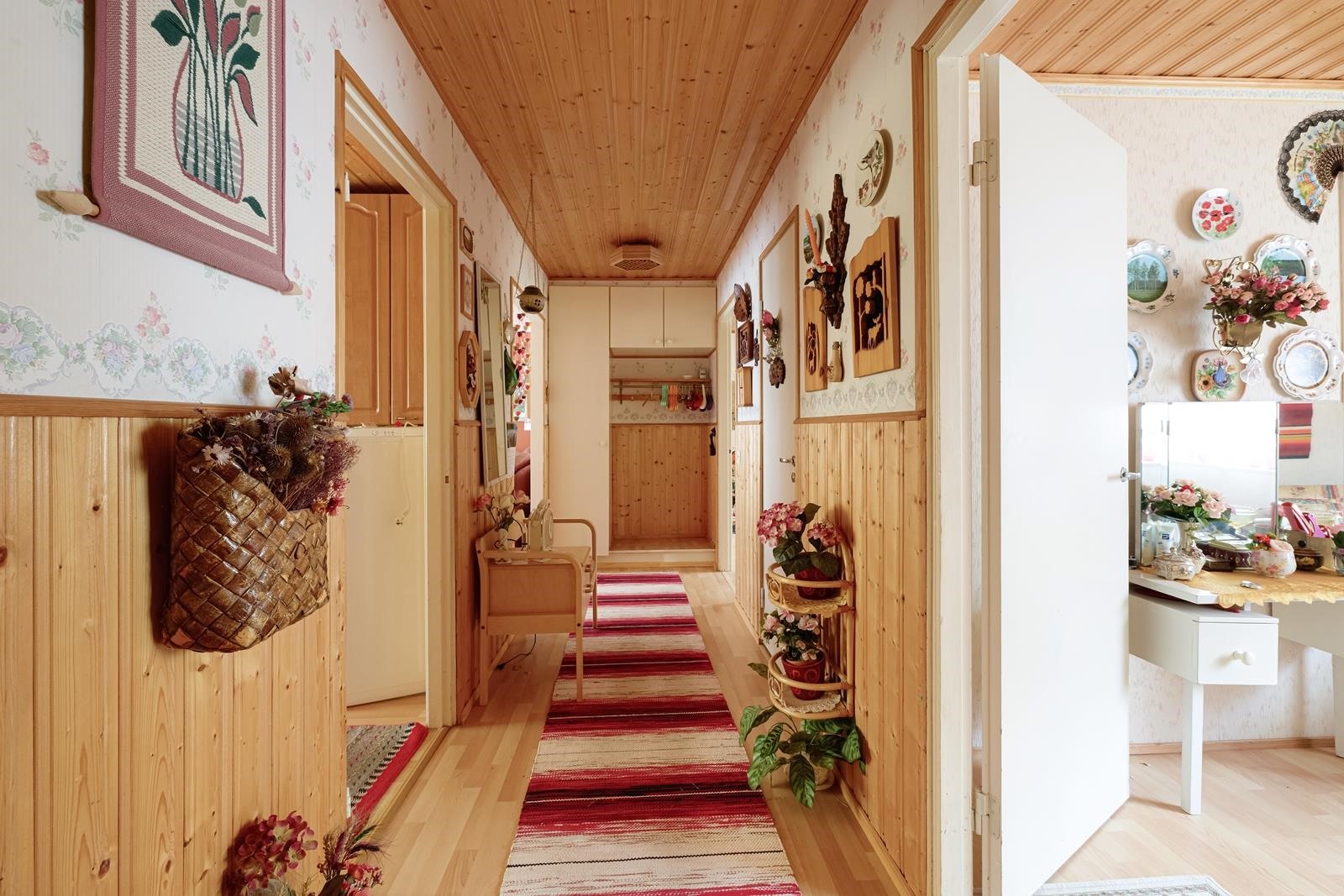 - Keittiö: maalia, laminaattia. Olohuone: tapettia/maalia, parkettia. Makuuhuone 1: tapettia/maalia, laminaattia. Makuuhuone 2: tapettia/maalia, laminaattia. Sauna: paneelia, laattaa. Kylpyhuone: kaakelia, laattaa. Eteinen: maalia, laminaattia.