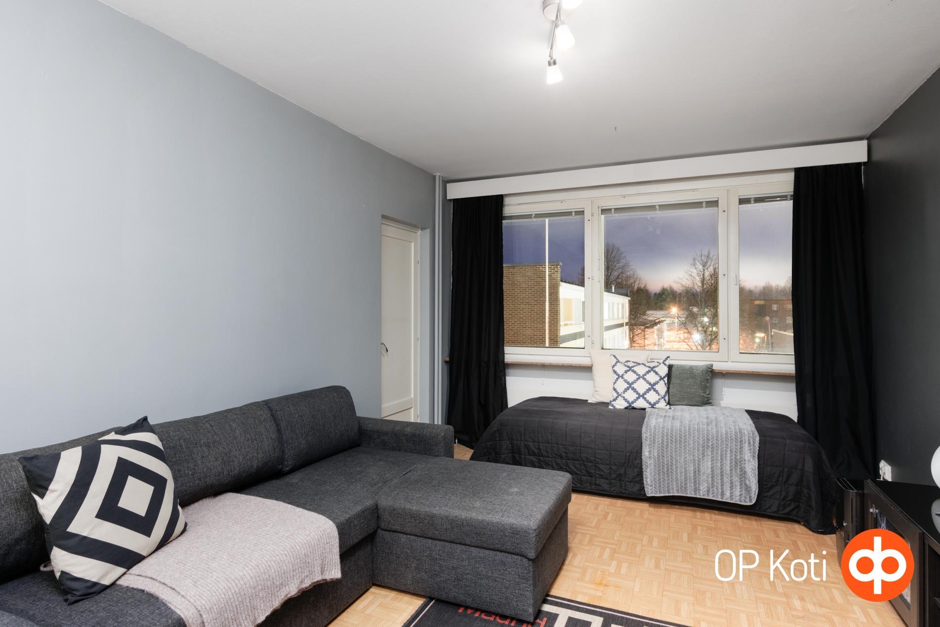 Tervetuloa tutustumaan tähän kaksioon, jossa on reilunkokoiset huoneet ja erinomainen pohjaratkaisu. Asunnossa on lasitettu parveke, josta on rauhallinen näkymä pihalle; mukava paikka aamukahville.