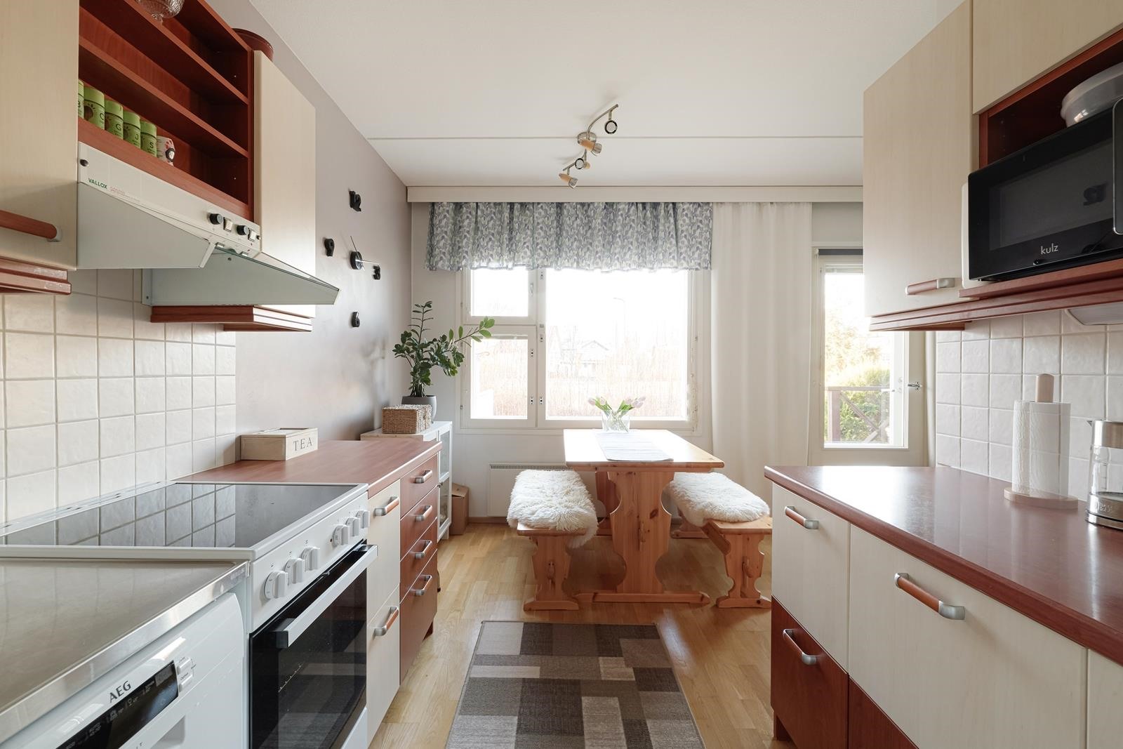 - Jääkaappipakastin v. 2024, keraaminen liesi v. 2022, liesituuletin, astianpesukone v.2017, kaapistot.