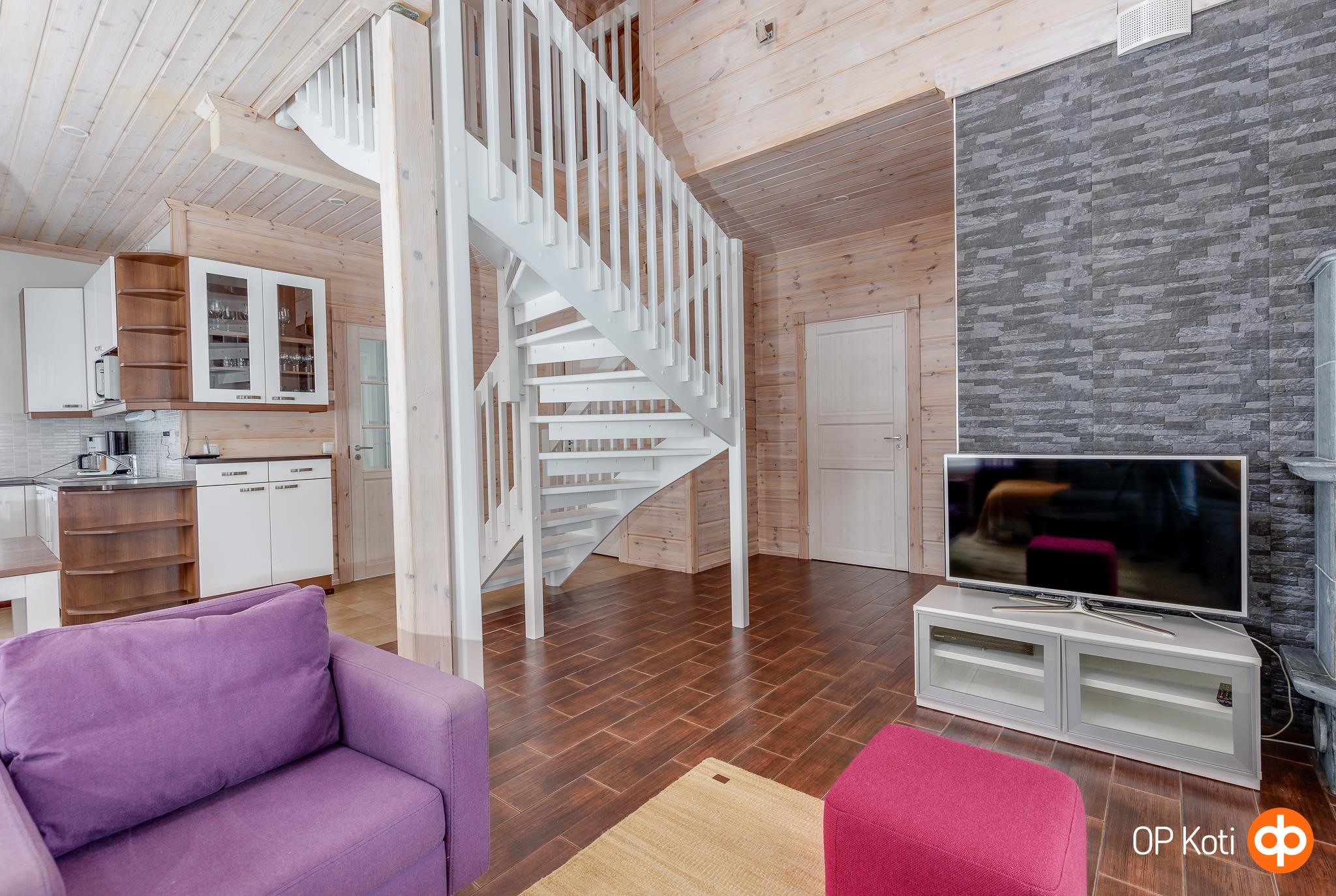 Tervetuloa Vuokatin Saniaisentielle, jossa tämä upea paritalohuoneisto tarjoaa korkeatasoisen ja modernin ympäristön, jossa yhdistyvät loistava sijainti, huolella valitut materiaalit ja kaikki tarvittavat mukavuudet. Tässä huoneistossa on panostettu laatuun ja käytännöllisyyteen, ja se on täydellinen valinta niin rentoutumiseen kuin aktiivisiin lomapäiviin. Avara pohjaratkaisu tekee oleskelusta vaivatonta. Tilava eteinen johtaa avaraan olohuoneeseen ja tupakeittiöön, joissa on tilaa niin yhteisiin hetkiin kuin ruuanlaittoonkin. Nunnalahden leivinuuni-takka luo lämpöä ja tunnelmaa. Makuuhuoneita on neljä, yksi alakerrassa ja kolme yläkerrassa. Huoneistossa on kolme erillistä wc:tä, jotka antavat asumiseen lisämukavuutta. Huoneiston kaikki tilat on kalustettu tyylikkäästi ja laadukkailla materiaaleilla, ja täällä yhdistyvät moderni teknologia ja kodin lämpö. Saunatilat tarjoavat mahdollisuuden rentoutua pitkän päivän jälkeen, ja katetulla terassilla voit nauttia rauhallisista hetkistä saunan lämmön jälkeen. Avaimeton Abloyn L3 kulunvalvontajärjestelmä tuo lisää turvallisuutta ja helppoutta, ja nopea huoneistokohtainen Wi-Fi-verkko takaa toimivat yhteydet lomallakin. Huoneistokohtainen ilmastointi, jossa on kätevä LED-näyttö, huolehtii mukavasta sisäilmasta vuodenajasta riippumatta. Maalämpöjärjestelmä takaa energiatehokkuuden ja miellyttävän lämmön ympärivuotisesti. Huoneiston edessä on neljä autopaikkaa, joten tavaroiden kuljettaminen sujuu helposti ja vaivattomasti. Lisäksi huoneistolle kuuluu huoneistokohtainen lukollinen varasto, jossa voit säilyttää varusteet ja välineet turvallisesti.