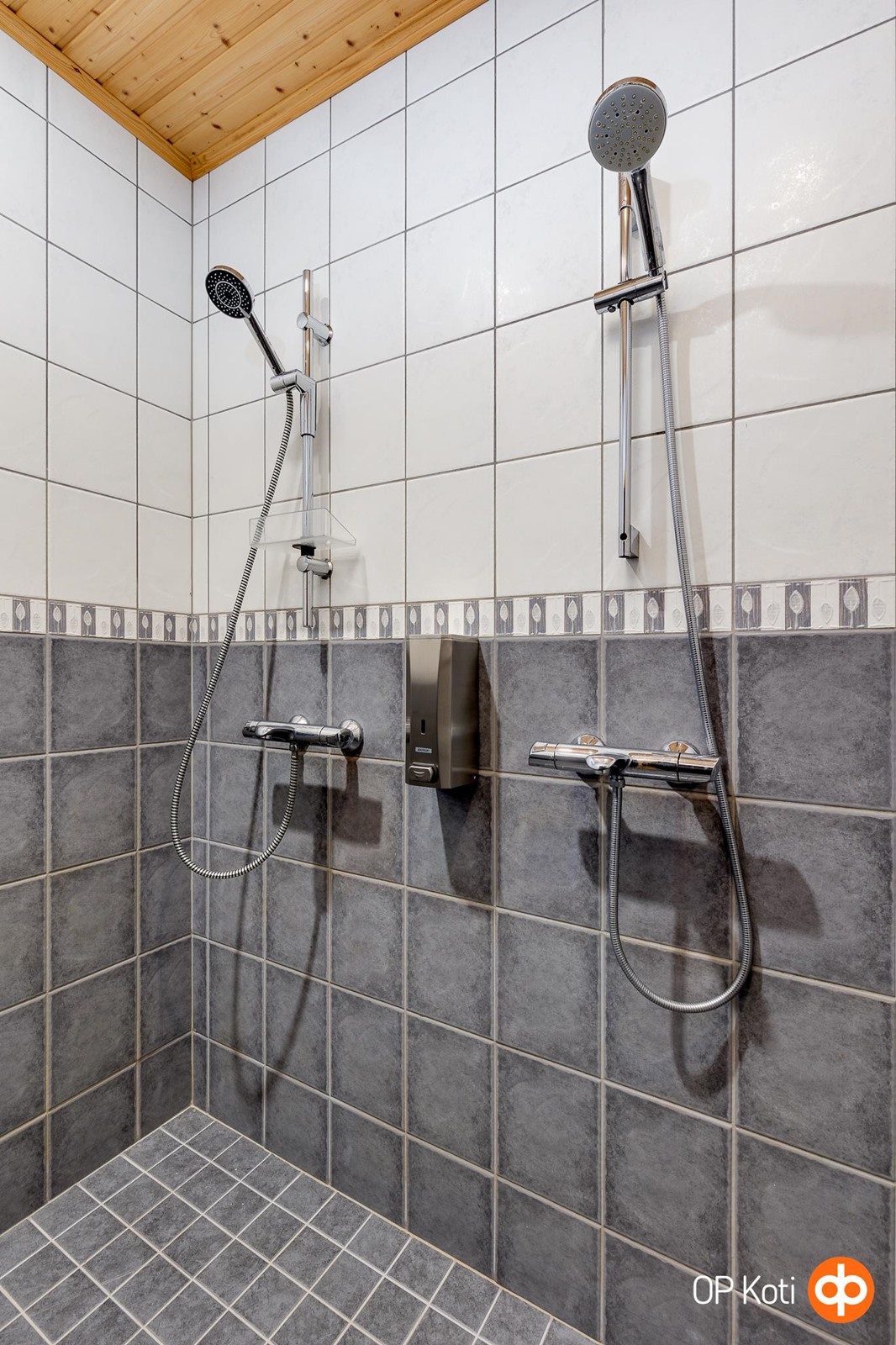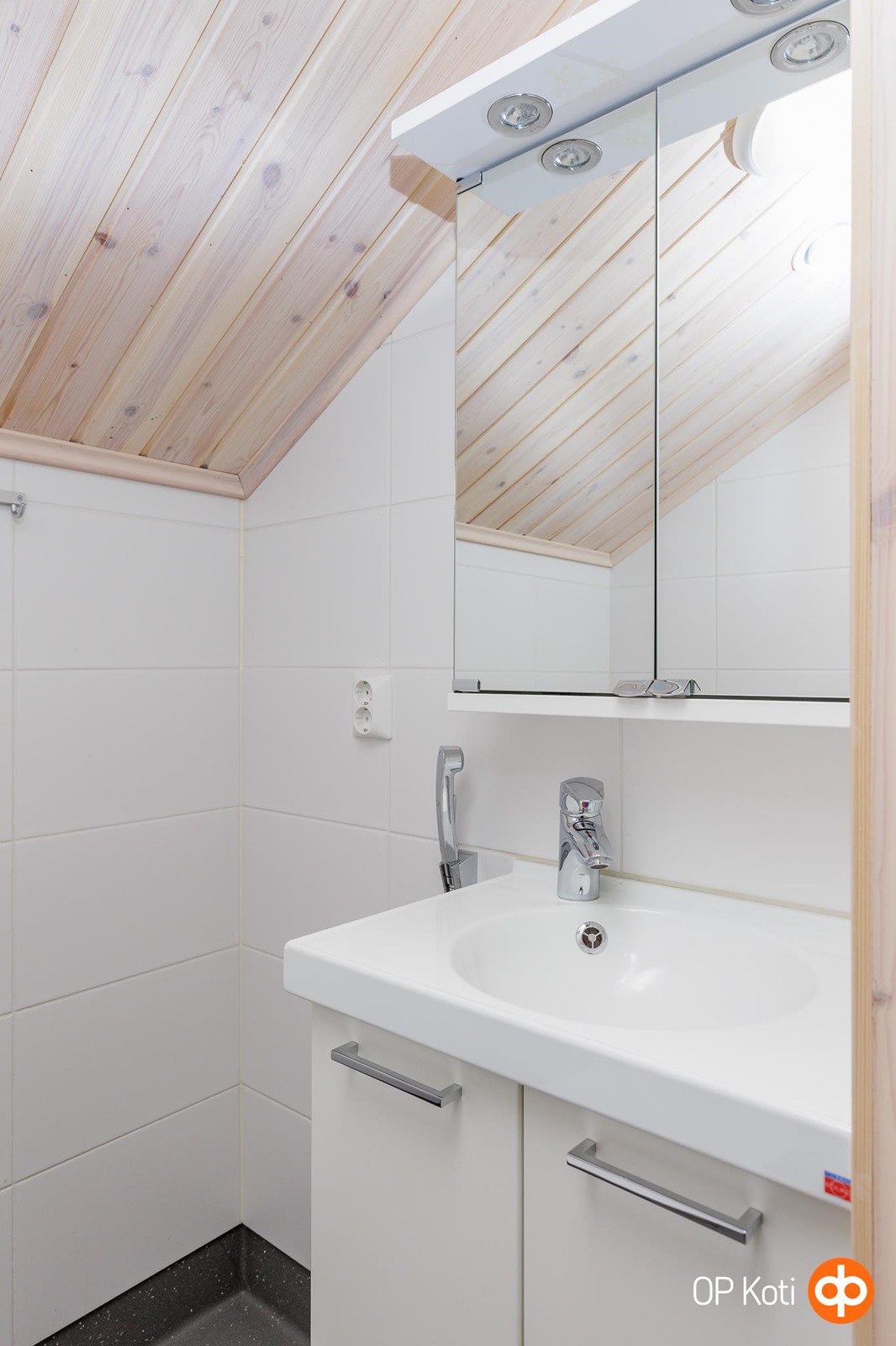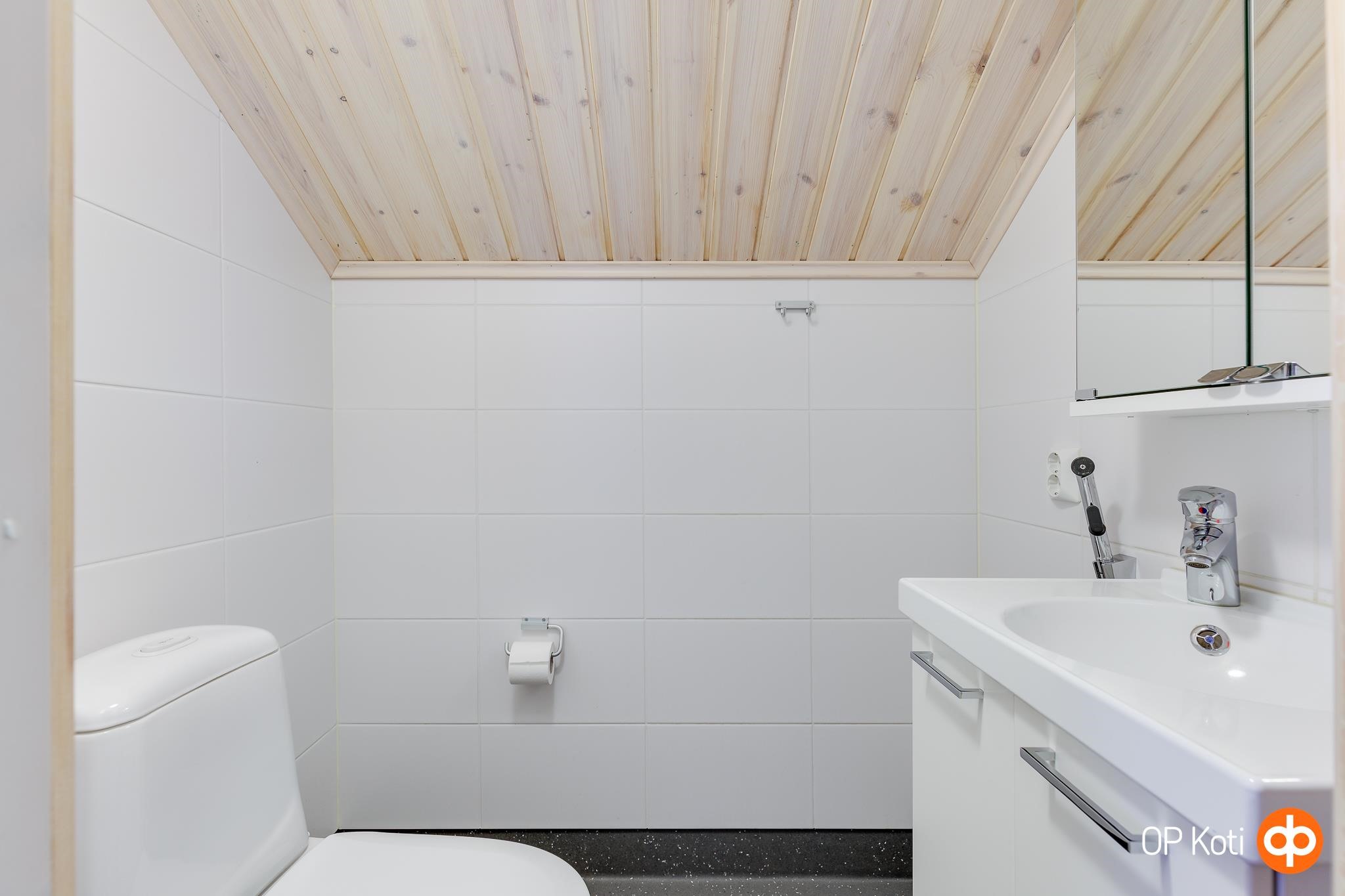 - Sauna, sähkökiuas, kylpyhuone, erillinen wc 3 wc, suihku 2 kpl, peilit, kaapit, allaskaappi, pesukoneliitäntä, lattialämmitys, kiinteät valaisimet.