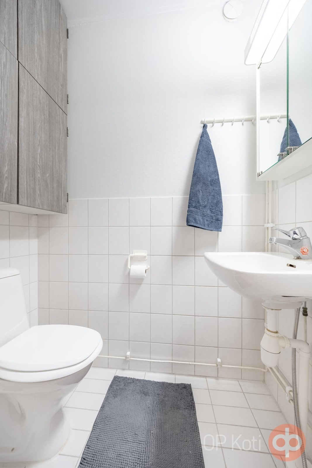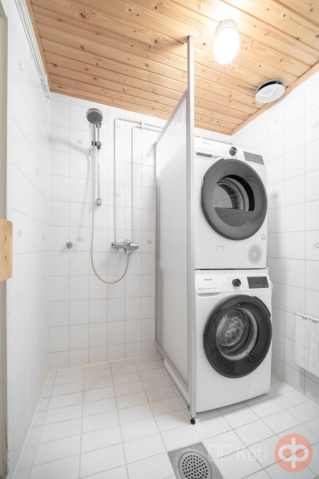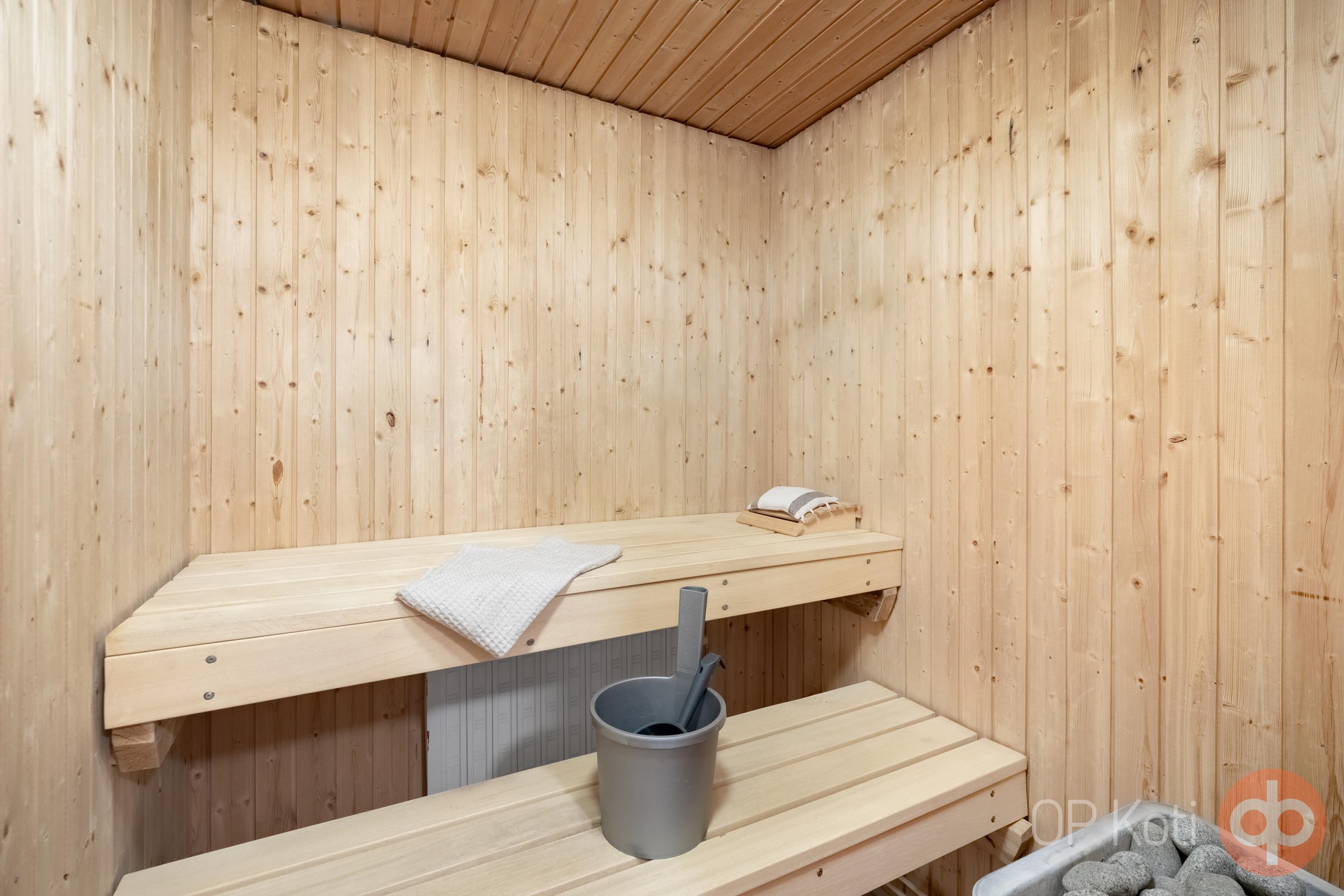 - Sauna, sähkökiuas, kylpyhuone, erillinen wc, suihku, peilikaappi, pesukoneliitäntä, lattialämmitys, kiinteät valaisimet.