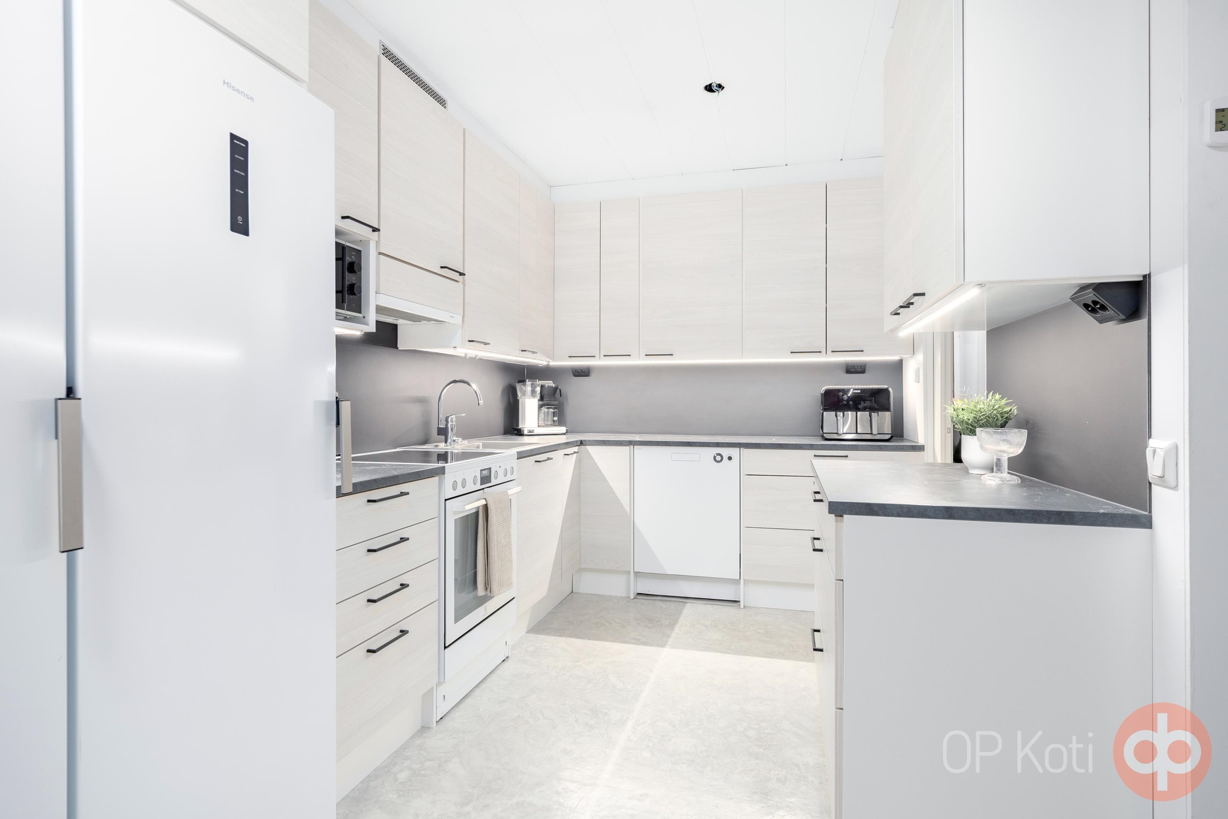 Tässä kodissa on tilaa ja avaruutta 93 neliömetrin verran. Asunto on hyvin suunniteltu ja remontoitu moderni keittiö on varustettu laadukkailla kodinkoneilla sekä runsailla säilytyskaapistoilla, mikä tekee ruoanlaitosta ja arjen askareista vaivatonta. Kolme makuuhuonetta tarjoavat erinomaiset tilat koko perheelle, ja olohuoneen isot ikkunat luovat valoisan ja avaran tunnelman. Sauna sähkökiukaalla ja kylpyhuoneen lattialämmitys tuovat luksusta arkeen, ja erillinen wc sekä vaatehuone lisäävät käytännöllisyyttä.