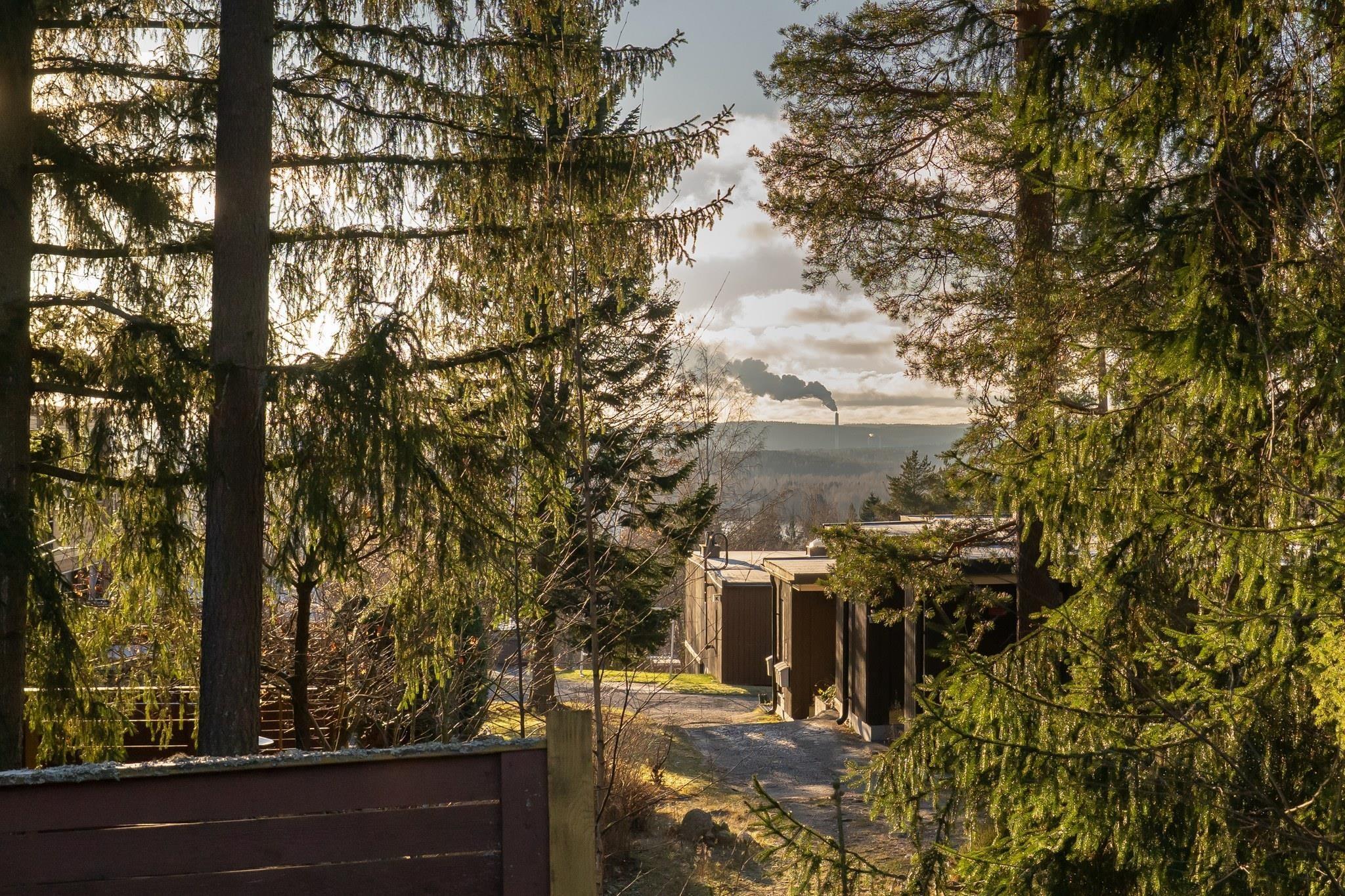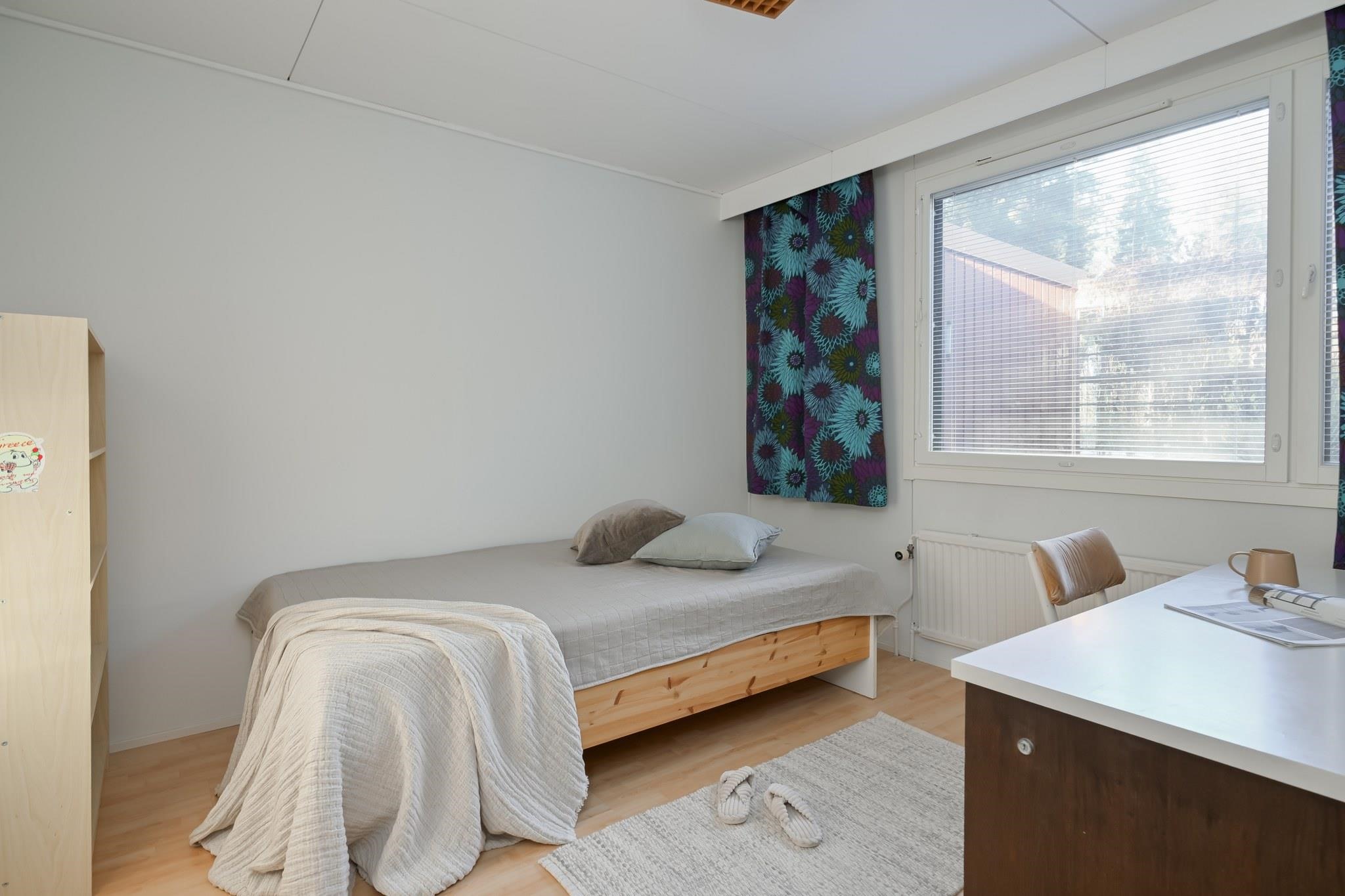 - Makuuhuoneesta näkymä sisääntulopihalle, pohjoiseen. Ruokailutilasta / keittiöstä ja makuuhuoneesta näkymä takapihalle, etelään.