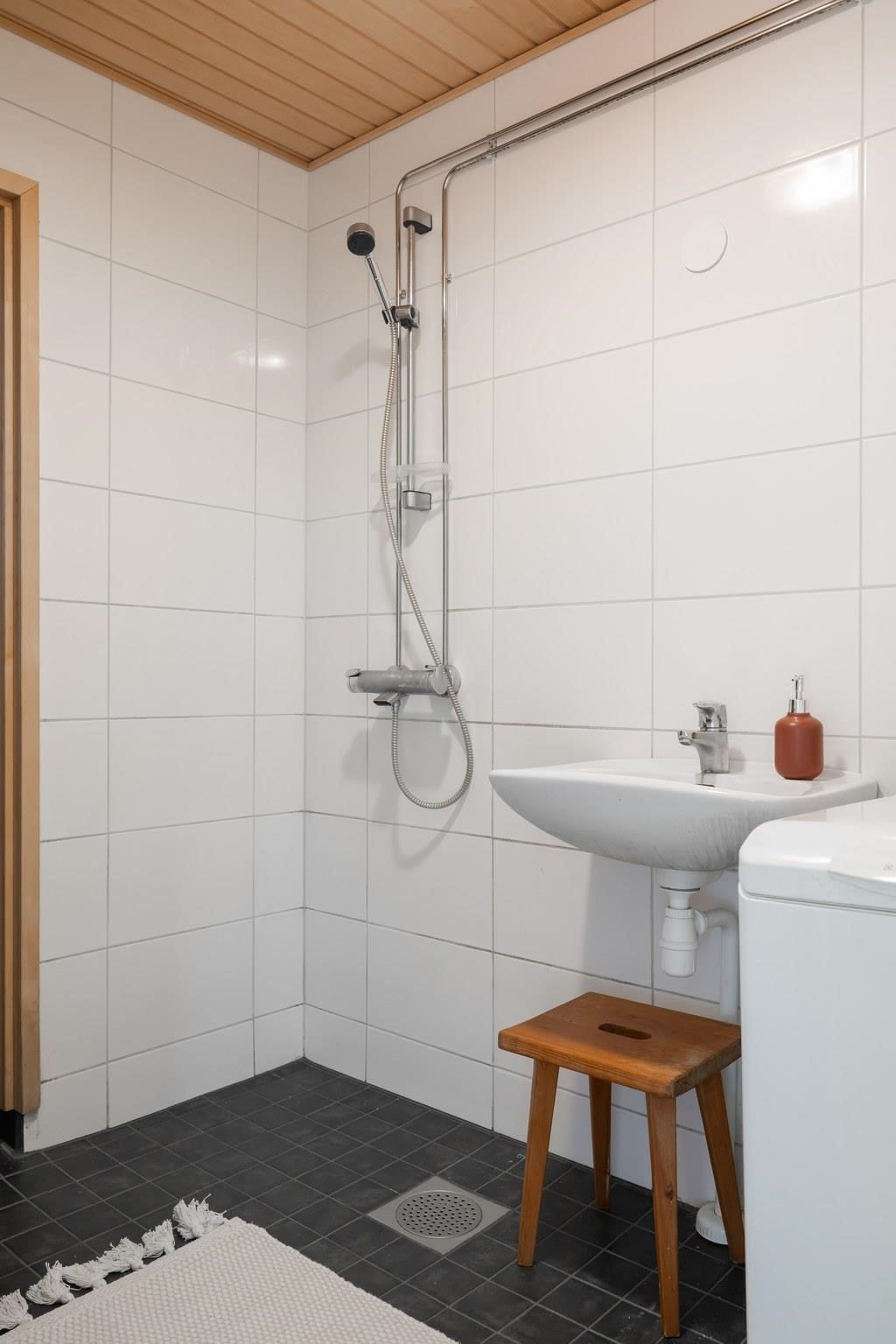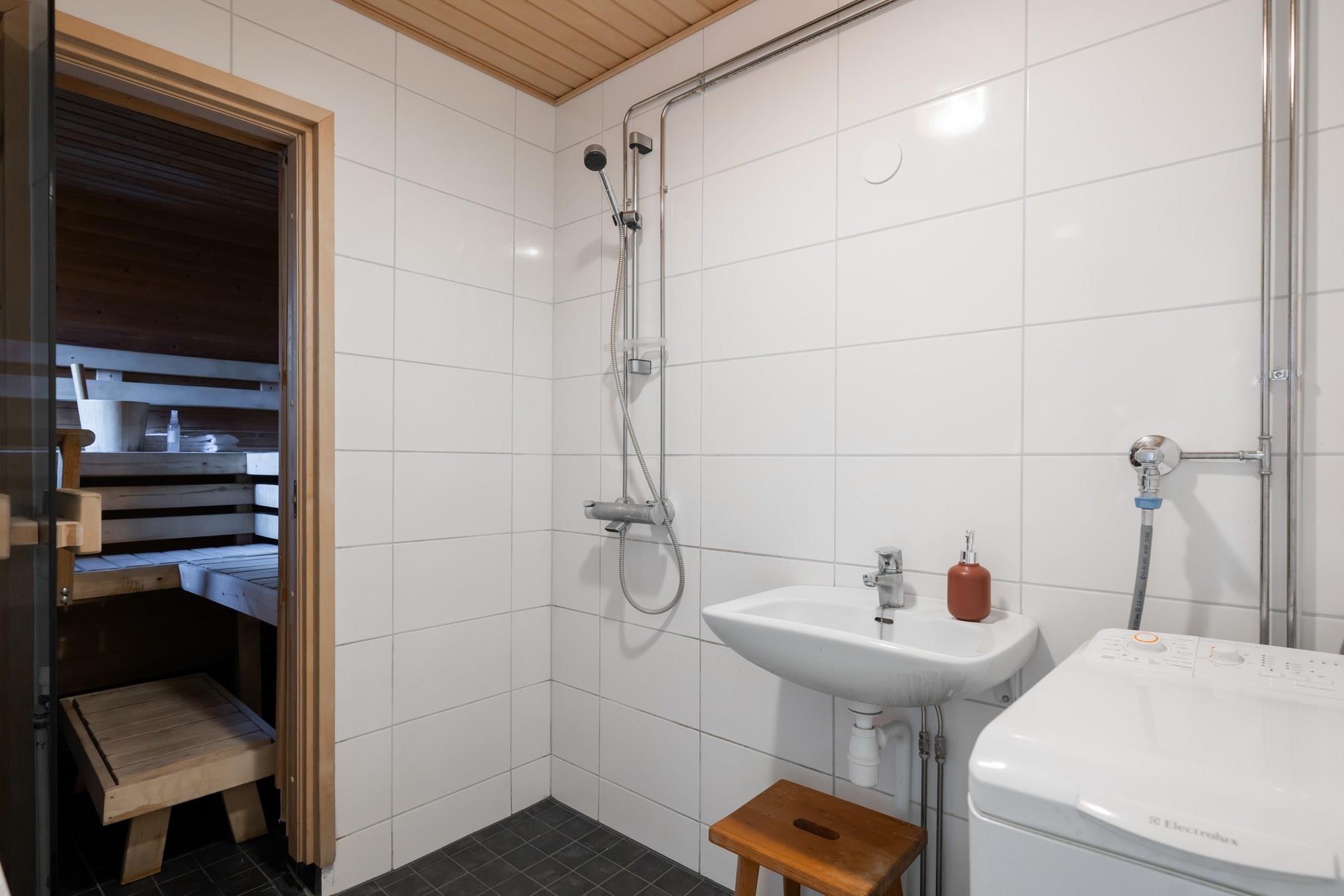 - Sauna, sähkökiuas, kylpyhuone, erillinen wc, suihku, peilikaappi, pesukoneliitäntä, lattialämmitys, kiinteät valaisimet. Kylpyhuone remontoitu v. 2009. Sauna rakennettu osakkaan toimesta, luvat on.