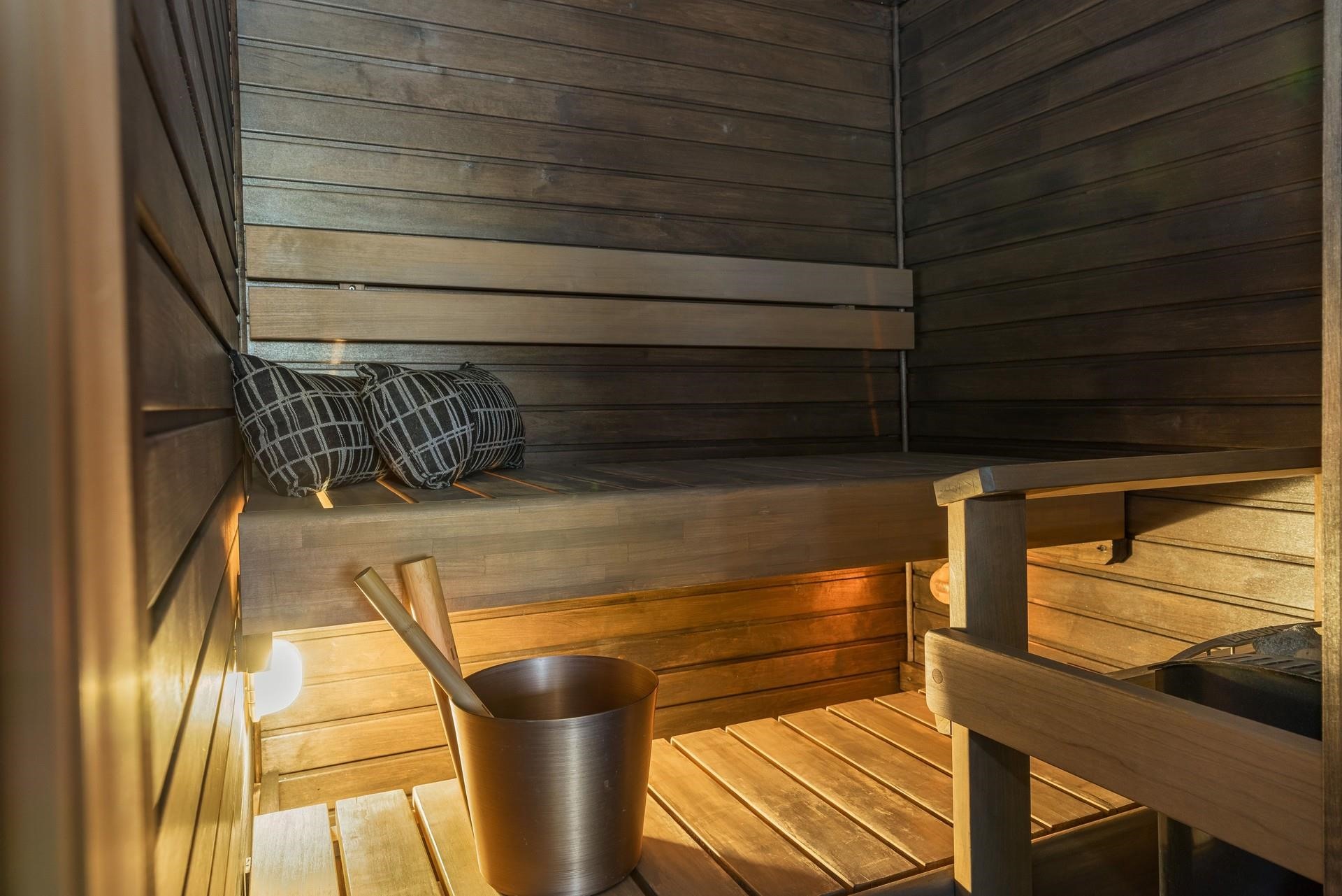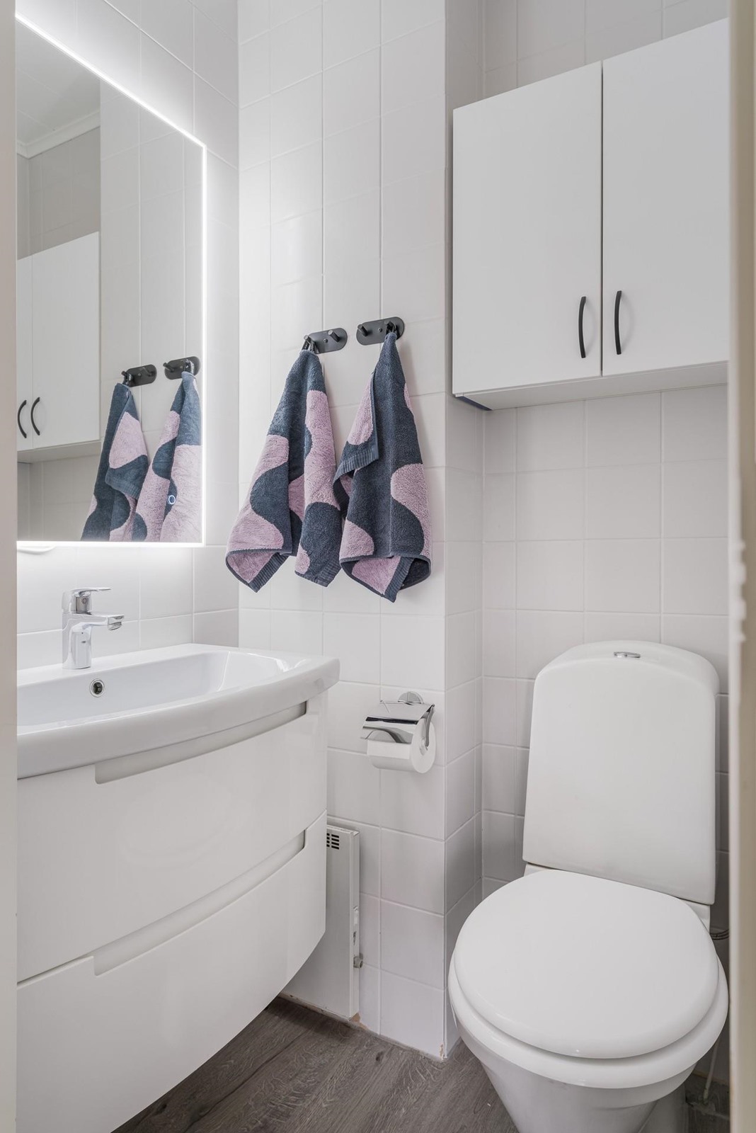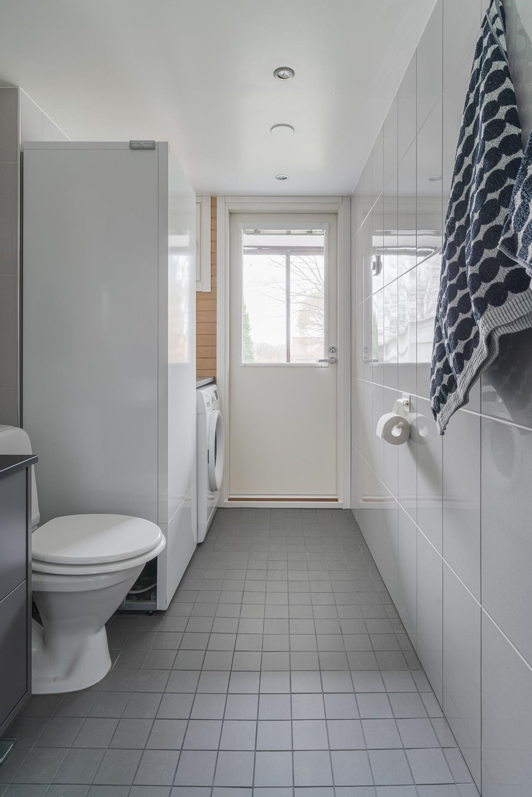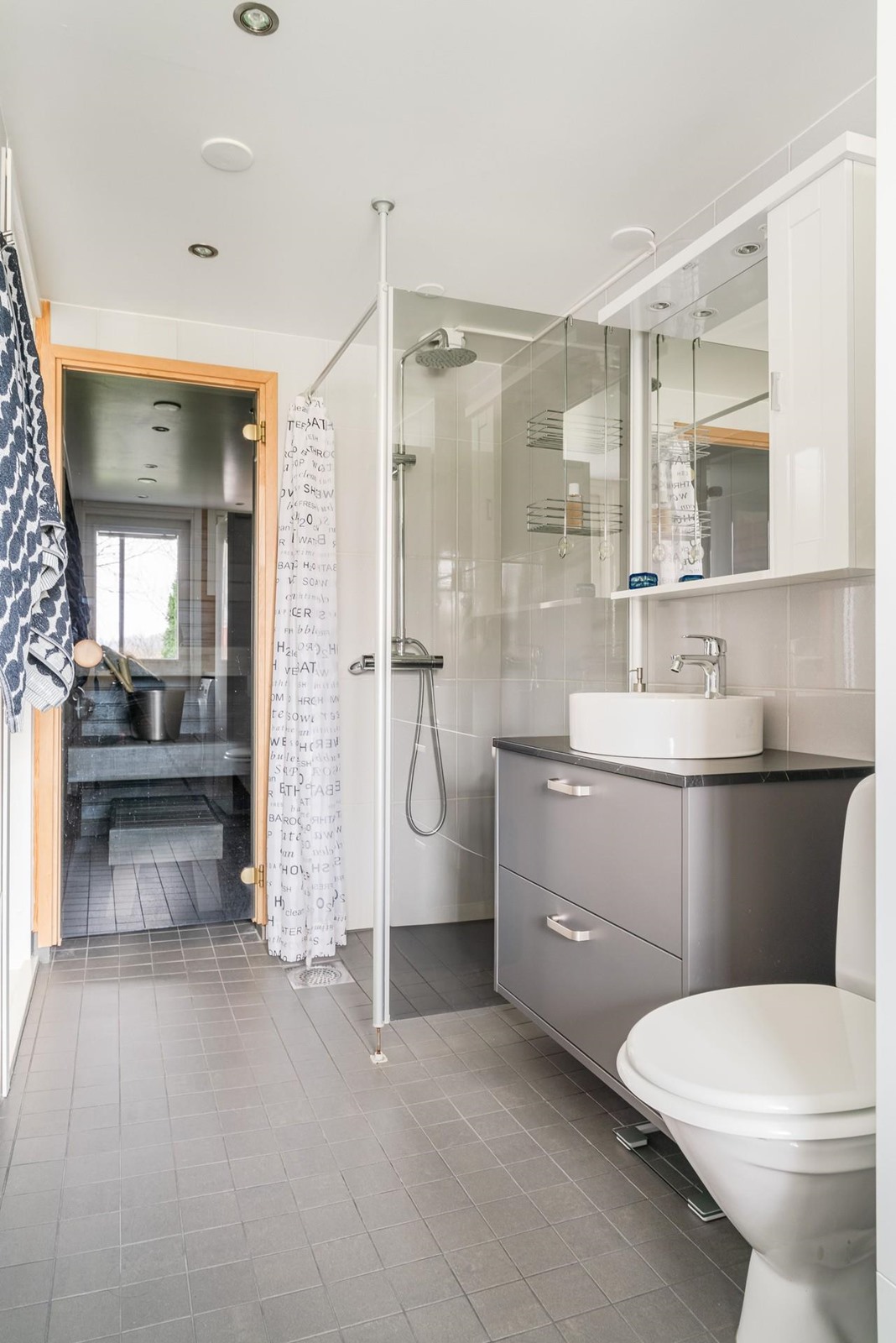 - Sauna, sähkökiuas, kylpyhuone, erillinen wc, suihku, suihkuseinä, peilit 2 kpl, allaskaappi 2 kpl, pesukoneliitäntä kph:ssa, lattialämmitys sähköllä kph:ssa, kiinteät valaisimet. Lämminvesivaraaja.