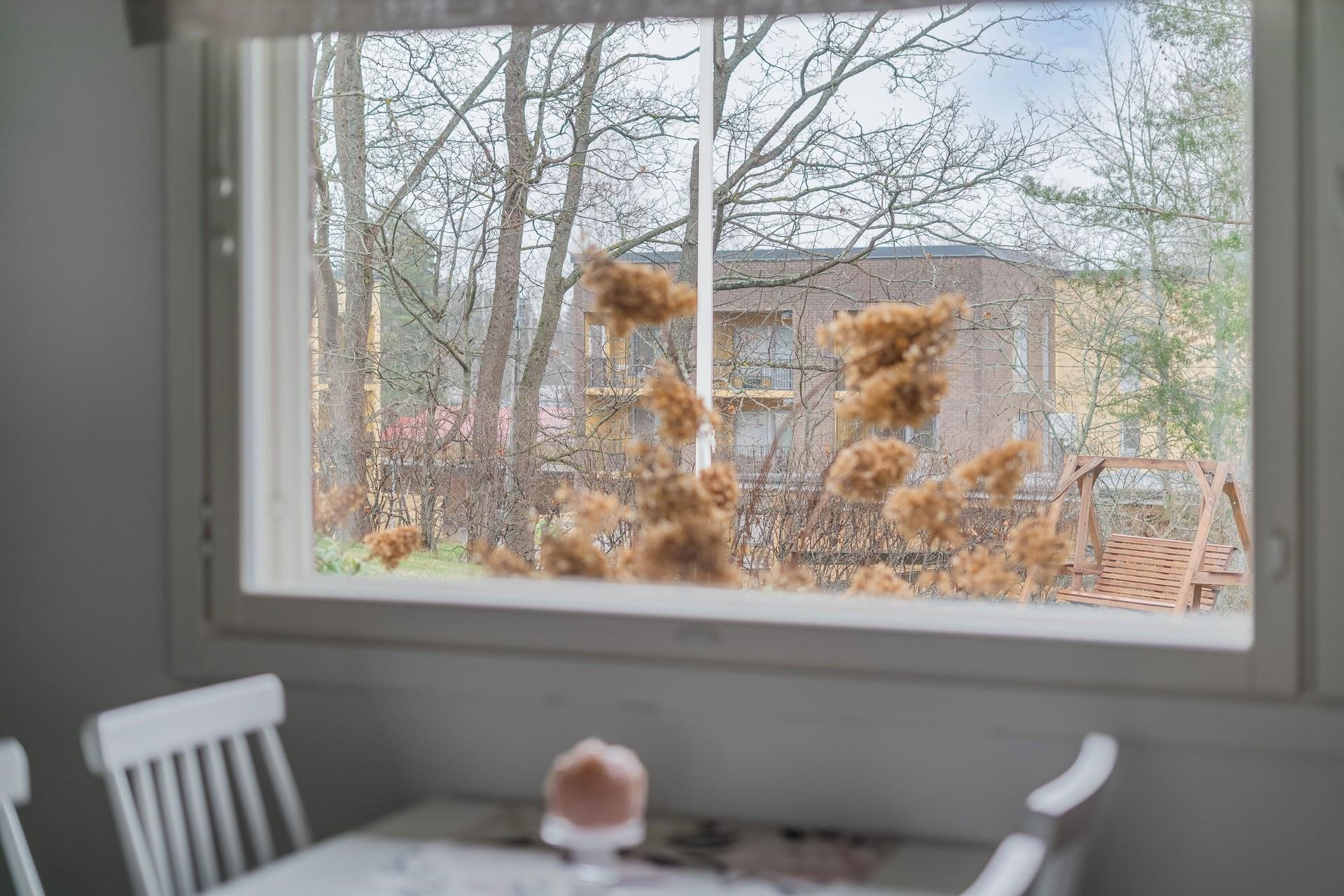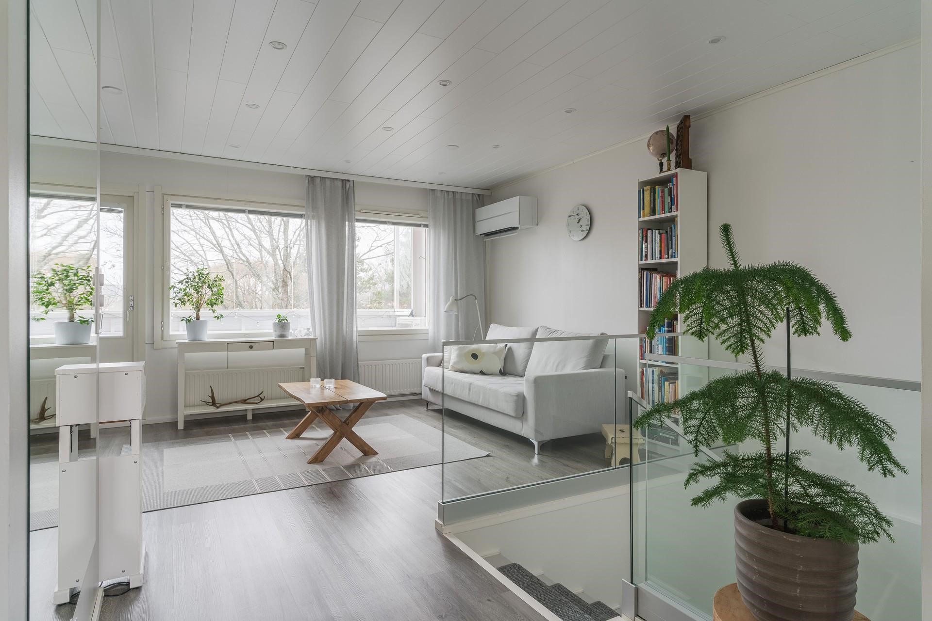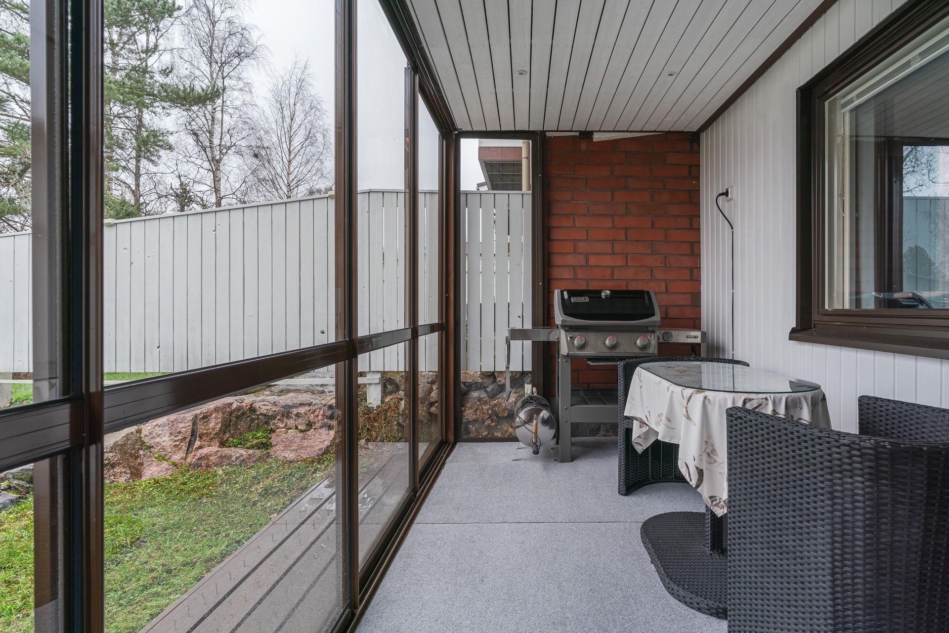 Aurinkoinen pihapiiri, lasitettu alaterassi, yläkerran lasitettu parveke ja oma sauna odottavat sinua nauttimaan rivitaloasumisesta parhaimmillaan. Vuonna 1982 valmistunut 8 huoneiston yhtiö Asunto Oy Katajamäentie 40-42 sijaitsee mäen päällä omassa rauhassaan kodikkaalla pientaloalueella. Tätä kotia on remontoitu tyylikkään modernisti vuonna 2018, joten muuttamaan pääset ilman remonttihuolia. Yläkertaan sijoittuvat sisääntulo, keittiö, olohuone ja erillinen wc. Olohuoneesta on kulku ihanalle lasitetulle parvekkeelle. Alakertaan jää makuuhuone, tilava kylpyhuone ja sauna sekä rappusten alle säilytystilaa. Reilunkokoinen takapiha tarjoaa kesäkeitaan ulkona viihtymiseen, ja alakerran lasitetulla terassilla on ihana istahtaa saunan jälkeen vilvoittelemaan. Asunnolle kuuluu autotalli autosuojarakennuksessa, kellarivarasto ja kylmäkellarikaappi.