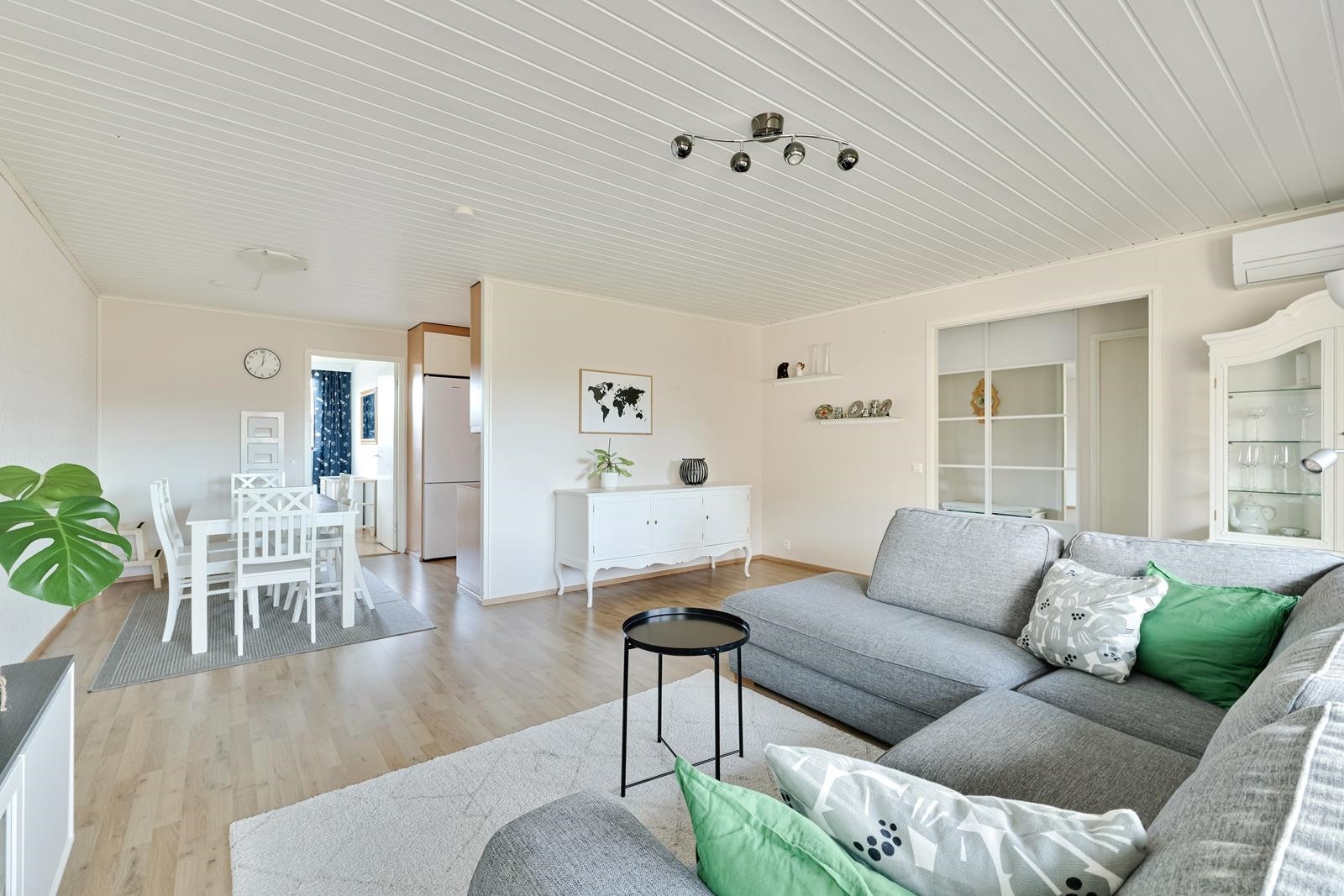 Hyväkuntoinen rivitaloneliö, jossa on kolme makuuhuonetta ja selkeä, toimiva pohjaratkaisu. Kodin sydän on avara olohuone, joka yhdistyy luontevasti ruokailutilaan, tässä olohuoneessa tilaa riittää niin arkeen kuin vieraillekin. Vaalea, siisti keittiö tarjoaa runsaasti kaappitilaa ja hyvät kokkailutilat. Kylpyhuone on hyvässä kunnossa, ja pesutornille on oma paikkansa. Lisäksi oma sauna tuo arkeen ripauksen mukavuutta. Tilava vaatehuone helpottaa arjen säilytysratkaisuja. Etupihan suojaisa piha-alue ja katettu terassi tuovat mukavasti lisätilaa oleskeluun pitkälle syksyyn. Autokatos ja varasto sijaitsevat kätevästi aivan huoneiston kohdalla. Sovitaan esittely.