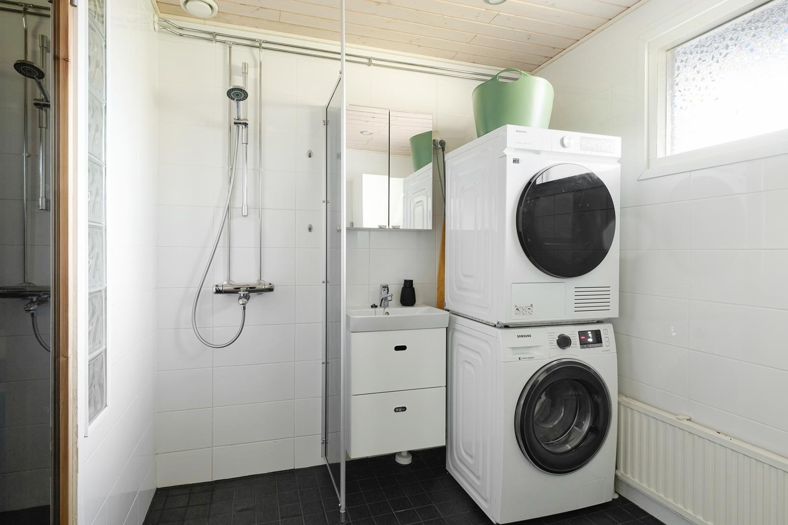 - Sauna, sähkökiuas, kylpyhuone, erillinen wc, suihku, peilit, pesukoneliitäntä. Kylpyhuoneremontti noin 2015.