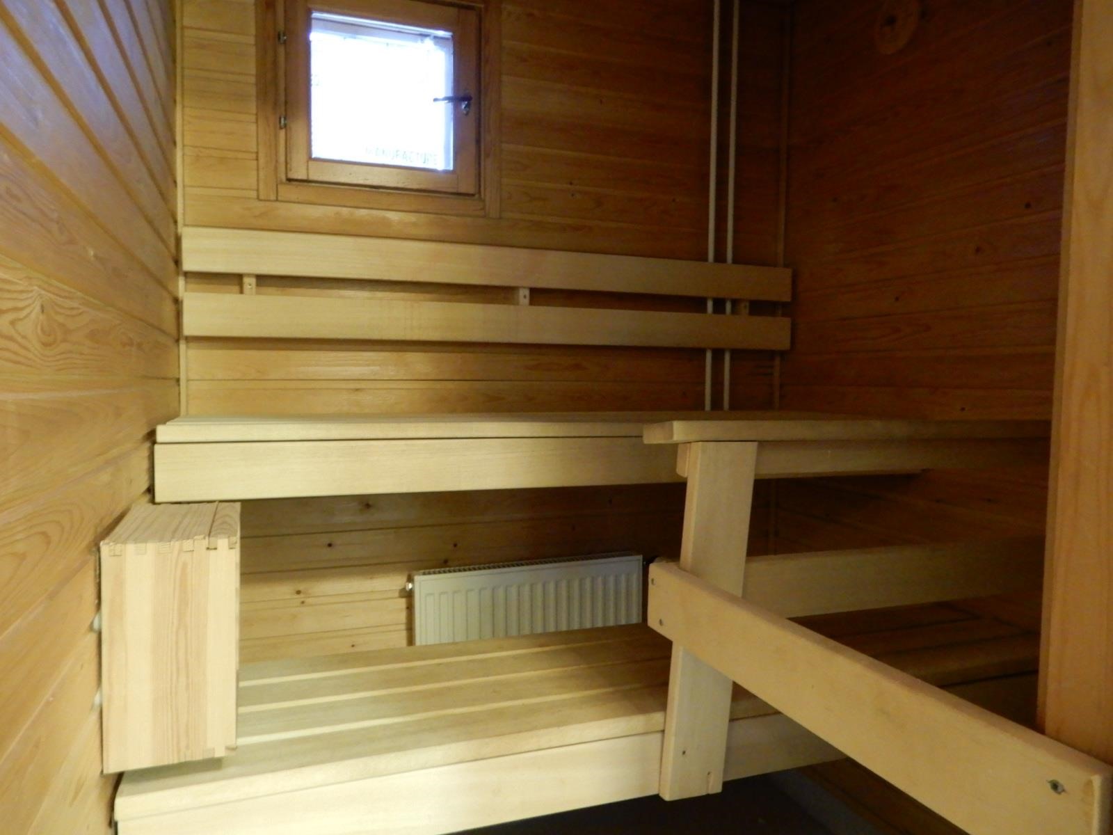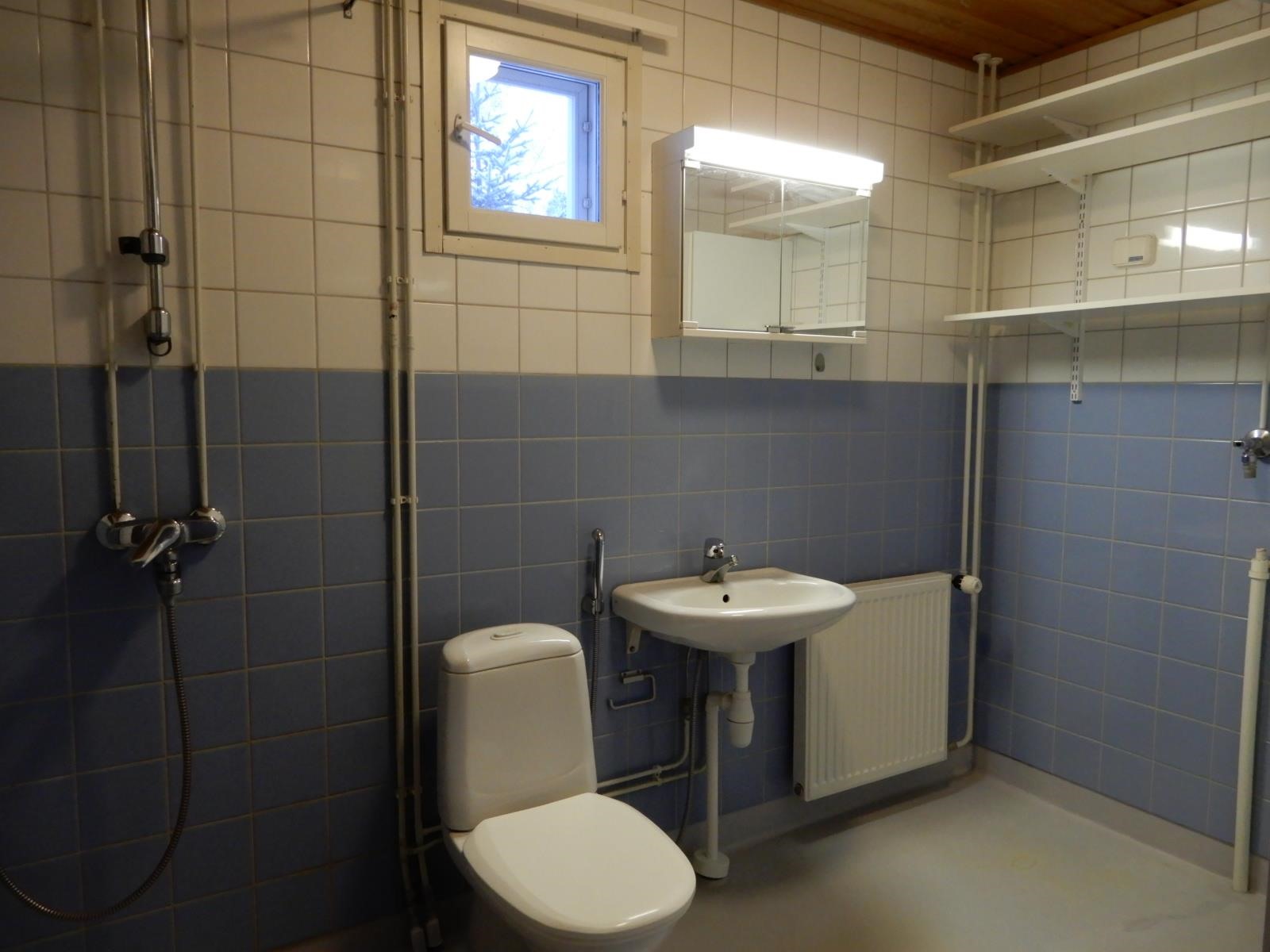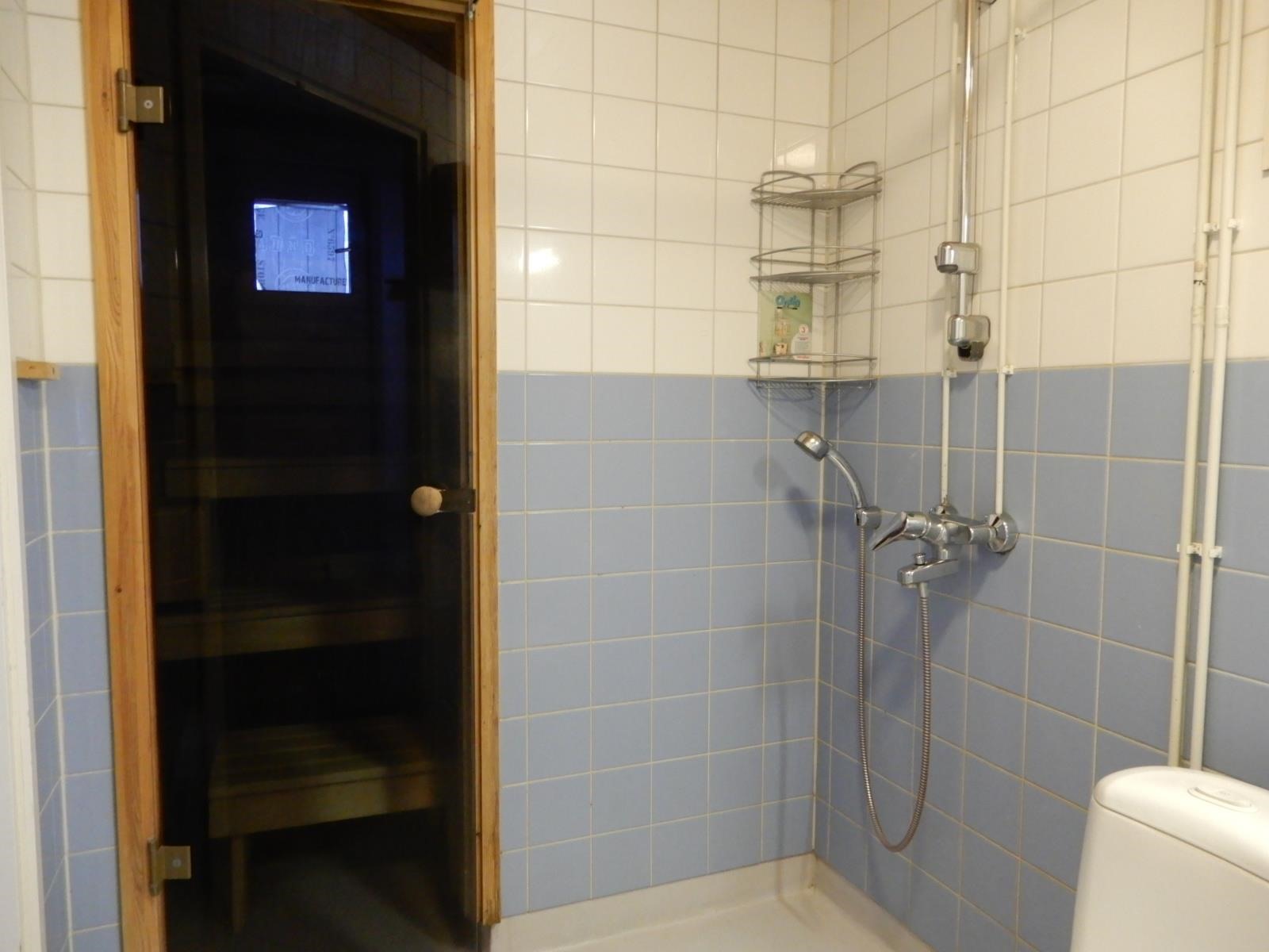 - Sauna, sähkökiuas, kylpyhuone, suihku, peilikaappi, pesukoneliitäntä, kiinteät valaisimet.