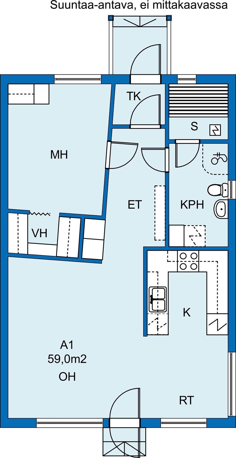 - Jääkaappipakastin, sähköliesi, liesituuletin, kaapistot, kiinteät valaisimet. astianpesukoneliitäntä (mahdollisuus asennuttaa oma pesukone)