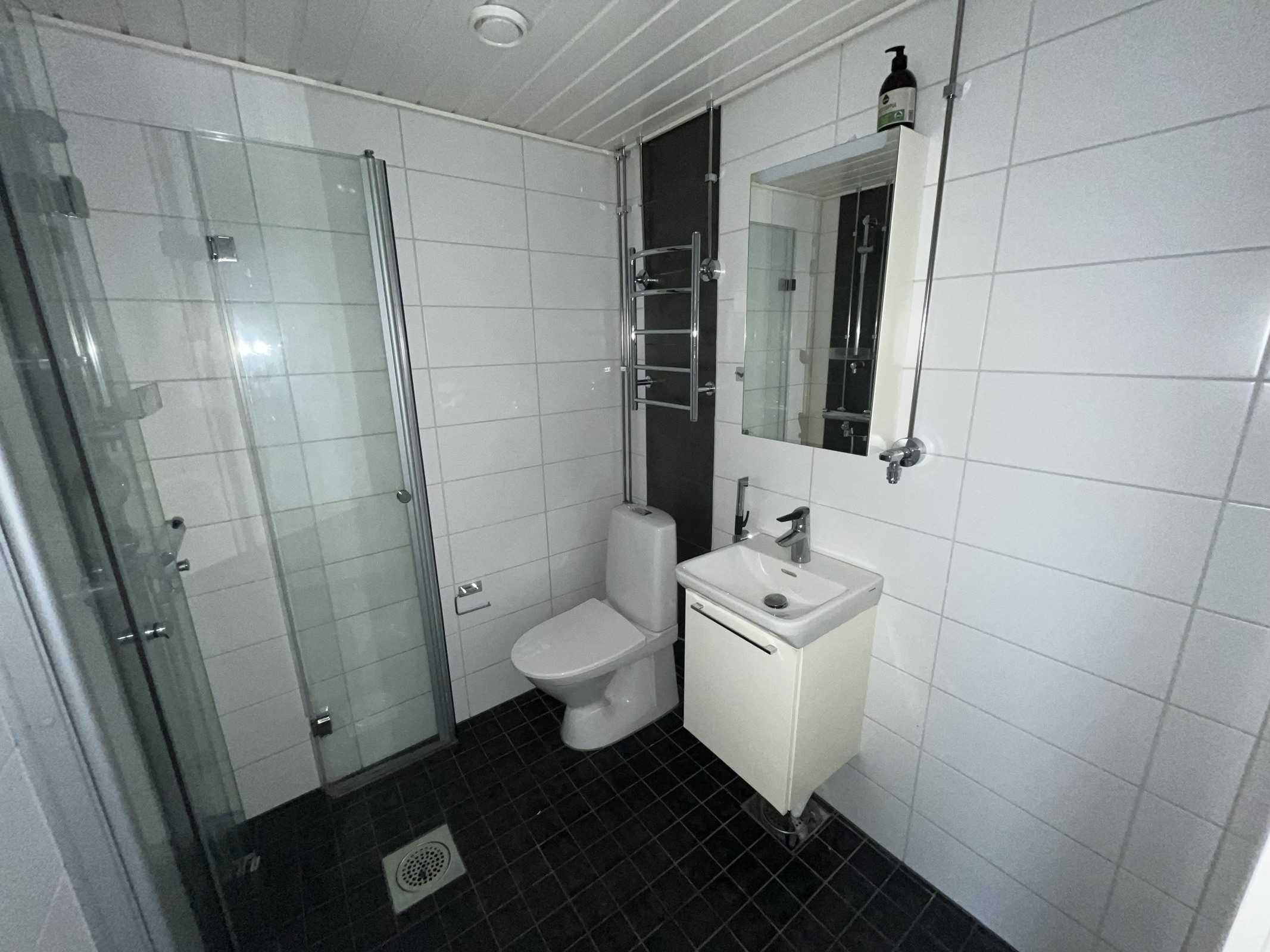 - Kylpyhuone, suihku, suihkuseinä, peilikaappi, pesukoneliitäntä. Kylpyhuone remontoitu vuonna 2018