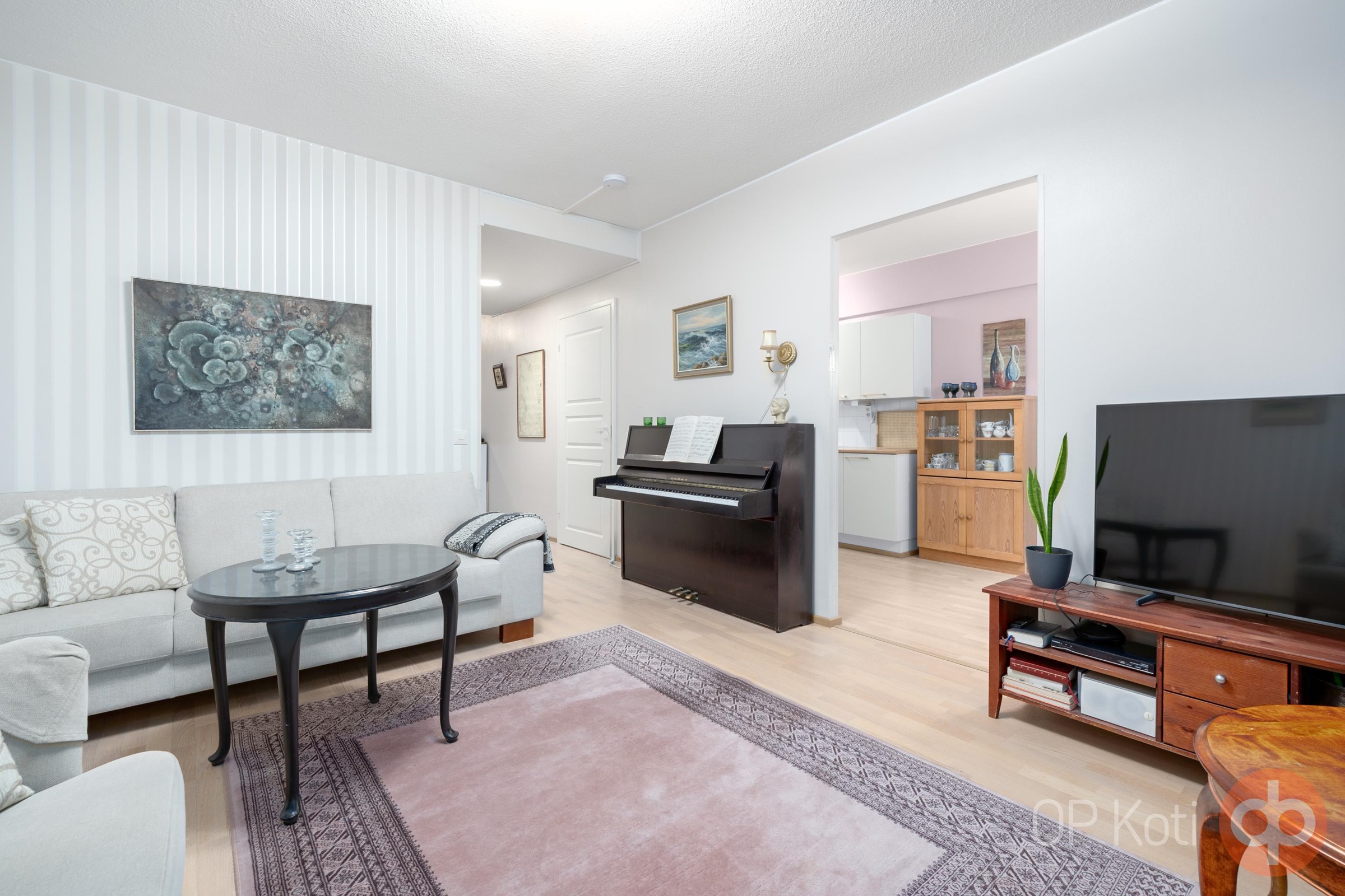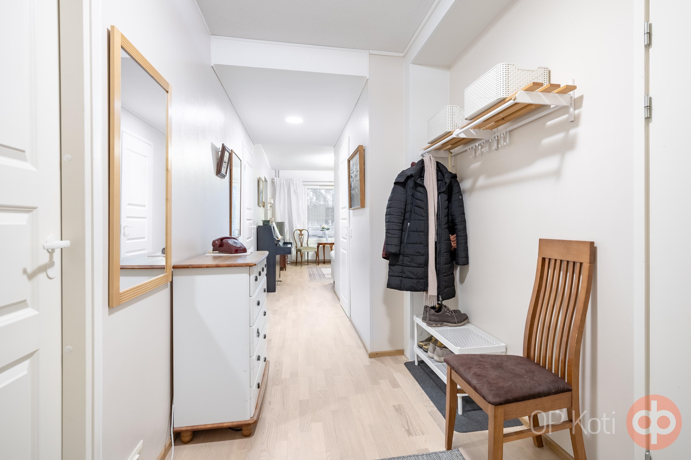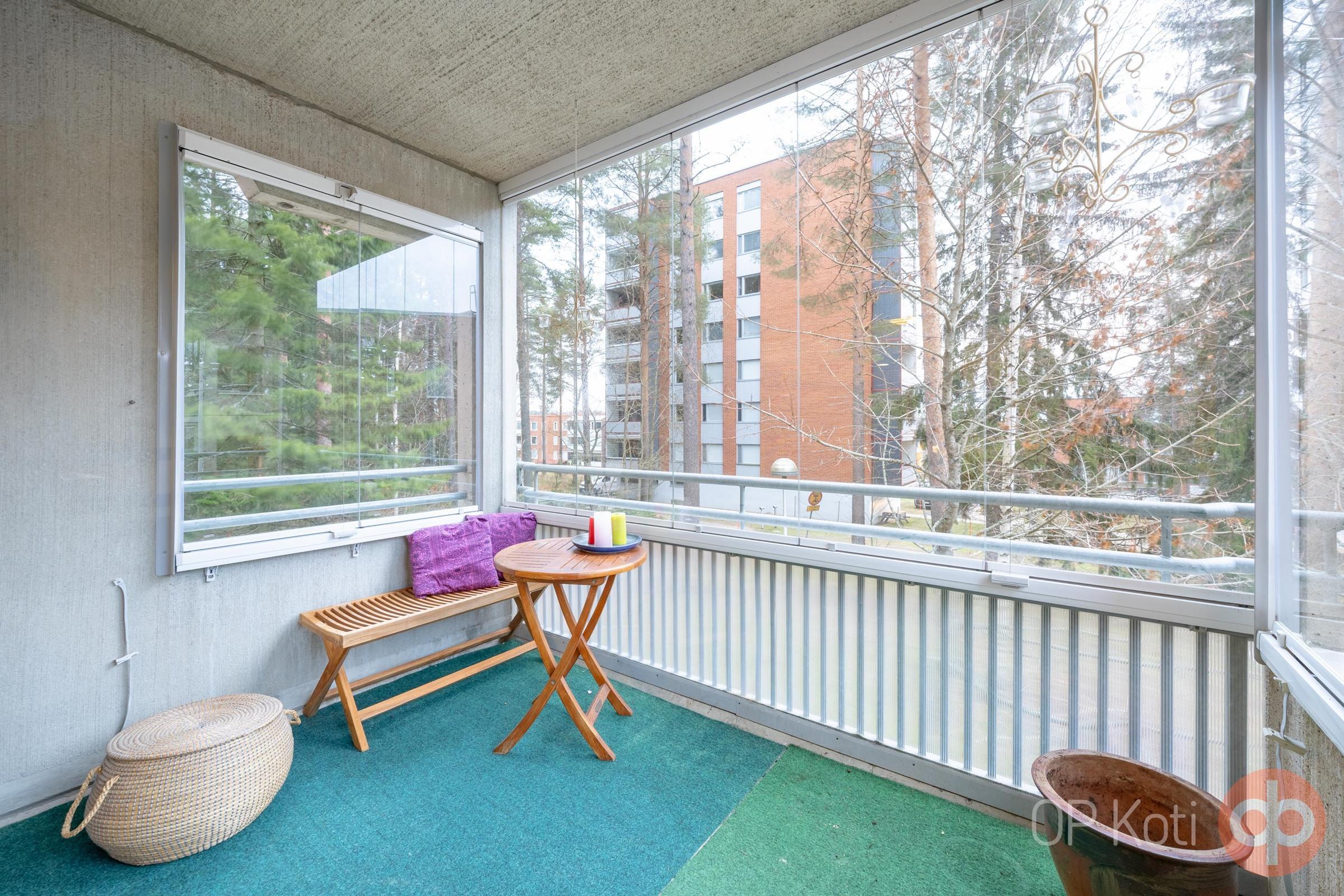 Kaunis ja hyväkuntoinen kolmio Ukonkujalla, hissitalon ensimmäisessä asuinkerroksessa Tule tutustumaan viihtyisään ja hyvin pidettyyn kolmioon. Asunto sijaitsee hissillisen talon ensimmäisessä asuinkerroksessa, mikä tekee liikkumisesta helppoa ja arjesta vaivatonta. Koti on saanut päivitetyn ilmeen putkiremontin yhteydessä uusitun kylpyhuoneen ja saunan ansiosta. Tilava kylpyhuone tarjoaa runsaasti tilaa arjen toiminnoille, ja oma sauna tuo arkeen ylellisyyttä ja rentouttavia hetkiä. Keittiö on tilava ja toimiva, tarjoten erinomaiset puitteet ruoanlaittoon ja leivontaan. Laajat työskentelypinnat ja hyvät säilytystilat tekevät keittiöstä kodin keskipisteen. Asunnon kaksi makuuhuonetta tarjoavat hyvin muunneltavaa tilaa: päämakuuhuone on miellyttävän suuri ja helposti sisustettavissa, ja toinen makuuhuone sopii täydellisesti työhuoneeksi, vierashuoneeksi tai rauhalliseksi omaksi tilaksi. Valoisa olohuone jatkuu sujuvasti lasitetulle parvekkeelle, joka toimii erinomaisena lisätilana keväästä syksyyn. Parvekkeella on mukava nauttia rauhallisista hetkistä ja omasta ulkotilasta säältä suojassa. Tämä koti tarjoaa huolettoman ja viihtyisän asumisen kokonaisuuden hyvällä sijainnilla ja tehtyjen remonttien tuomalla varmuudella. Tervetuloa tutustumaan, tämä asunto hurmaa lämpimällä tunnelmallaan ja toimivilla tilaratkaisuillaan!