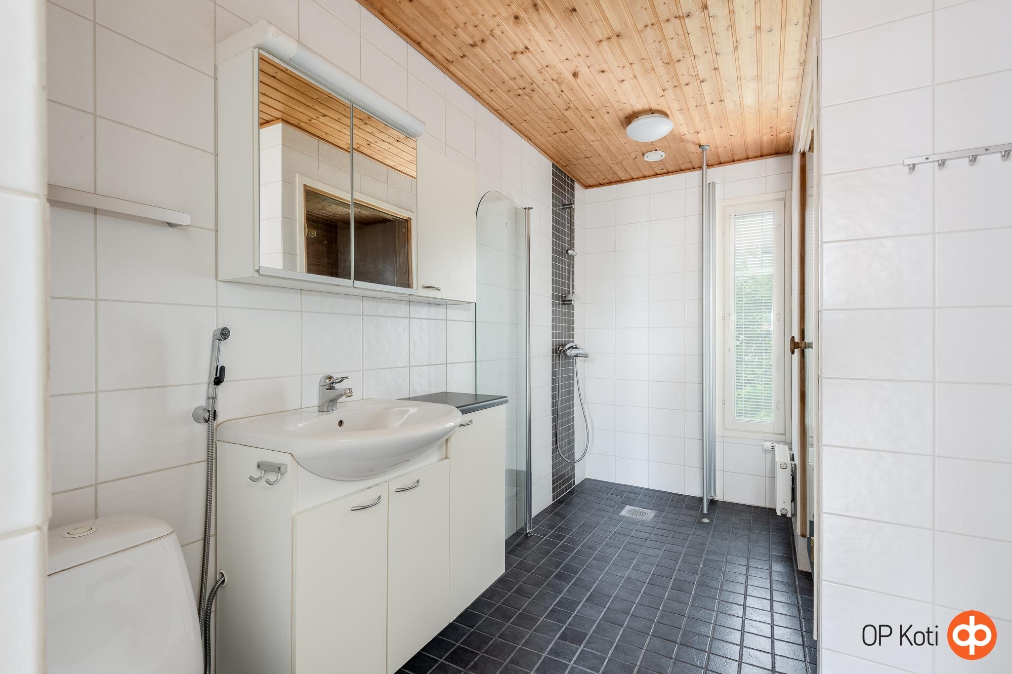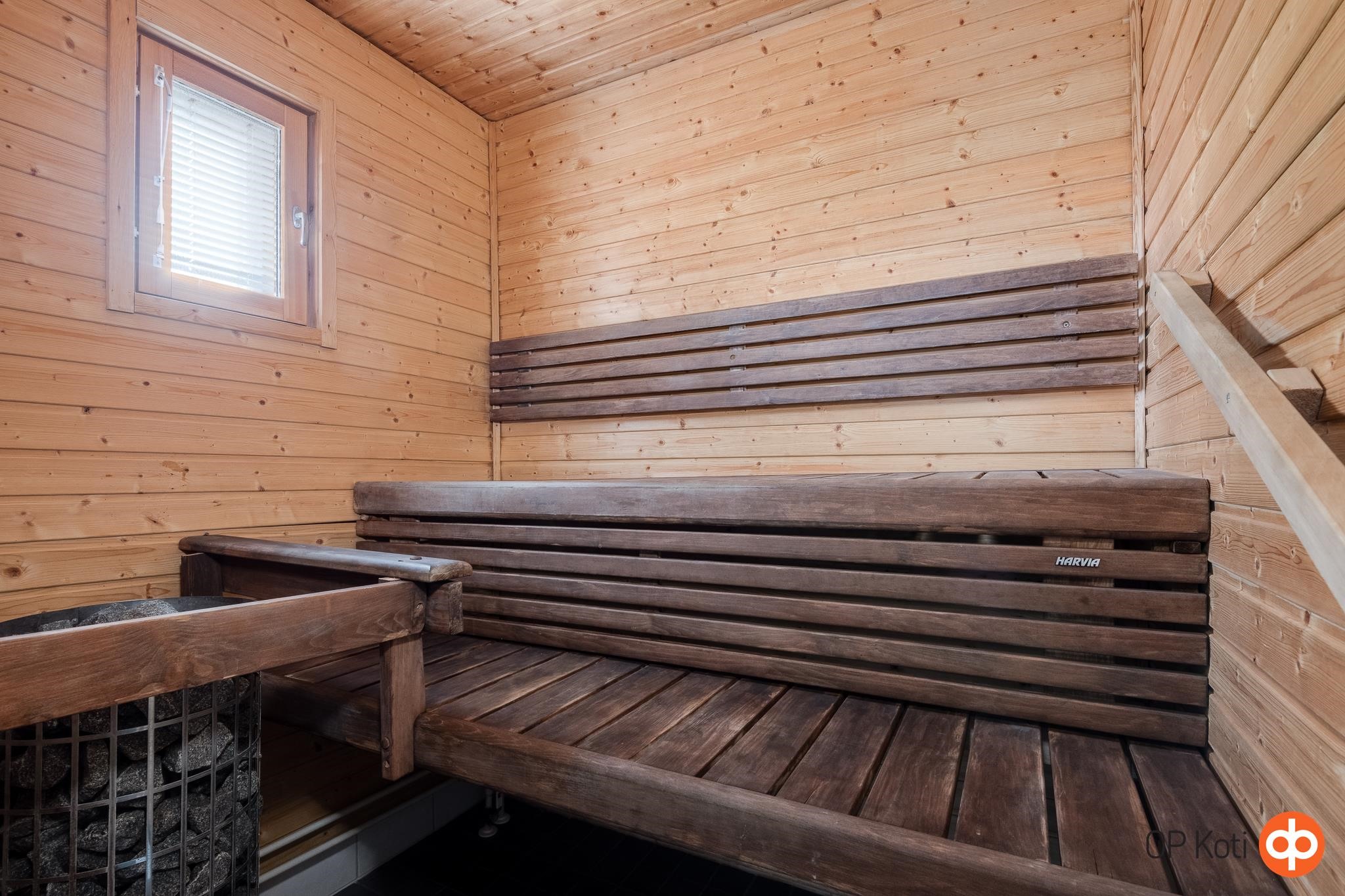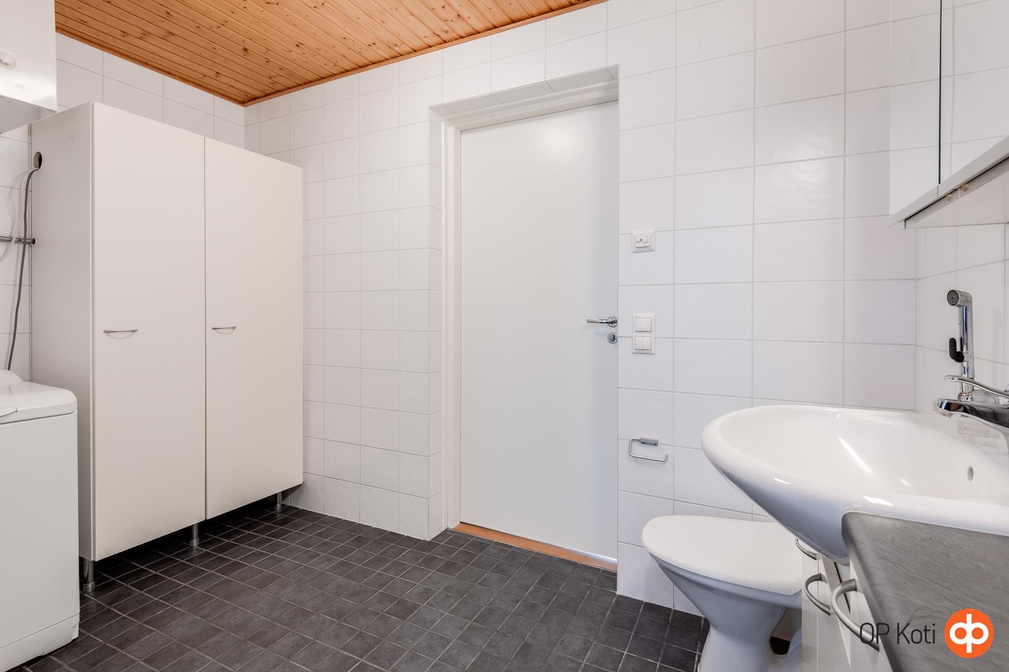 - Sauna, sähkökiuas, kylpyhuone, erillinen wc, suihkuseinä, peilikaappi, kaapit, allaskaappi, pesukoneliitäntä, lattialämmitys.