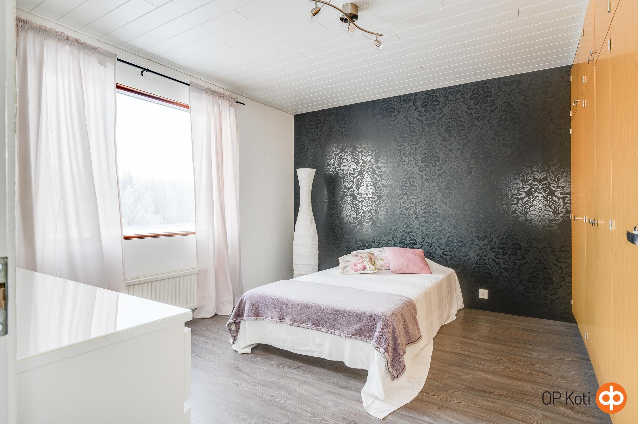 Keittiö: Laminaatti, tapetti. Olohuone: Laminaatti, tapetti. Makuuhuone 1: Laminaatti, tapetti. Makuuhuone 2: Laminaatti, tapetti. Sauna: Laatta, paneeli. Kylpyhuone: Laatta, laatta. Wc: Laatta, laatta.