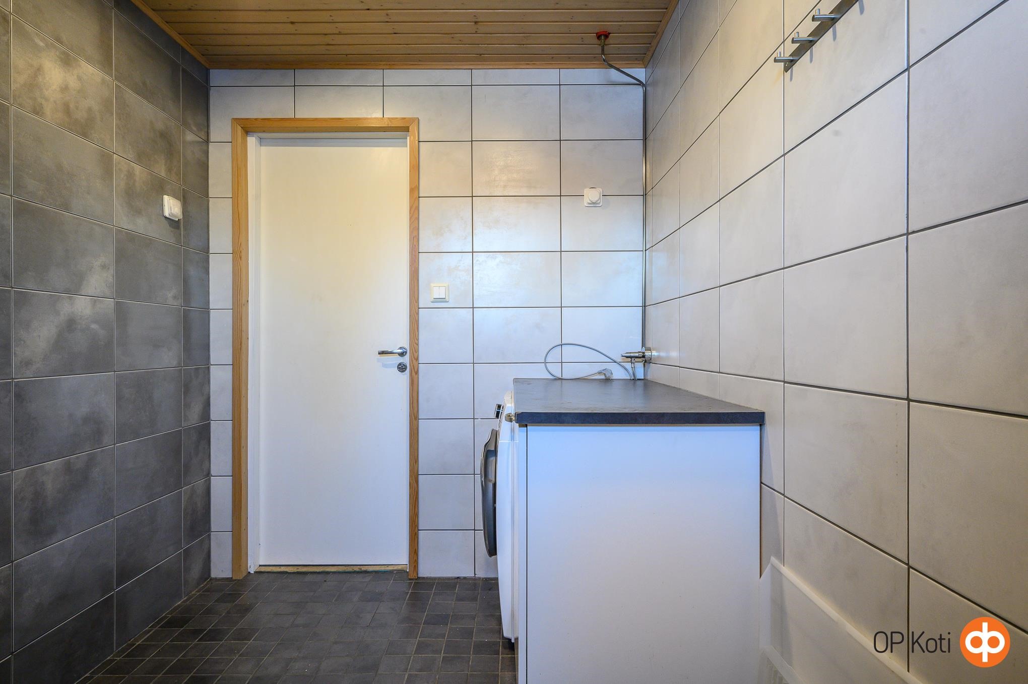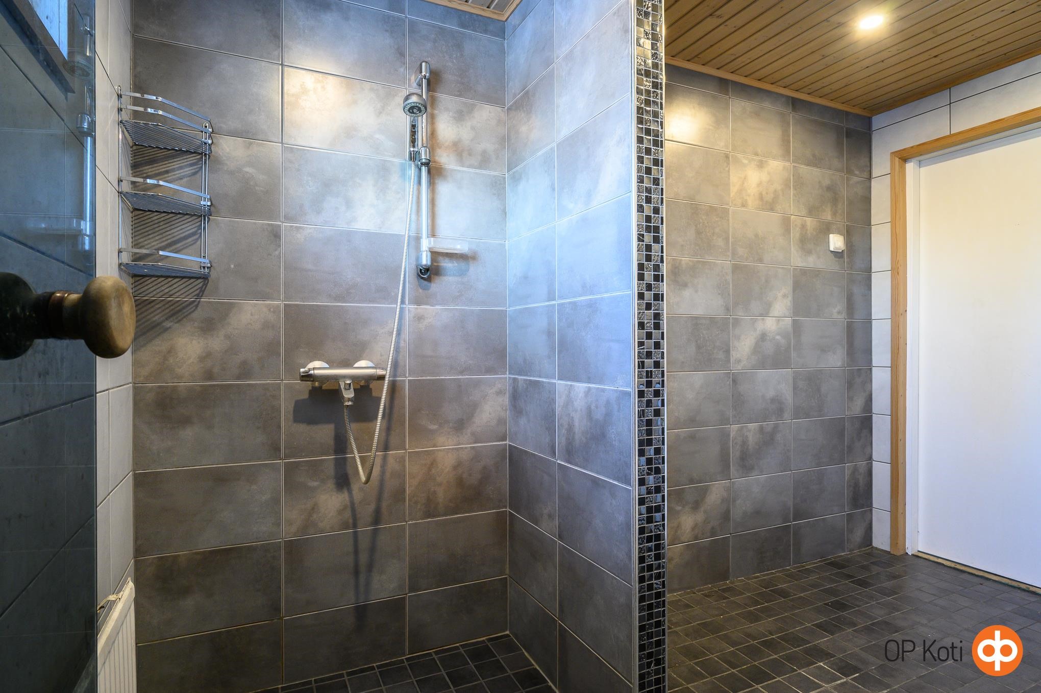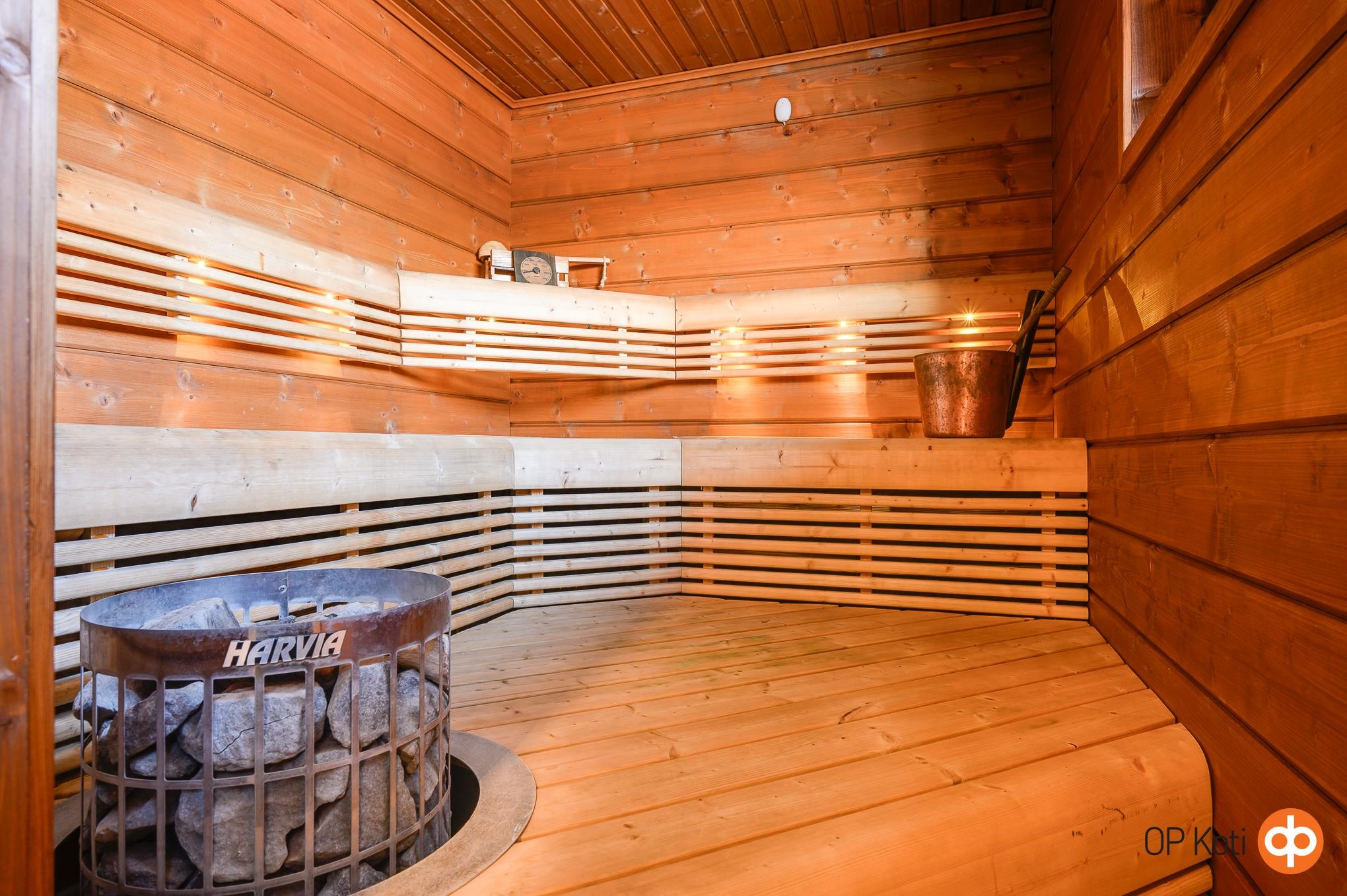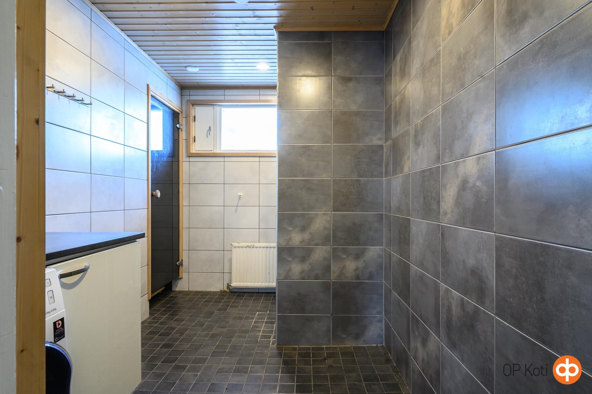 - Sauna, sähkökiuas, kylpyhuone, erillinen wc, suihku, kaapit, pesukoneliitäntä, lattialämmitys Kosteissa tiloissa, kiinteät valaisimet.