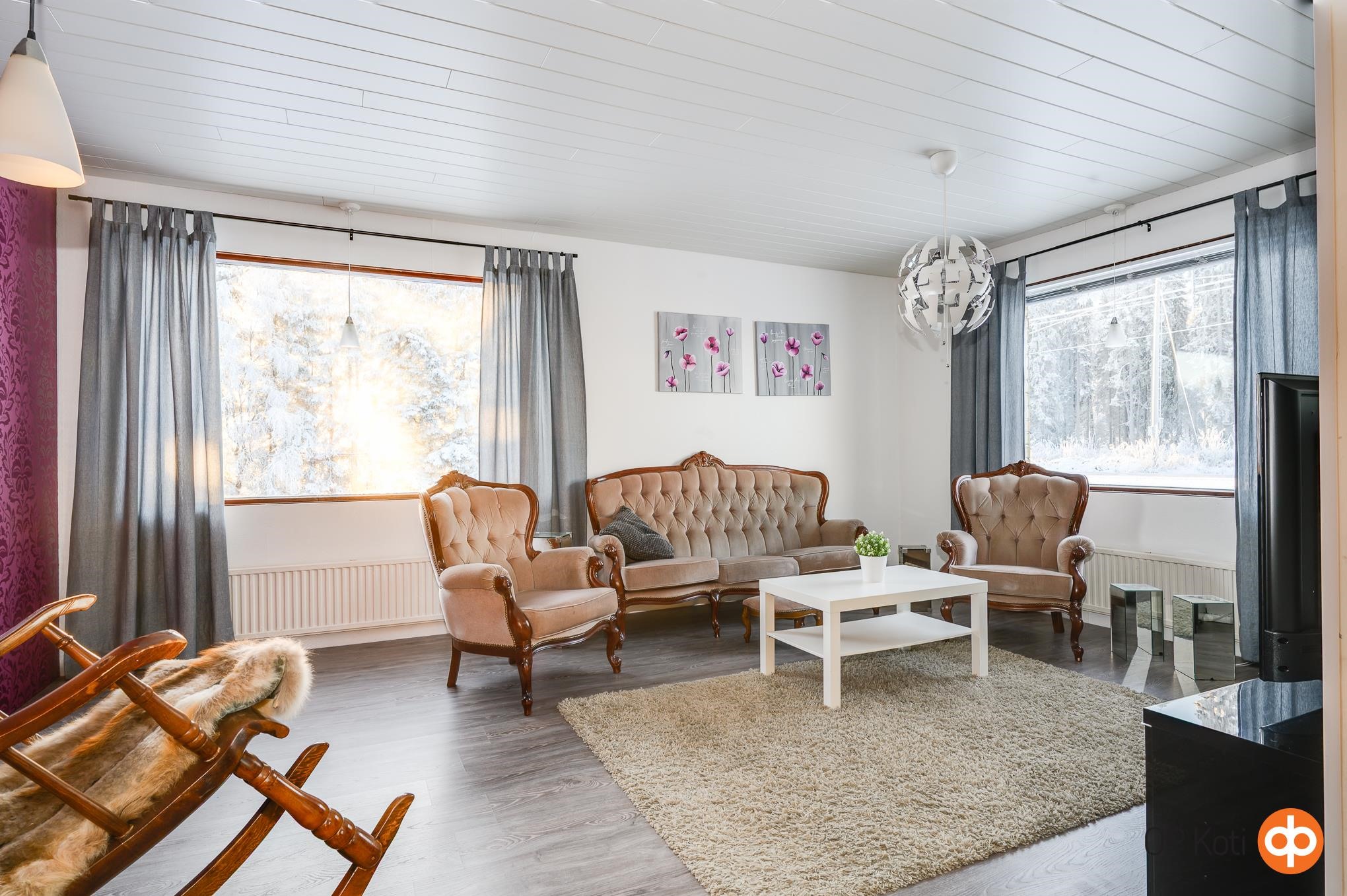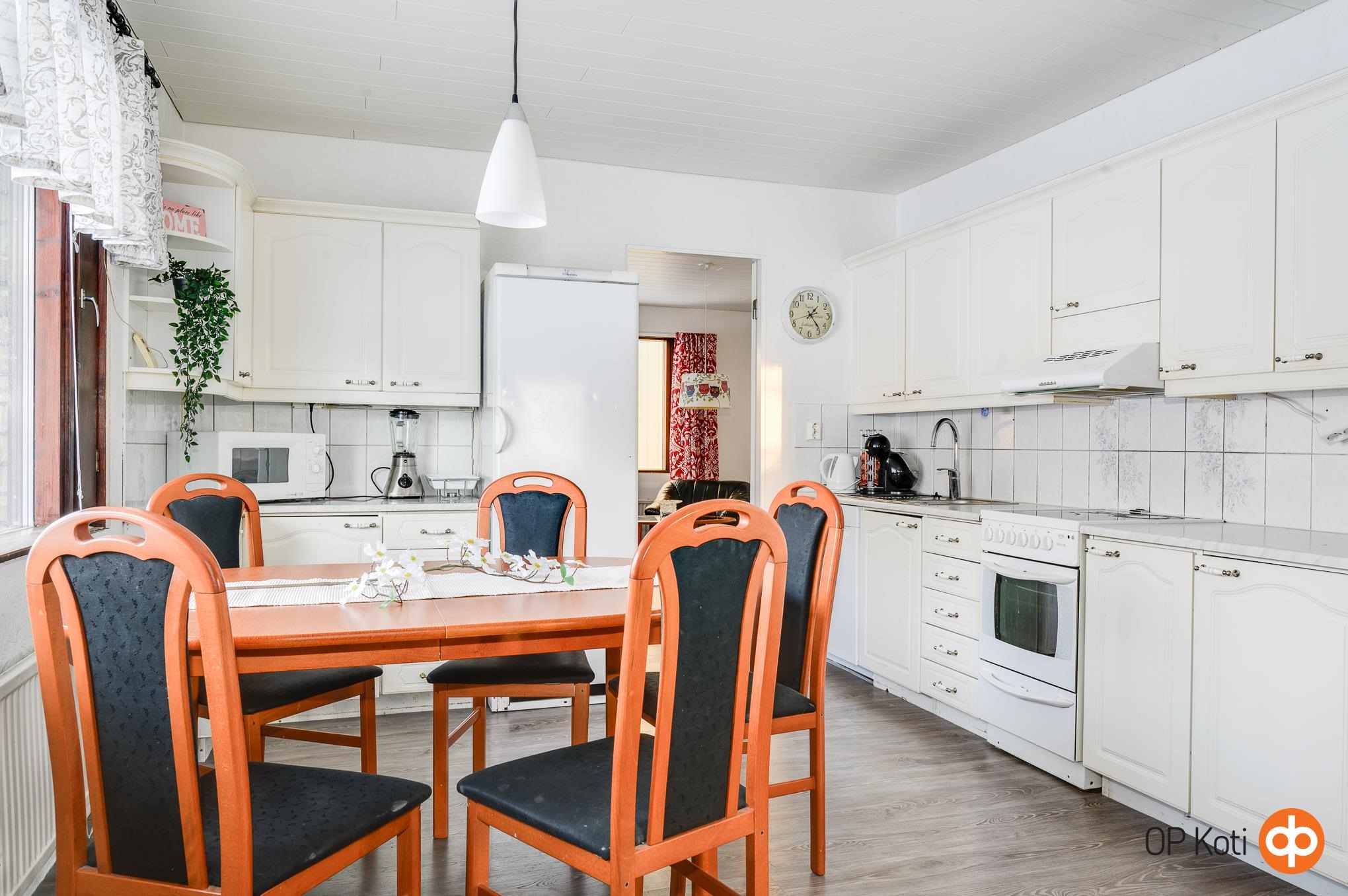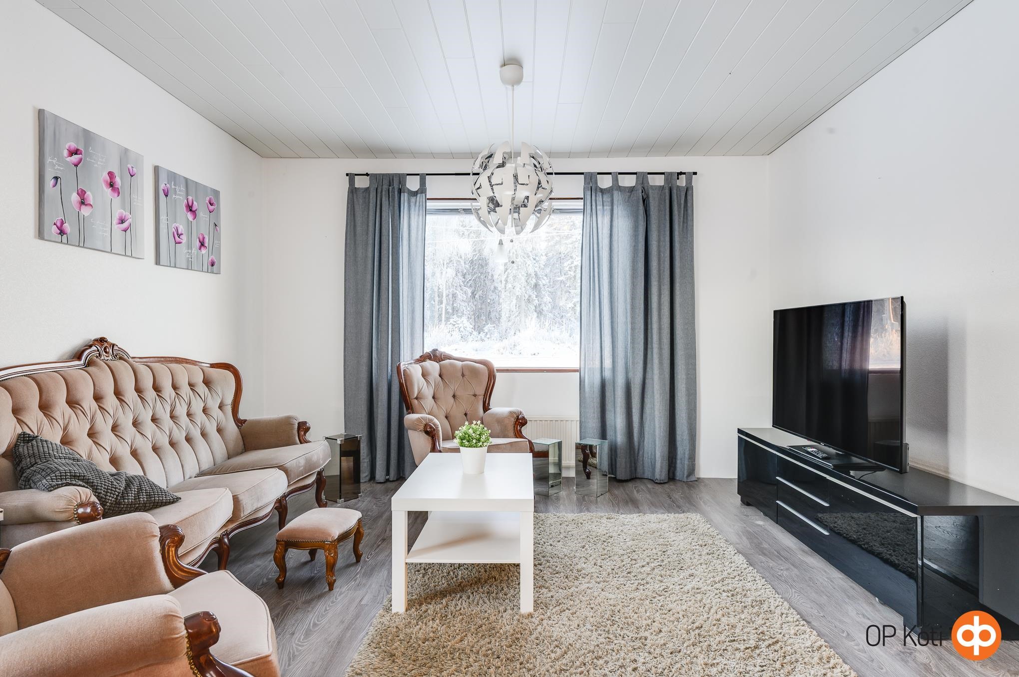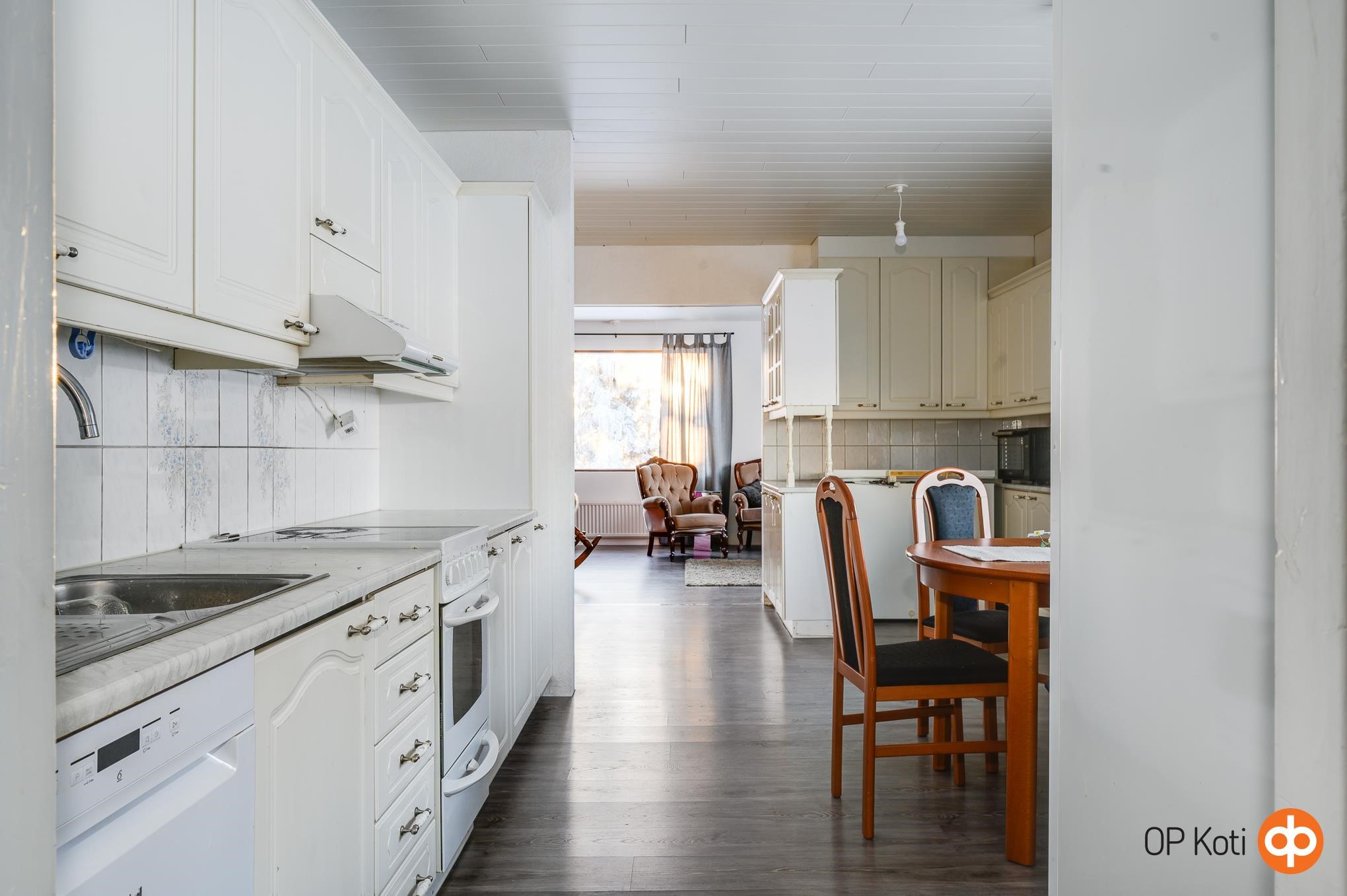 Asunto käsittää 109 neliömetriä, ja siinä on kolme huonetta, keittiö, takkahuone, pesuhuone, sauna, vaatehuone ja wc. Säilytystilaa löytyy vaatehuoneesta ja irrallisista vaatekaapeista, jotka kuuluvat kauppaan. Pesutiloissa on pyykinpesukone ja kuivausteline, jotka tekevät arjesta sujuvaa.