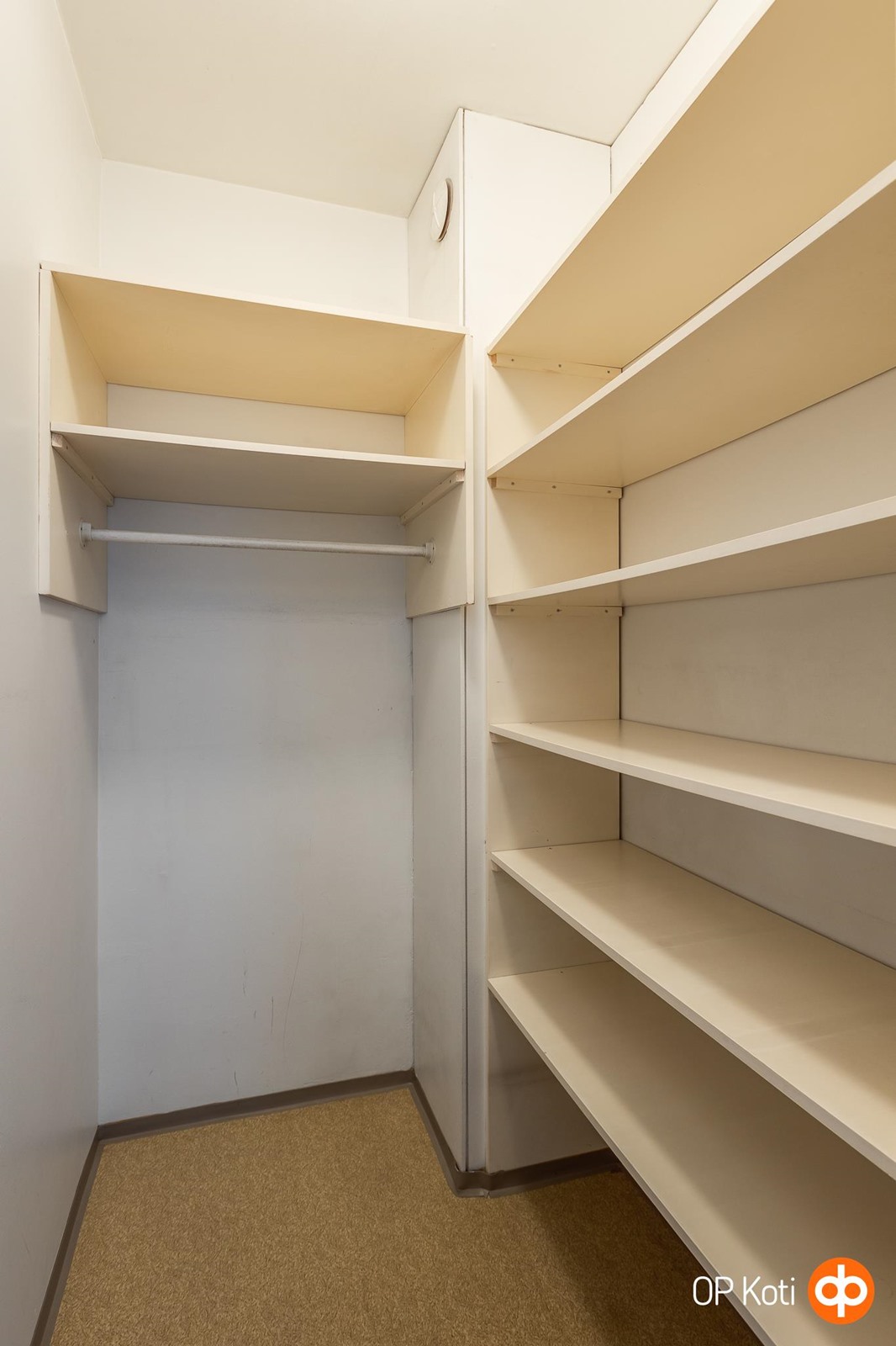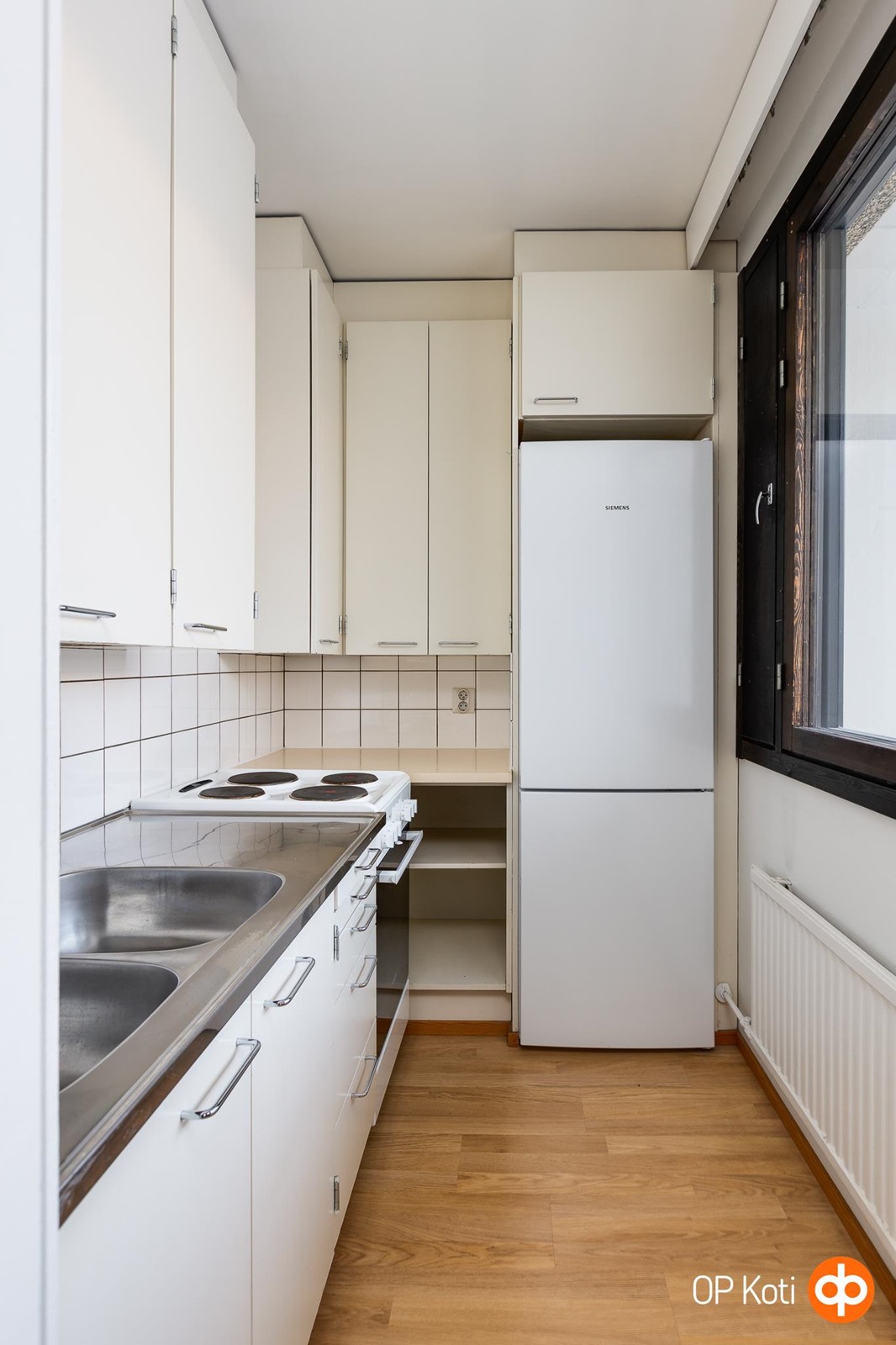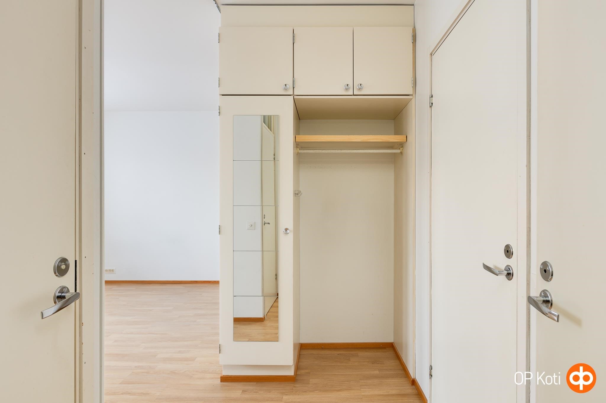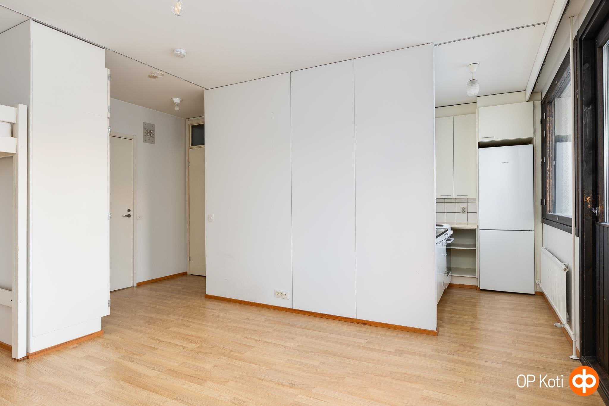 Tämä toimivapohjainen yksiö on löytö niin omaan asumiseen kuin sijoituskohteeksi. Erinomainen sijainti, reilut säilytystilat ja vapautuminen heti kaupanteossa houkuttelevat tutustumaan tarkemmin. Makuualkovissa on valmiina tilaa säästävä parvisänky, joka on halutessa helppo myös poistaa. Käytännöllinen vaatehuone kätkee sisäänsä ison määrän tavaraa, minkä lisäksi eteisessä on säilytyskomero. Länteen suuntautuva parveke tuo mukavan lisän.