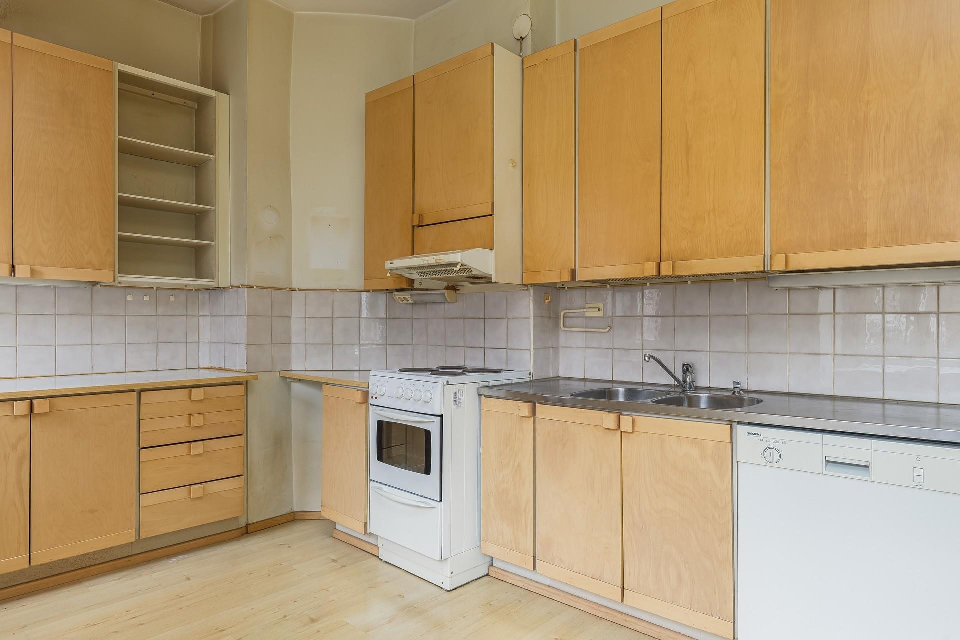 - Jääkaappipakastin, pakastekaappi, sähköliesi, liesituuletin, astianpesukone, kaapistot.
