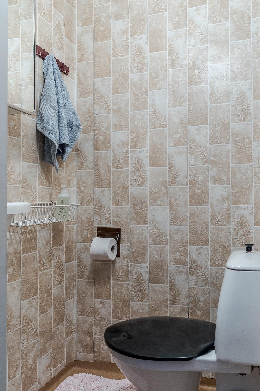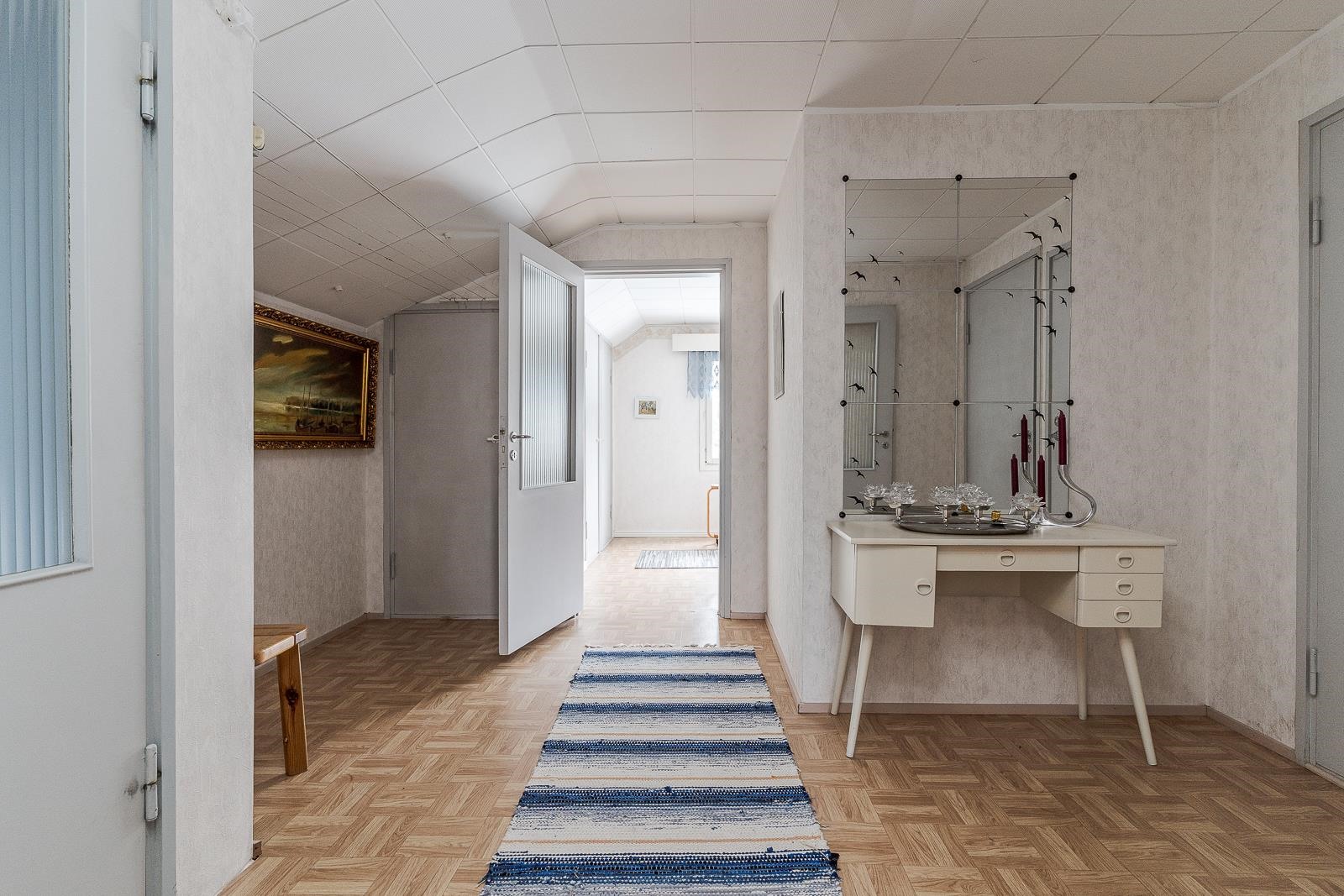 - Keittiö: Lattia laminaatti, seinät tapetti. Olohuone: lattia parketti, seinät tapetti. Makuuhuone 1: makuuhuoneita yht 3 kpl, lattiat laminaatti tai muovimatto, seinät tapetti. Kodinhoitohuone: lattia laatta, seinät maalattu. Sauna: lattia laatta, seinät puu. Kylpyhuone: lattia laatta, seinät kaakeli. Eteinen: lattia laminaatti, seinät tapetti. Wc: yläkerta: lattia muovimatto, seinät muovimatto. Wc: asuinkerros: lattia laatta, seinät kaakeli. Wc: alakerta: lattia muovimatto, seinät betoni/paneli.
