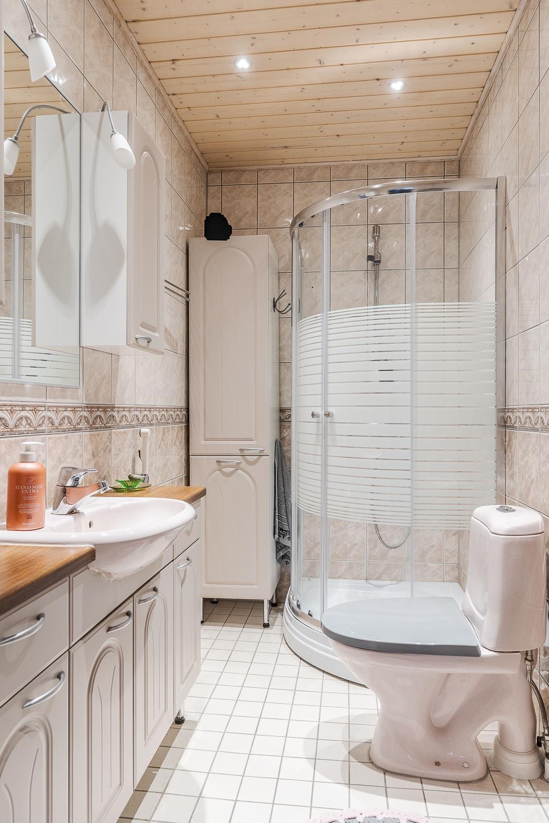 - Sauna, sähkökiuas, kylpyhuone, erillinen wc 3 kpl, suihku, suihkukaappi, peilikaappi, kaapit, pesukoneliitäntä pesuallas kodinhoitohuoneessa, lattialämmitys, kiinteät valaisimet.