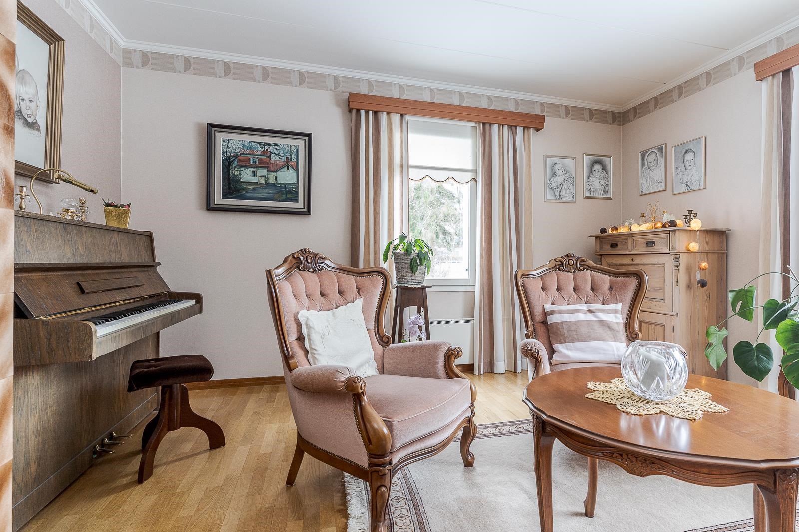 - 5h, k, takka- ja harrastehuone, sauna, 2x kph, 3x wc, khh, lasikuisti
