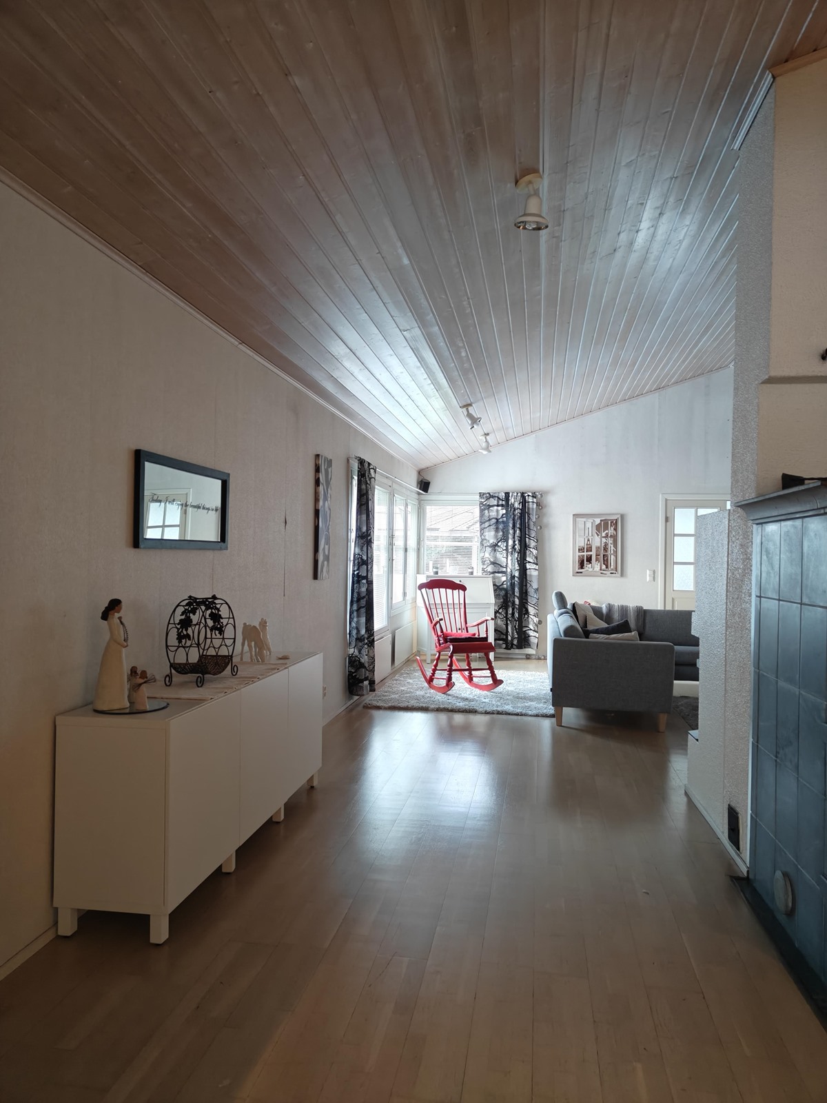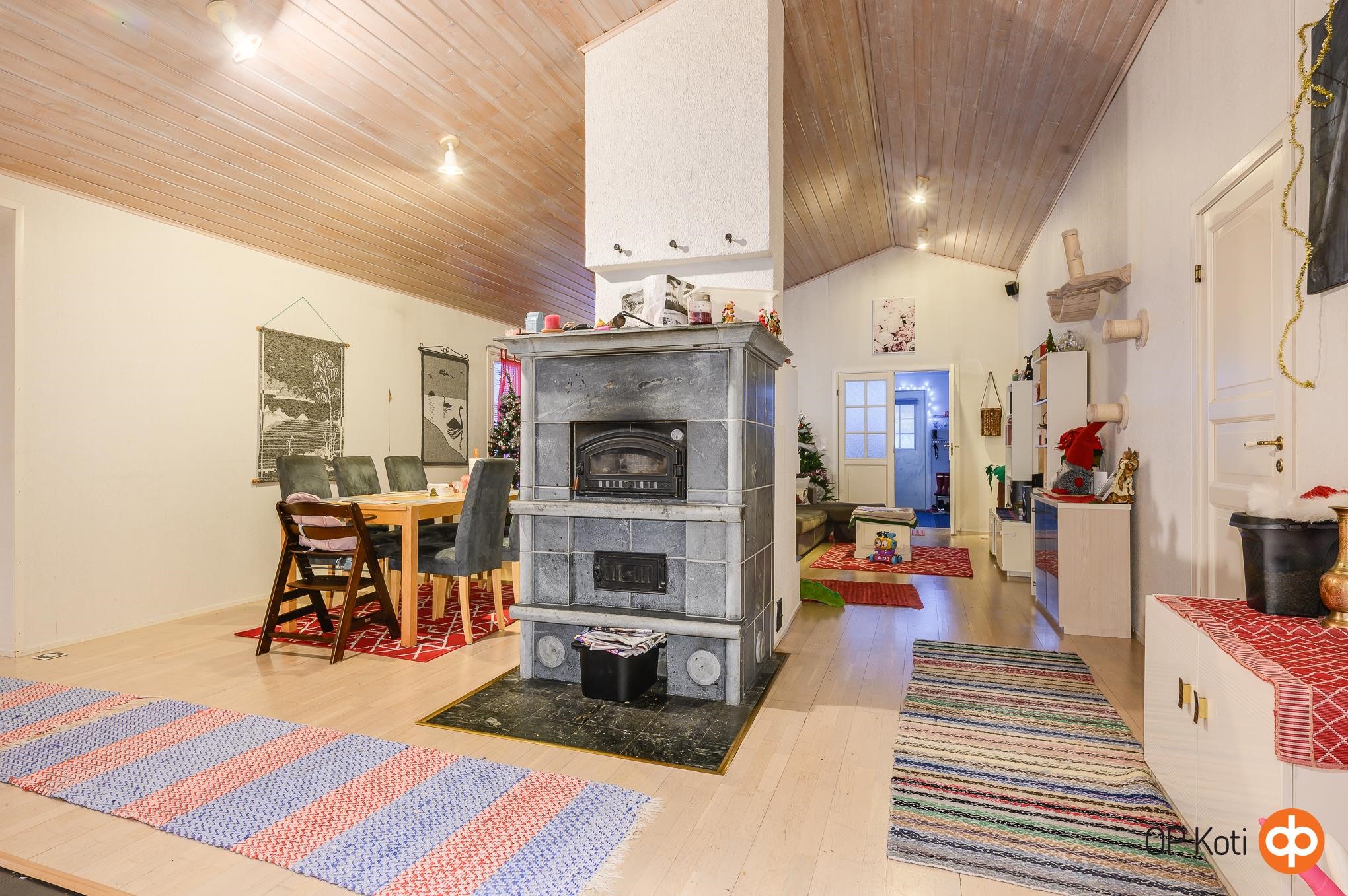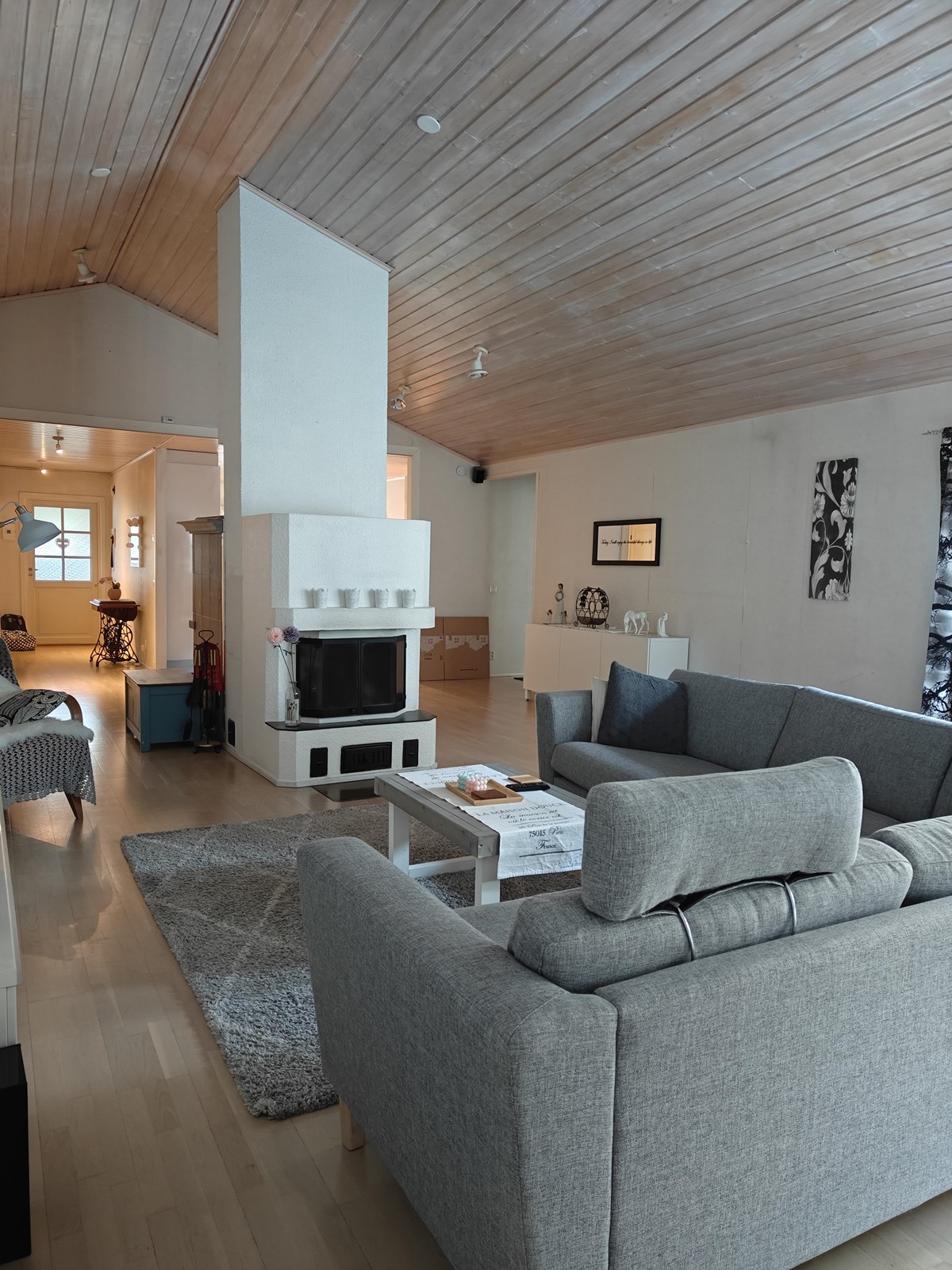Tämä tilava omakotitalo tarjoaa monipuoliset mahdollisuudet suurelle perheelle. Käytännöllinen pohjaratkaisu kattaa olohuoneen, keittiön, kolmen makuuhuoneen joista kaksi mahdollista jakaa kahdeksi huoneeksi, kuistilla sijaitsevan työhuoneen sekä kodinhoitotilat, jotka tekevät arjesta sujuvaa. Leivinuuni ja varaava takka tuovat kodikkuutta ja lämpöä viileisiin talvi-iltoihin, kun taas kesäisin markiisin suojassa voi nauttia ulkona olemisesta.