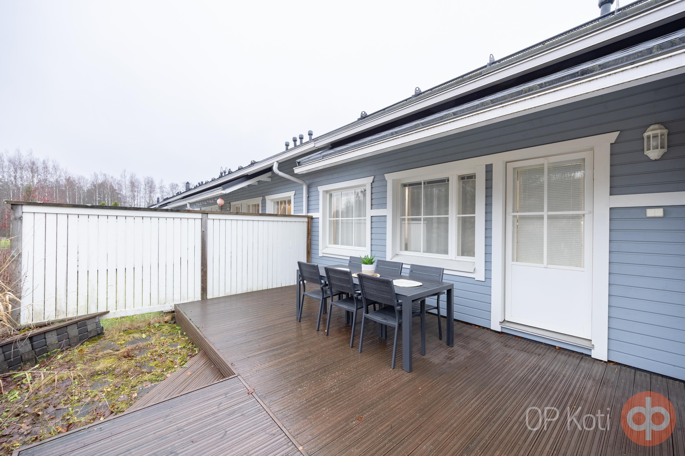 Takapihan iso terassi on täydellinen paikka nauttia kesäpäivistä ja viettää aikaa ystävien ja perheen kanssa. Tämä koti tarjoaa rauhallista asumista luonnon läheisyydessä, mutta silti kaikki palvelut ovat käden ulottuvilla.