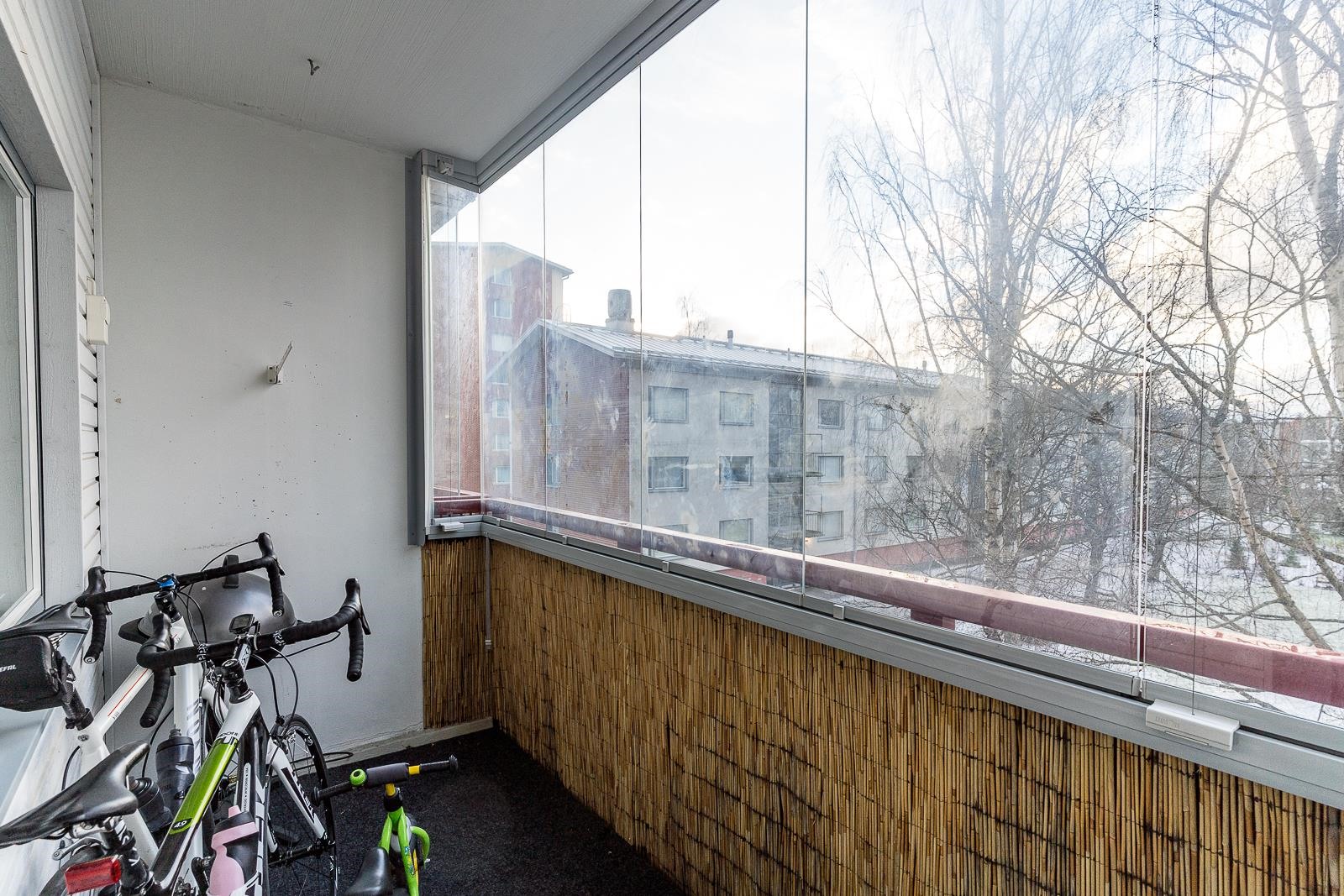 - Läpitalon huoneisto, parveke lounaaseen