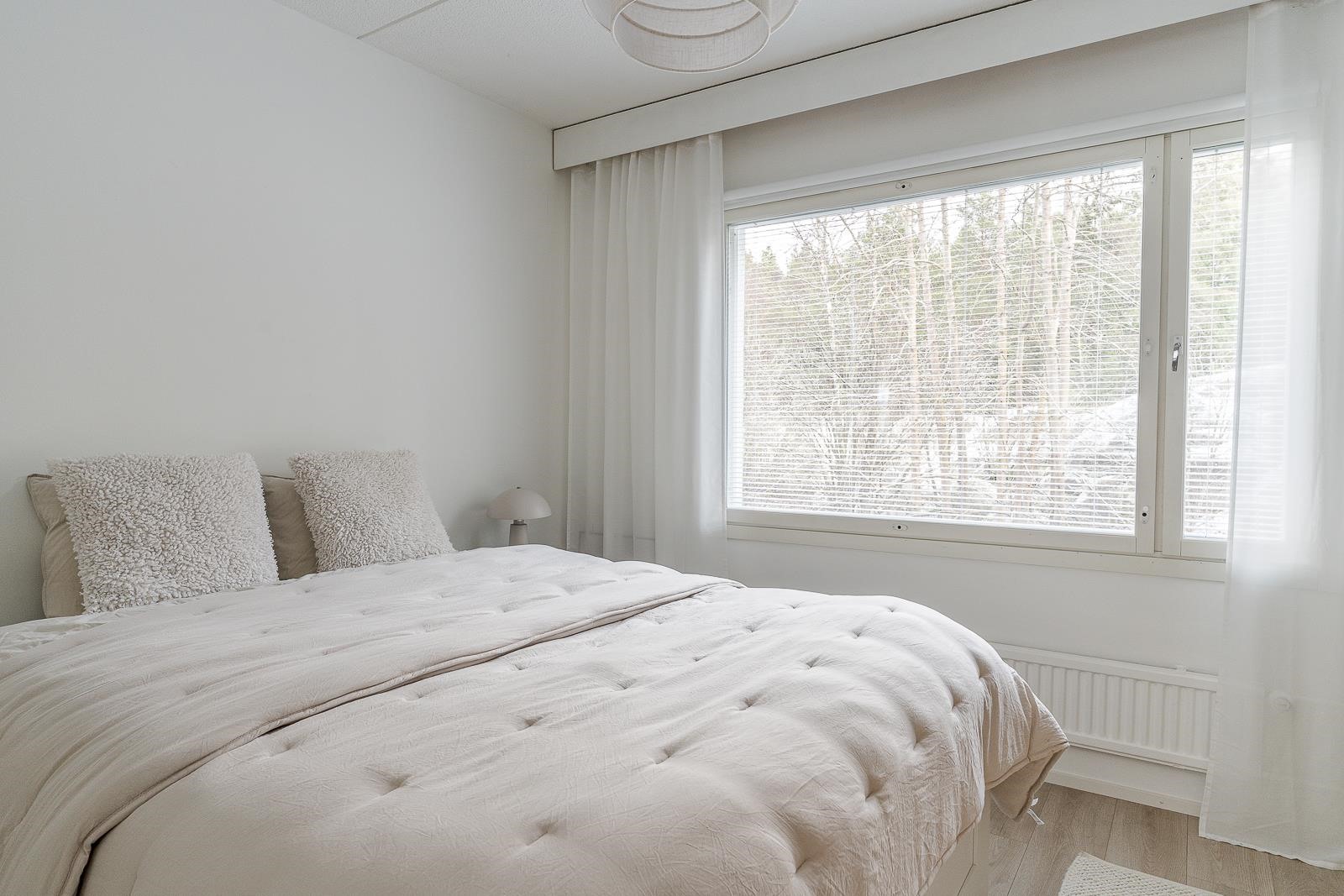 Valoisa olohuone jatkuu lasitetulle parvekkeelle, josta avautuu näkymä puiden suojassa. Täydellinen paikka kevään tullessa aamukahville tai talvipäivänä lämpimään vilttiin kääriytyen kuuman kaakaon äärelle. Makuuhuoneista avautuu näkymä kallioiseen metsikköön, joka tuo luonnon lähelle ja luo levollisen tunnelman jokaiseen päivään.