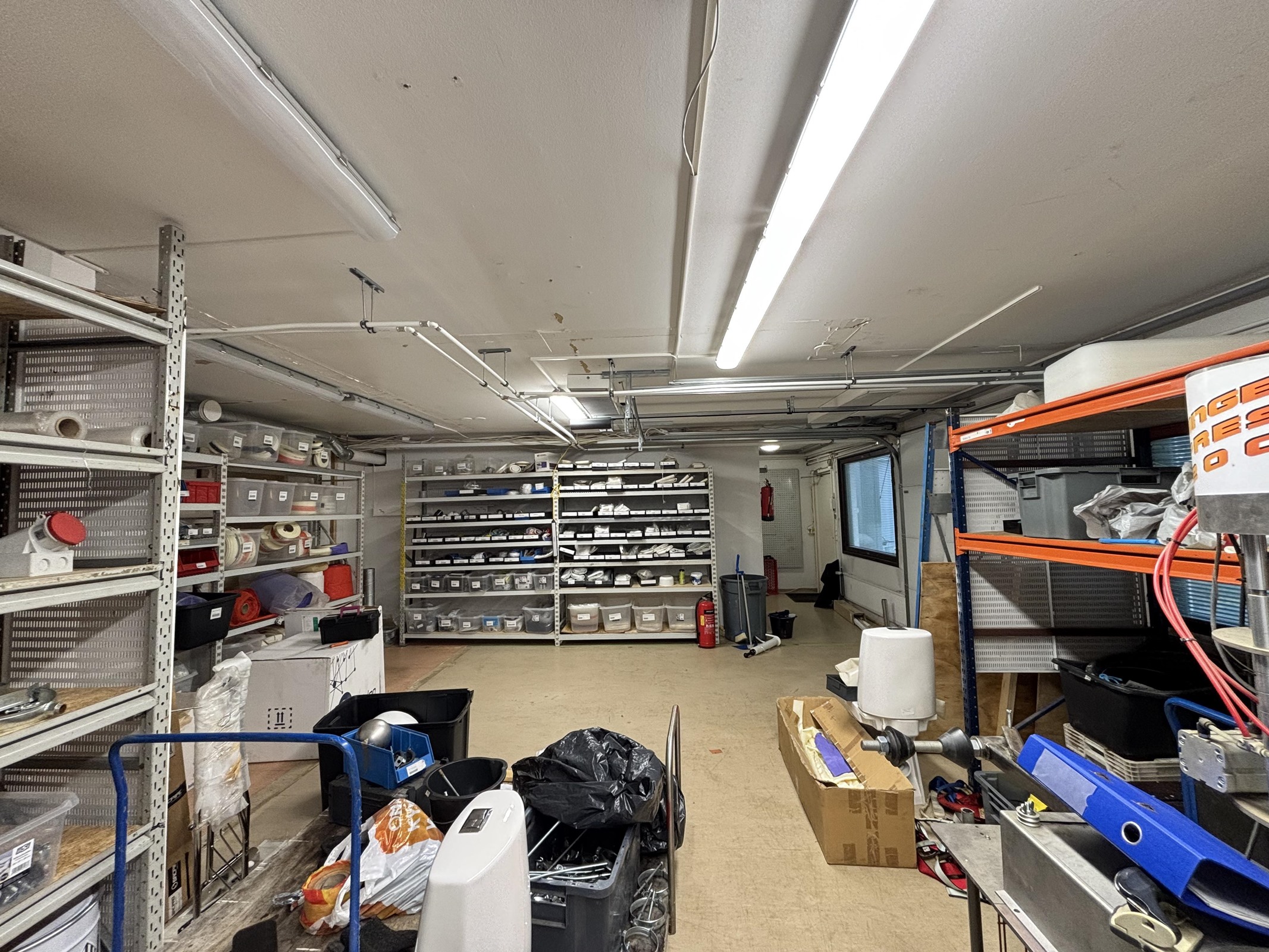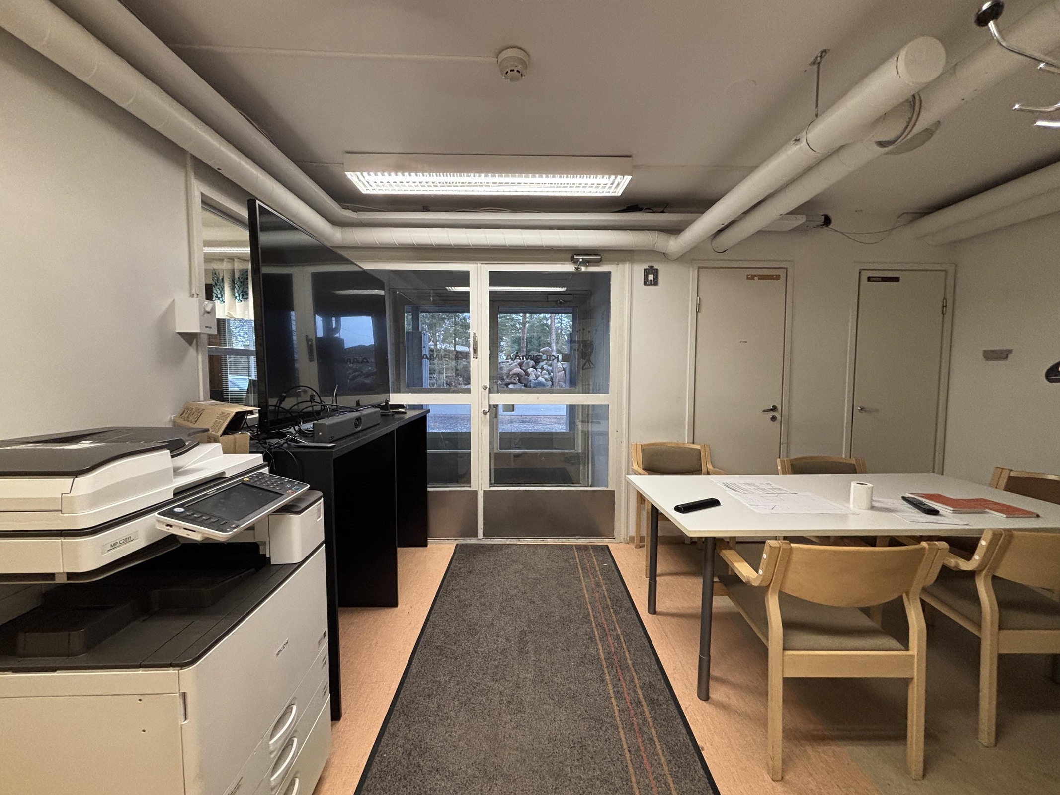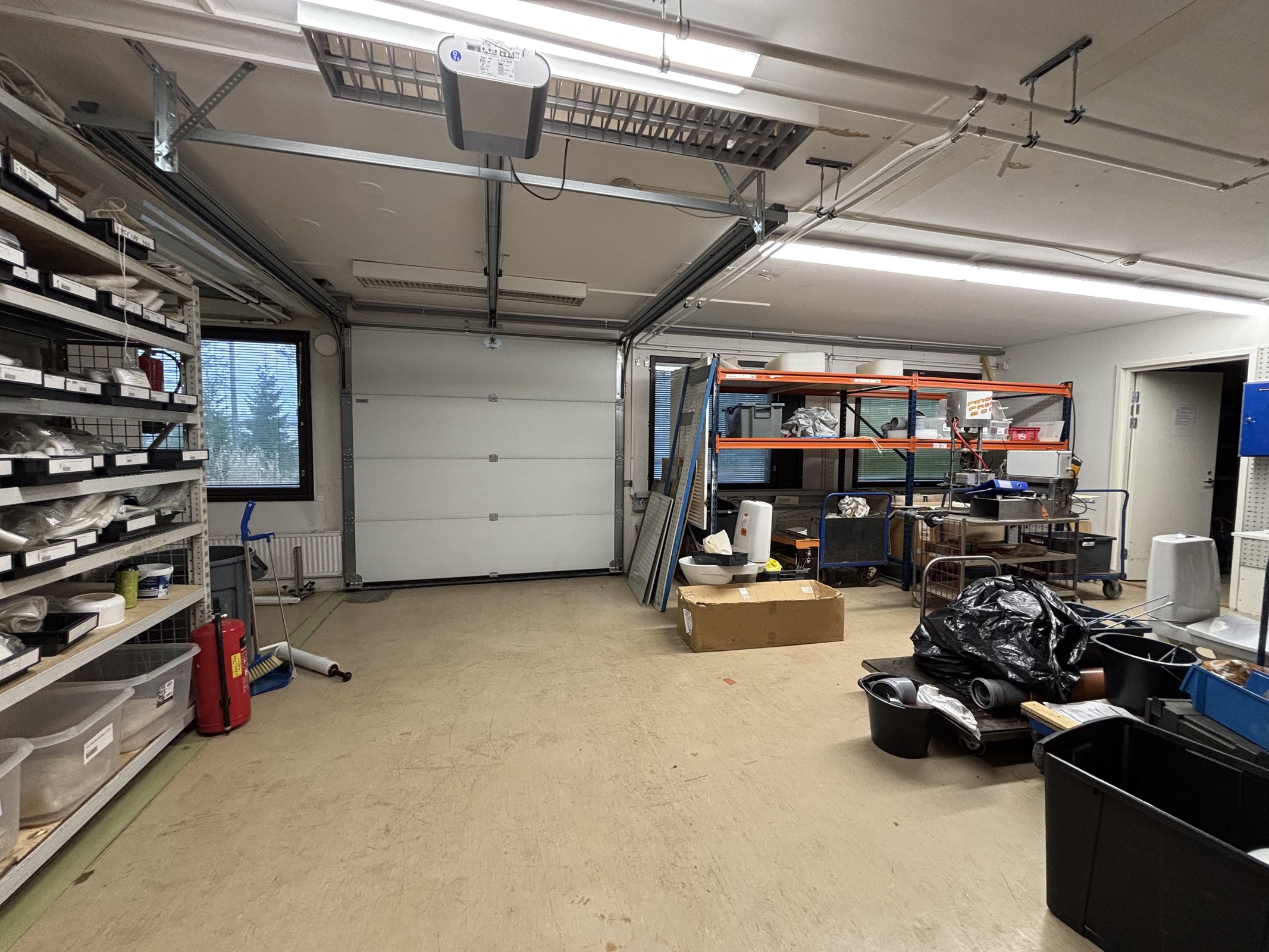 Toimistossa on 3 toimistohuonetta, 2 pukuhuonetta, taukotilat / keittiötila, 3 wc:tä. Osa toimistotiloista on muutettu varastoksi ja sinne on lisätty nosto-ovi. Kaksi hallitilaa, joihin taitto-ovet.