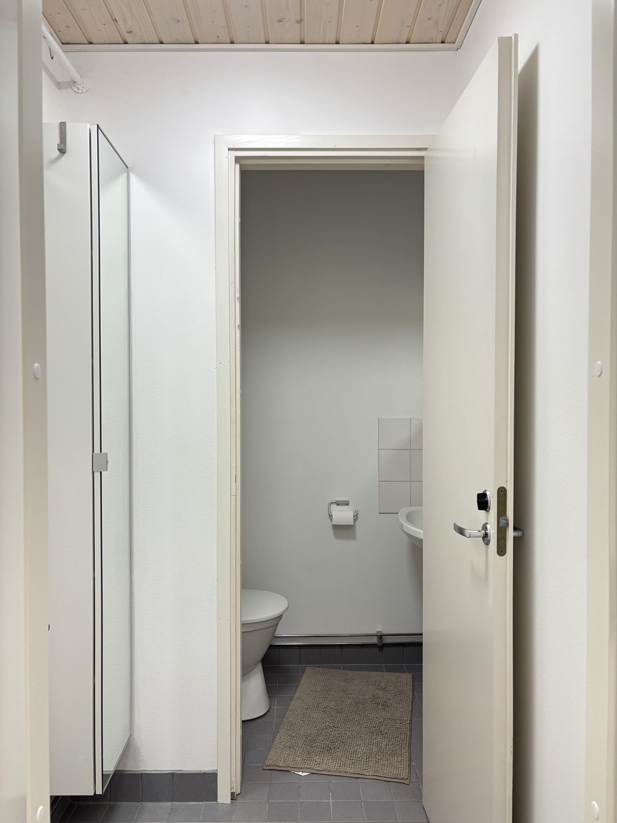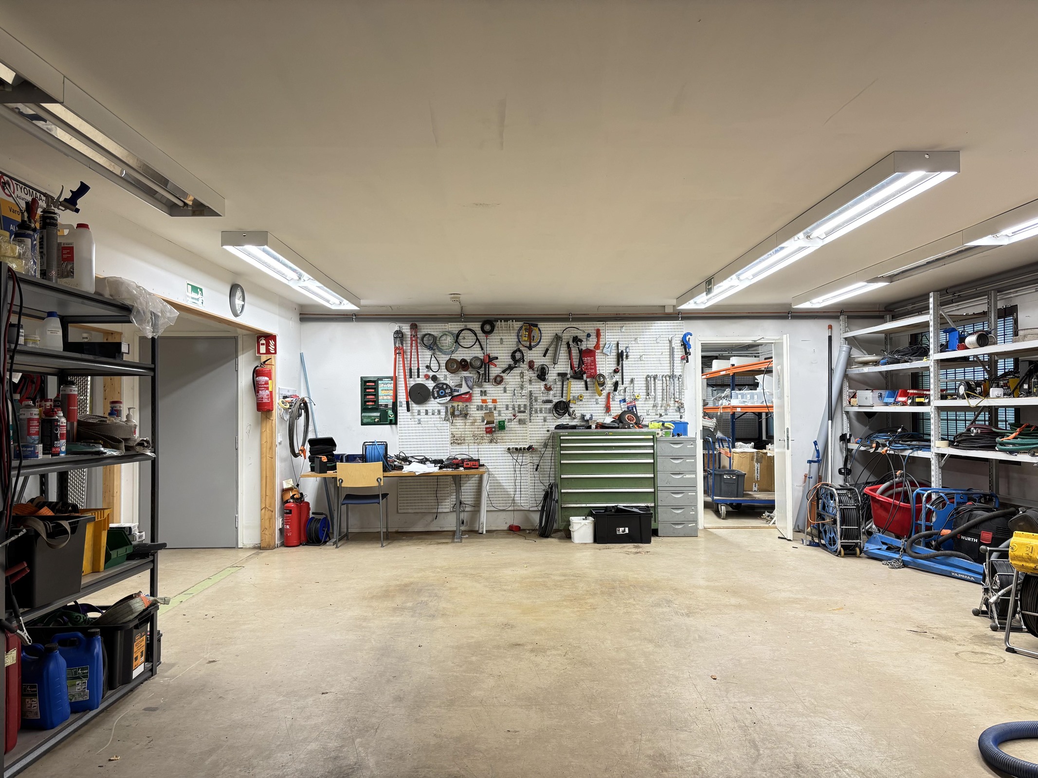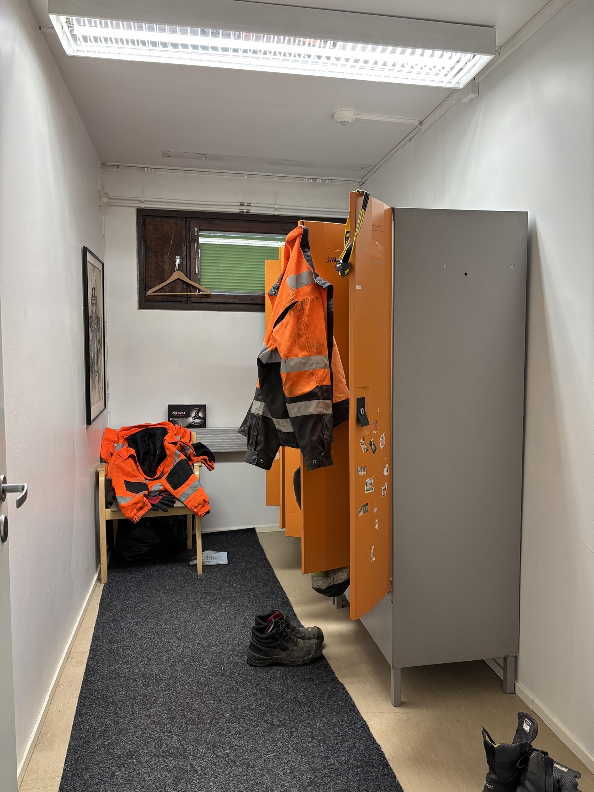 Toimistossa on 3 toimistohuonetta, 2 pukuhuonetta, taukotilat / keittiötila, 3 wc:tä. Osa toimistotiloista on muutettu varastoksi ja sinne on lisätty nosto-ovi. Kaksi hallitilaa, joihin taitto-ovet.