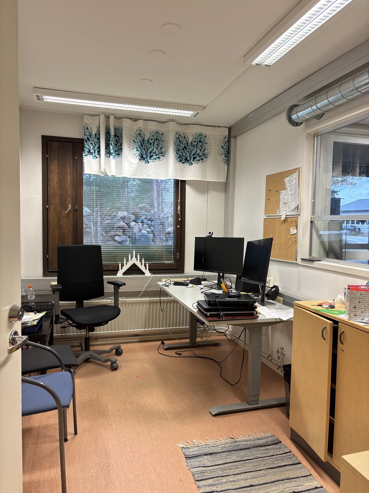 Myydään Keminmaasta, Käpyläntie 1A osoitteesta 3068m2 tontti, sekä sillä sijaitsevat rakennukset. Päärakennus koostuu asunnosta (3h+k + s) = 78,5m2, sekä toimisto- ja hallitiloista 254m2. Lisäksi piha-alueella on myös kylmä varastorakennus. Päärakennuksen tilojen sisäkorkeus on n. 2,45 m.