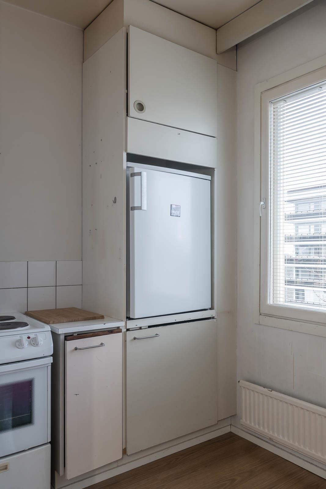 - Jääkaappi, lattialiesi, sähköliesi, kaapistot, kiinteät valaisimet.