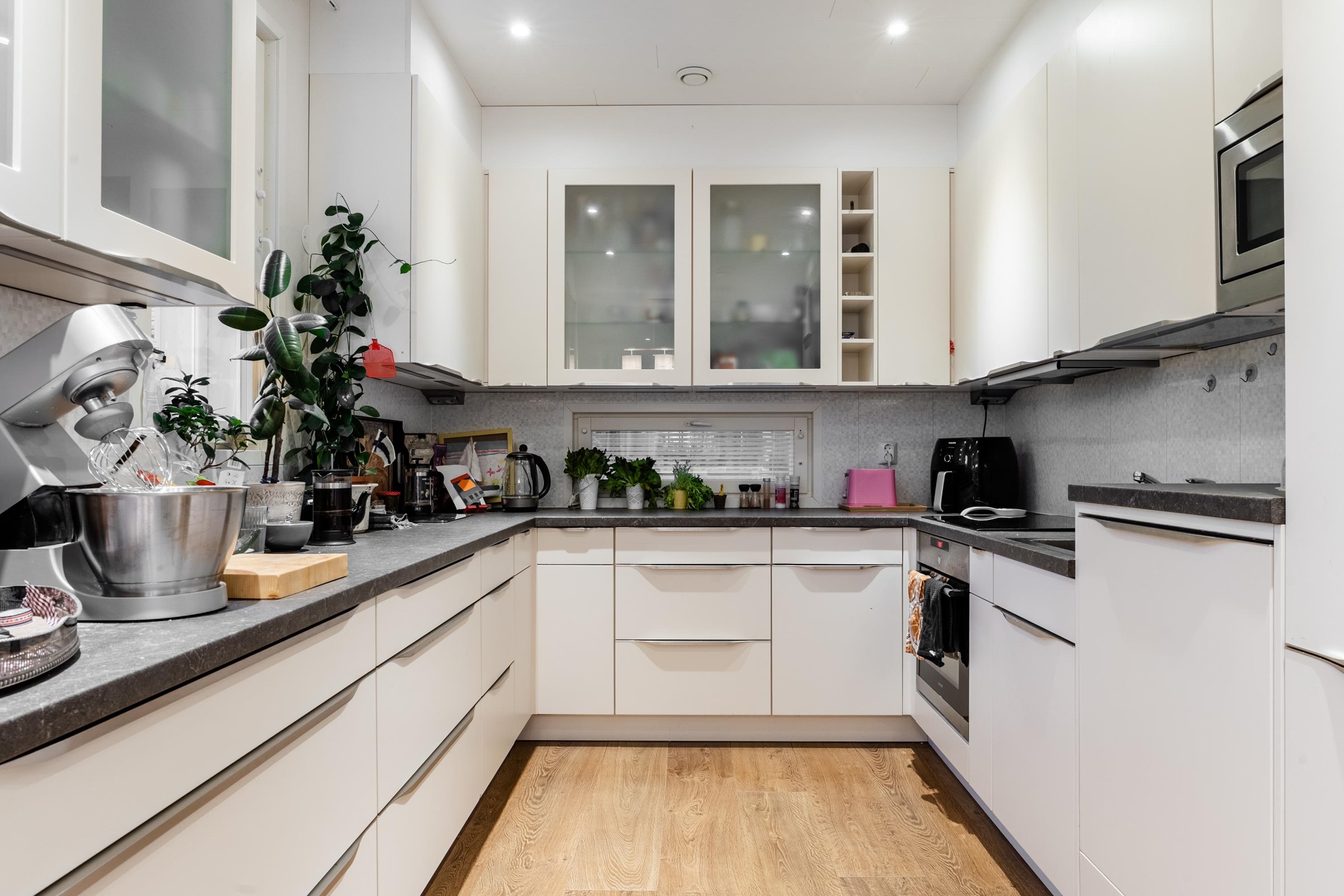 - Jääkaappipakastin, erillisuuni, induktioliesi, liesituuletin, astianpesukone, kaapistot, kiinteät valaisimet.