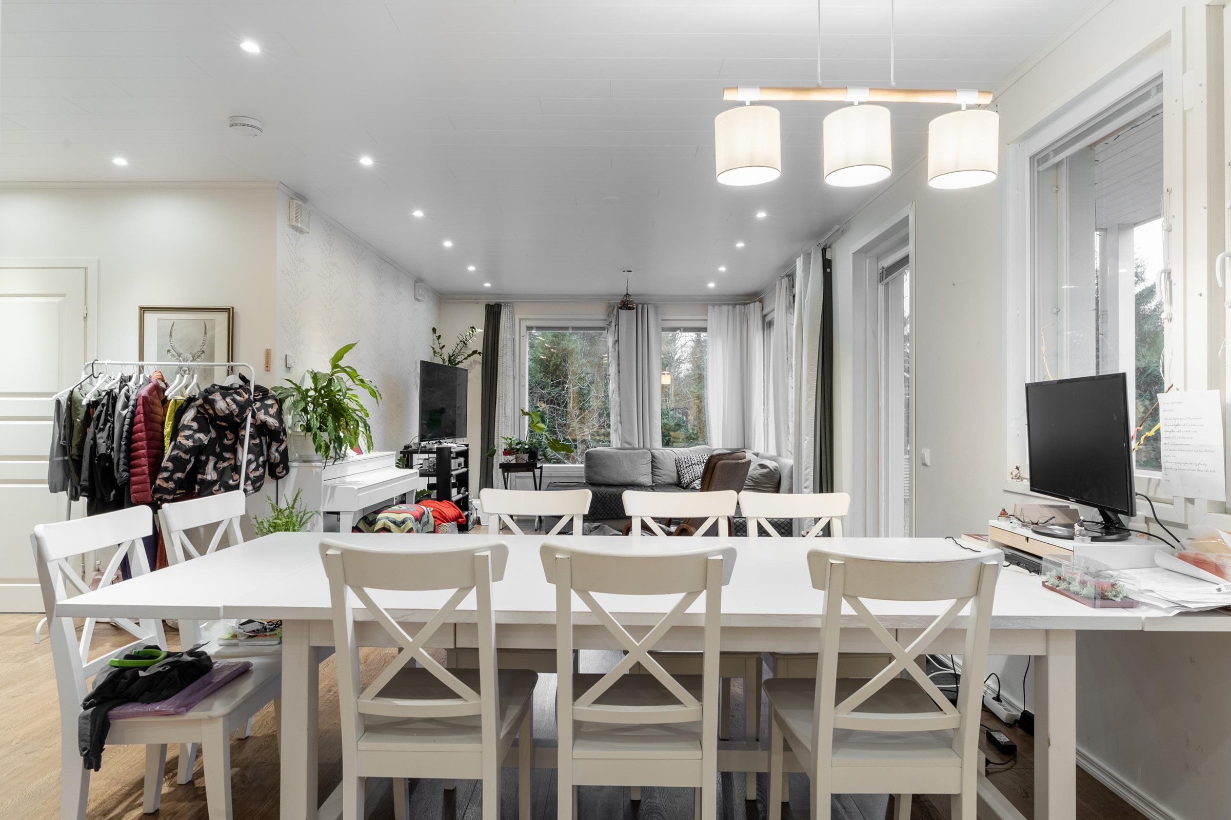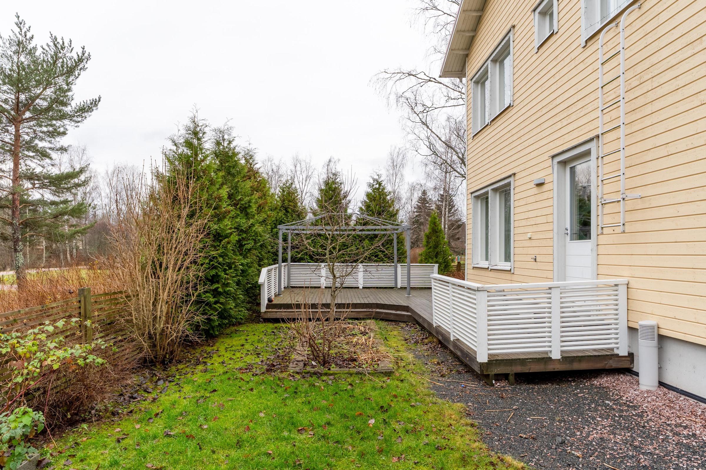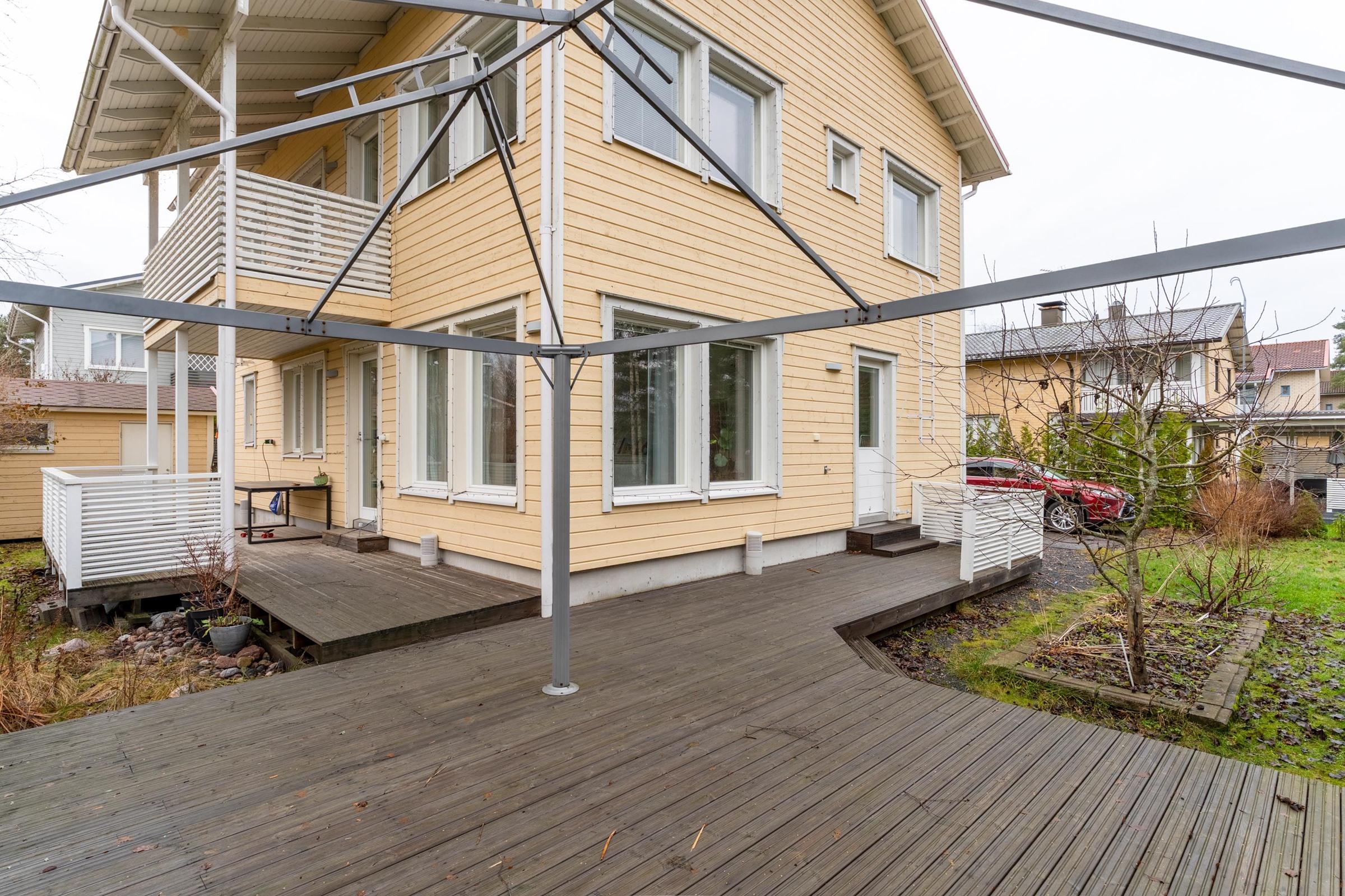 Tasokas perhekoti vapautumassa Espoon Latokaskesta. Tässä vuonna 2015 valmistuneessa talossa on paljon tilaa kahdessa kerroksessa. Asuintilojen pinta-ala on 166m2, kokonaisala on 194m2. Yläkerrassa on 4 makuuhuonetta, erillinen wc suihkulla, oleskelutila joka toimii niin toisena olohuoneena kuin työpisteenä. Yläkerrassa myös parveke puistonäkymillä sekä tilava vaatehuone. Alakerrasta löytyy viides makuuhuone, kodinhoitohuone, kylpyhuone ja sauna sekä erillinen wc. Alakerrasta löytyy myös kodin sydän, olohuoneen ja keittiön yhdistelmä. Tilaan mahtuu isompikin ruokapöytä. Olohuoneesta on käynti suurelle terassille. Talon pihalle mahtuu useampikin auto ja sieltä löytyy erillinen varastorakennus. Piha-alue on rauhallinen ja helppohoitoinen.