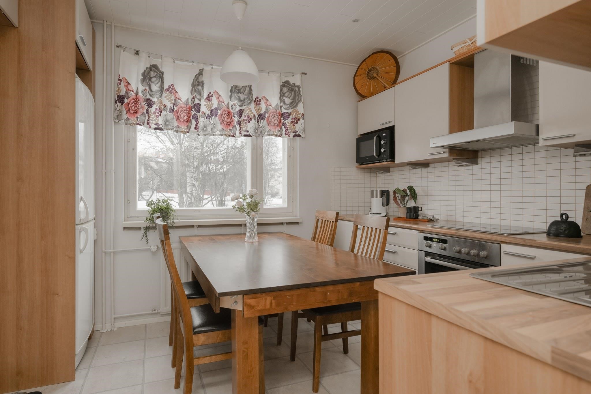 - Jääkaappi, pakastekaappi, erillisuuni, keraaminen liesi, liesikupu, astianpesukone, kaapistot, kiinteät valaisimet. Keittiö remontoitu vuonna 2007 ja kaikki kodinkoneet on uusittu silloin.