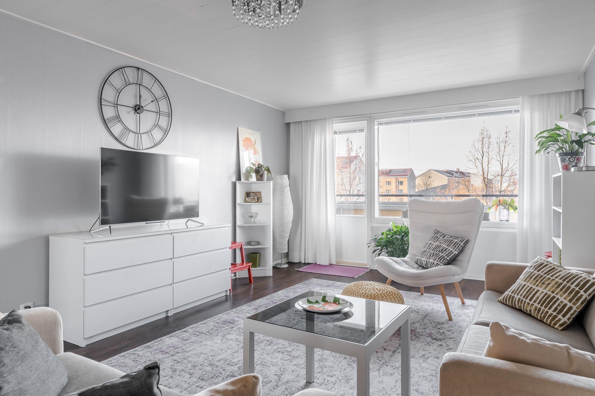 Asunnon 62 neliöitä tarjoaa runsaasti tilaa ja toimivan pohjaratkaisun. Valoisassa kaksiossa on avara olohuone, johon lasitetulta parvekkeelta tulvivat ilta-auringon säteet. Parvekkeelta ihastelet upeita puistoisia näkymiä yli puiden latvojen. Kylpyhuone on remontoitu tyylillä vain viisi vuotta takaperin. Koti on viihtyisä ja halutessa heti muuttovalmis. Koti on täydellinen valinta sinulle, joka arvostat sekä rauhallista ympäristöä että kaupungin läheisyyttä ja hyviä liikenneyhteyksiä.