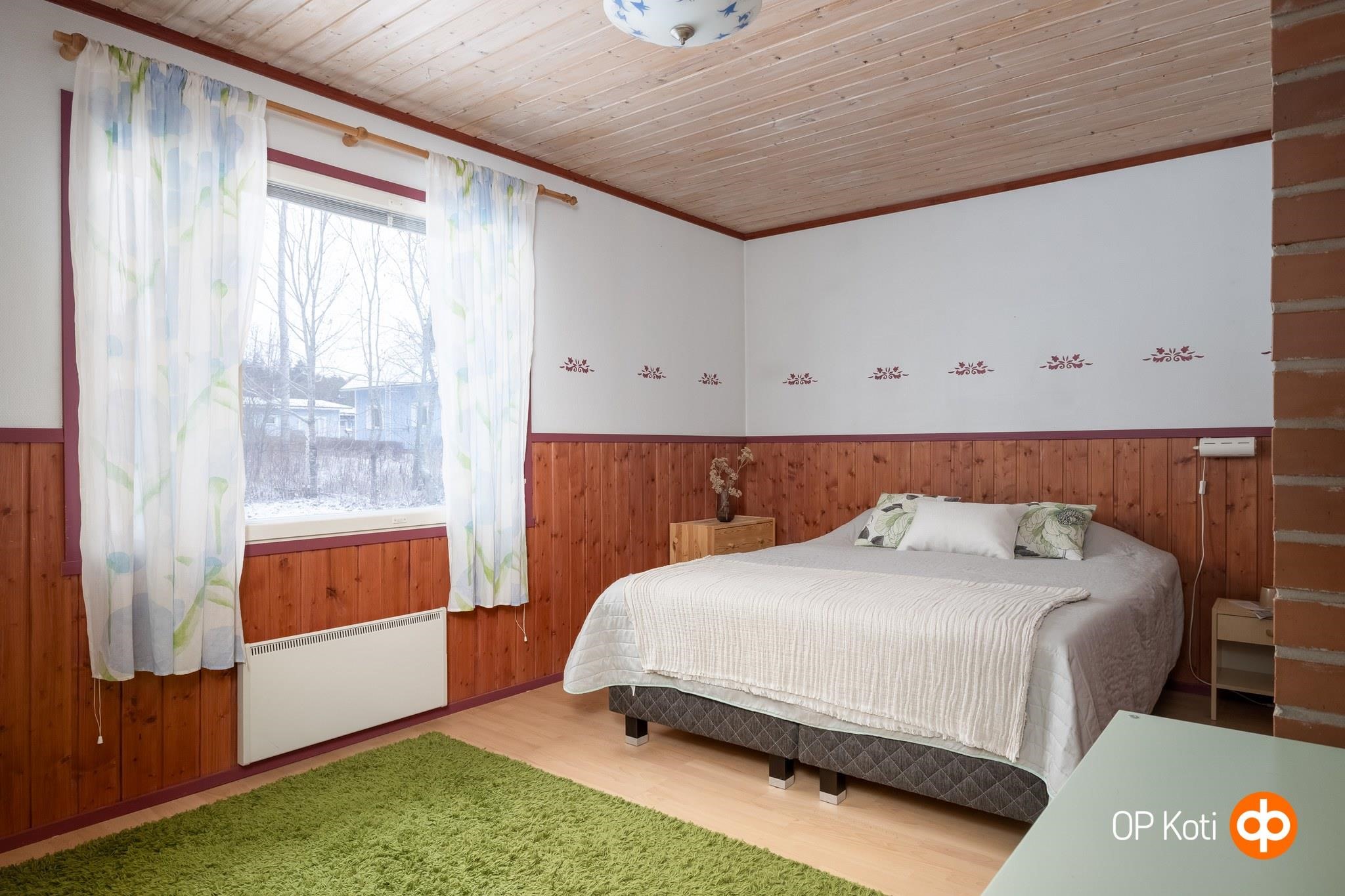 Keittiö: Laminaattilattia, tapetti / puolipaneeli, paneloitu katto. Olohuone: Laminaattilattia, tapetti / puolipaneeli, paneloitu katto. Makuuhuone 1: Laminaattilattia, tapetti / puolipaneeli, paneloitu katto. Makuuhuone 2: Laminaattilattia, tapetti / puolipaneeli, paneloitu katto. Sauna: laattalattia, paneloidut seinät ja katto. Kylpyhuone: laattalattia ja seinät, paneloitu katto. Wc: laattalattia, tapetoidut seinät, paneelikatto.