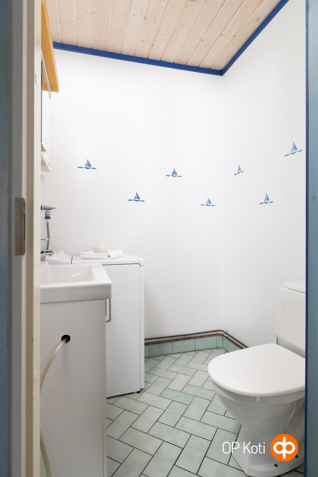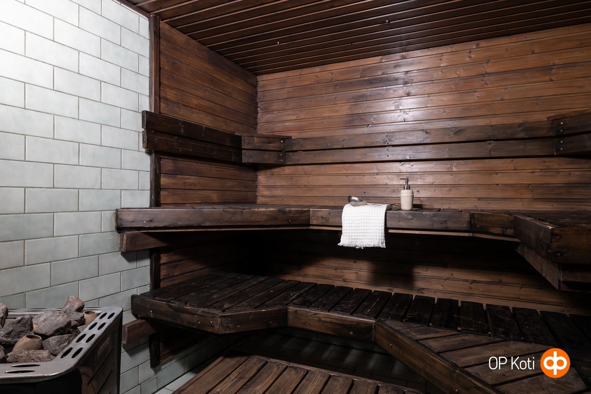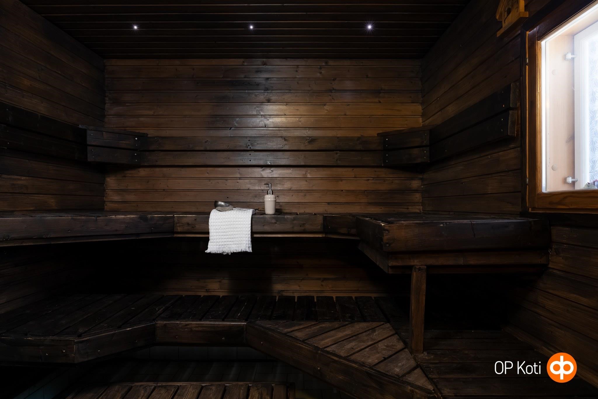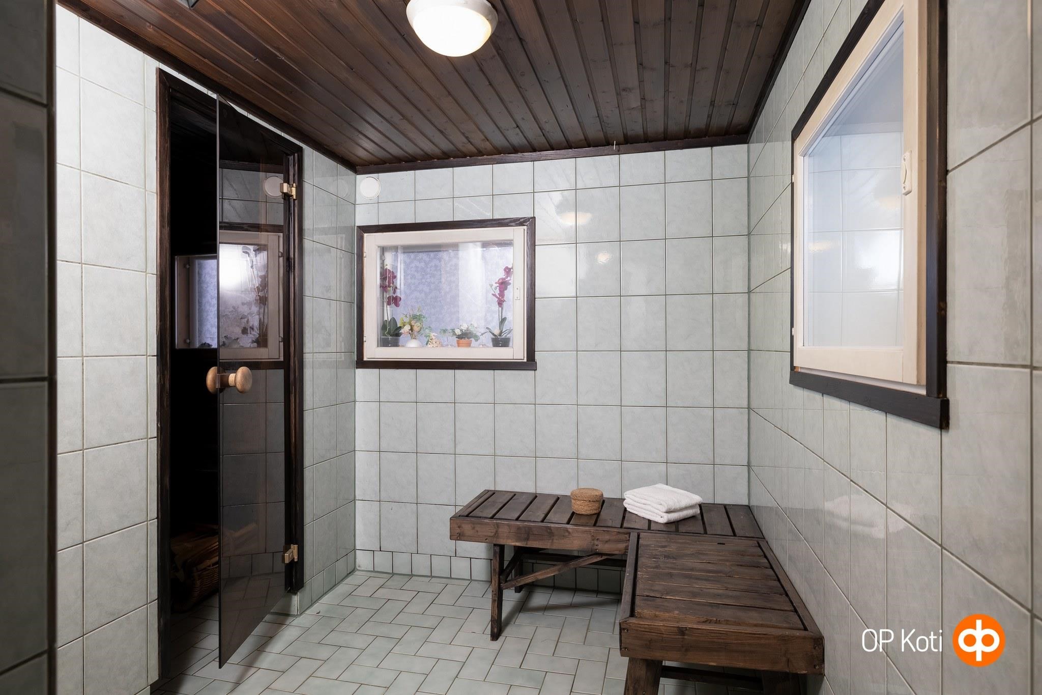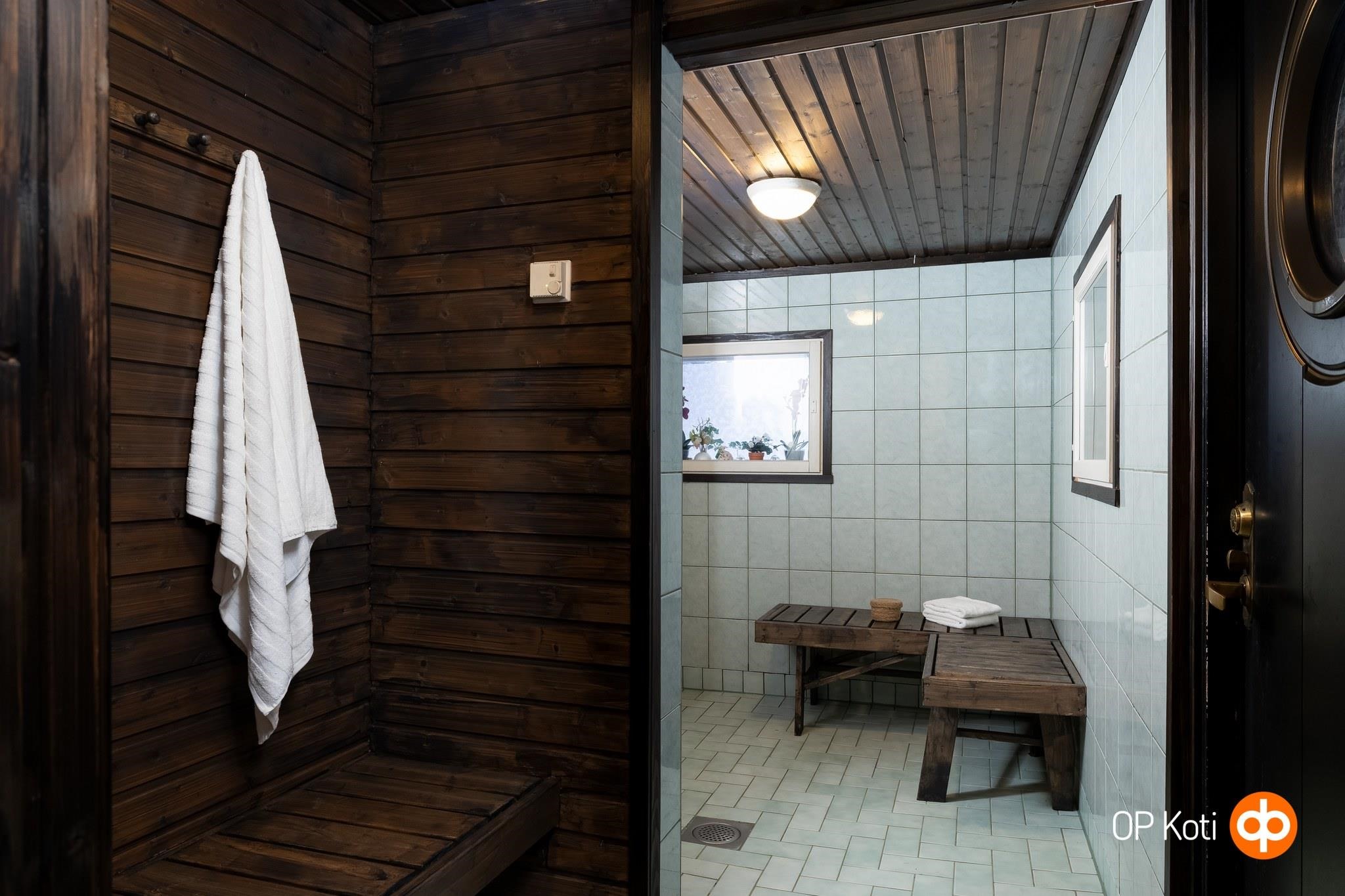 - Sauna, puukiuas, kylpyhuone, erillinen wc, suihku, peilit, peilikaappi, allaskaappi, pesukoneliitäntä, lattialämmitys sauna, pesuhuone ja pukuhuone, kiinteät valaisimet.
