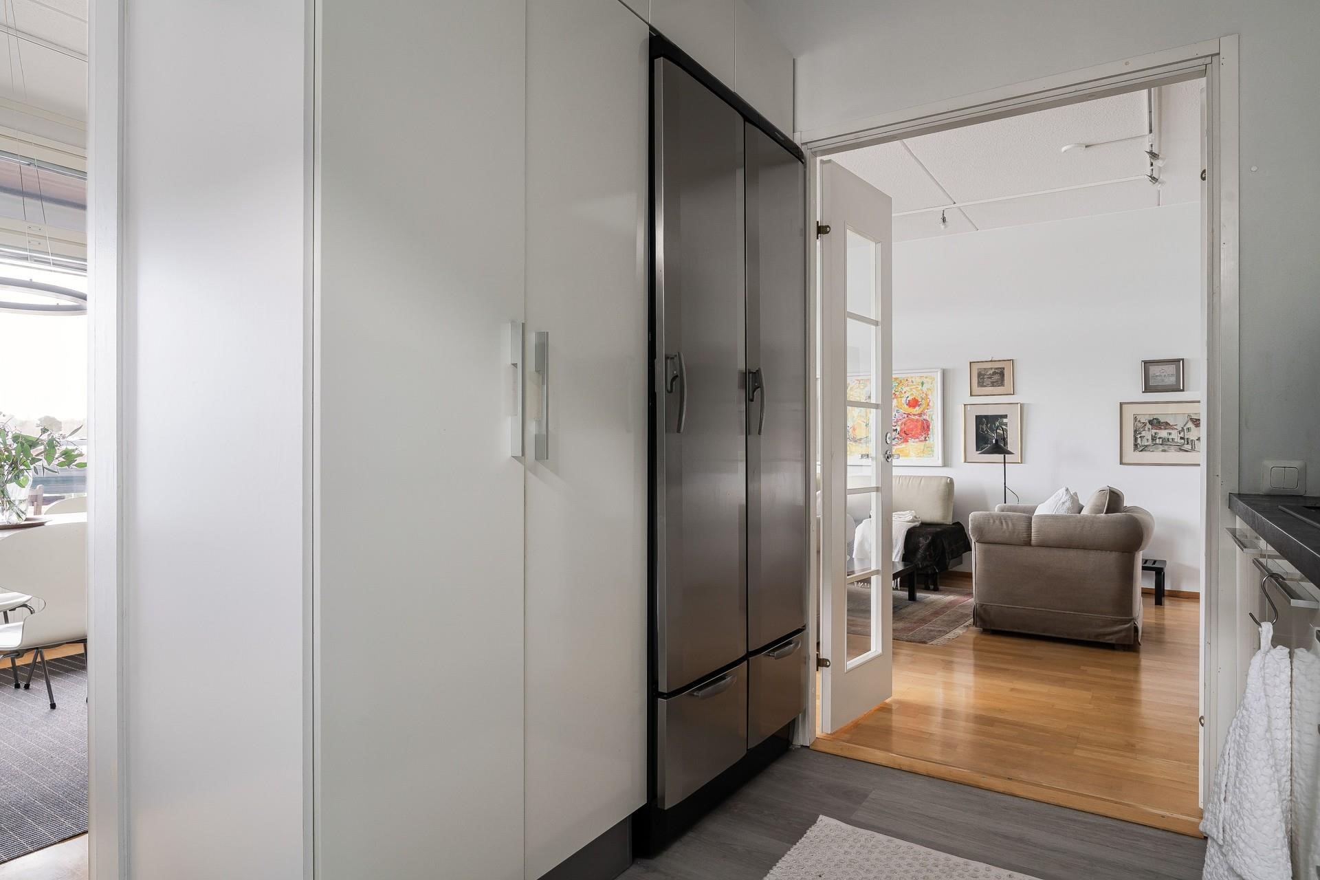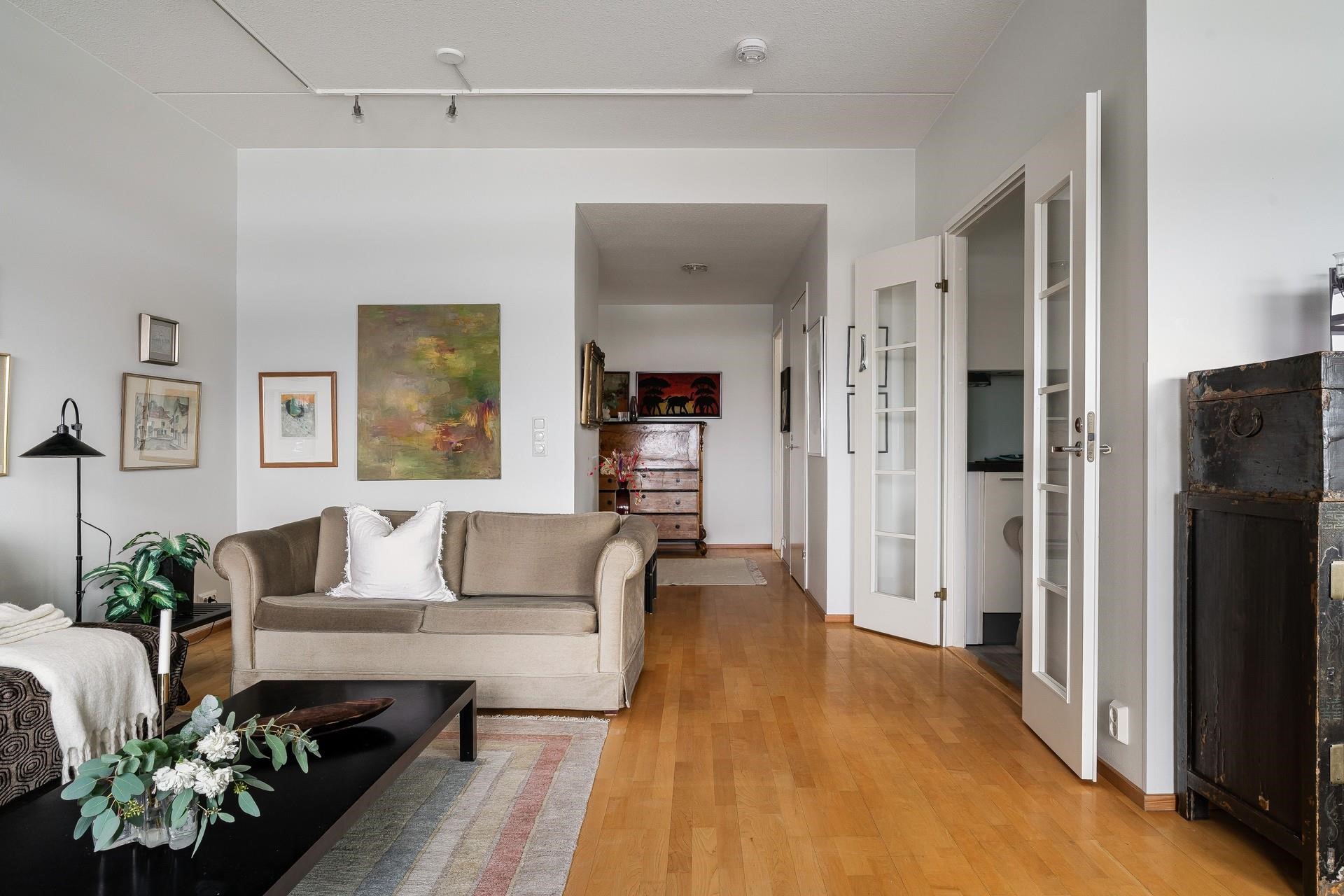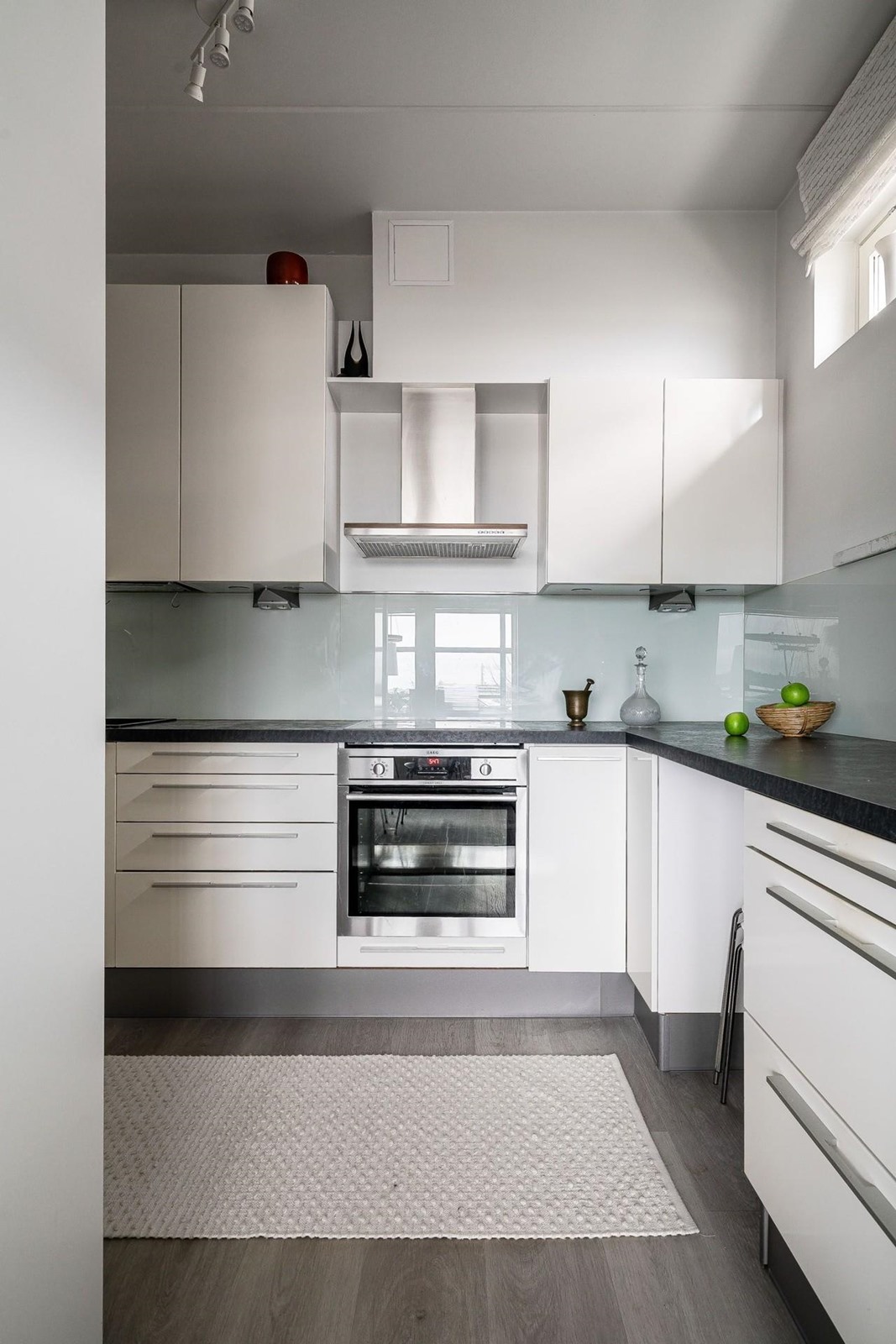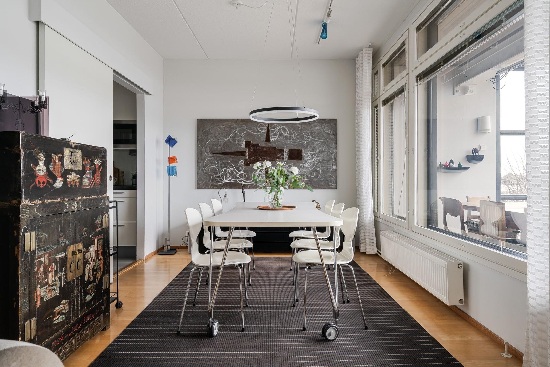 Tämän kodin keskiössä on upea olohuone-ruokailutila, jonka suuret ikkunat avautuvat länteen merelle ja venesatamaan. Tilaa jatkaa koko huoneiston levyinen parveke, jossa voit nauttia unohtumattomista auringonlaskuista. Keittiö on hyvin varusteltu ja tilava.